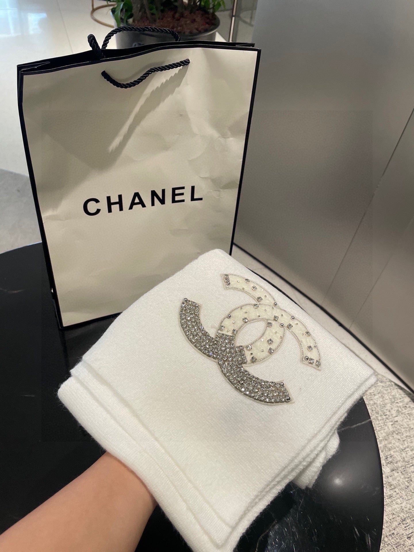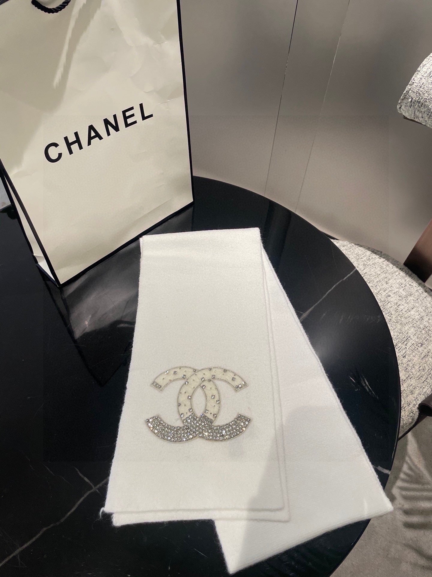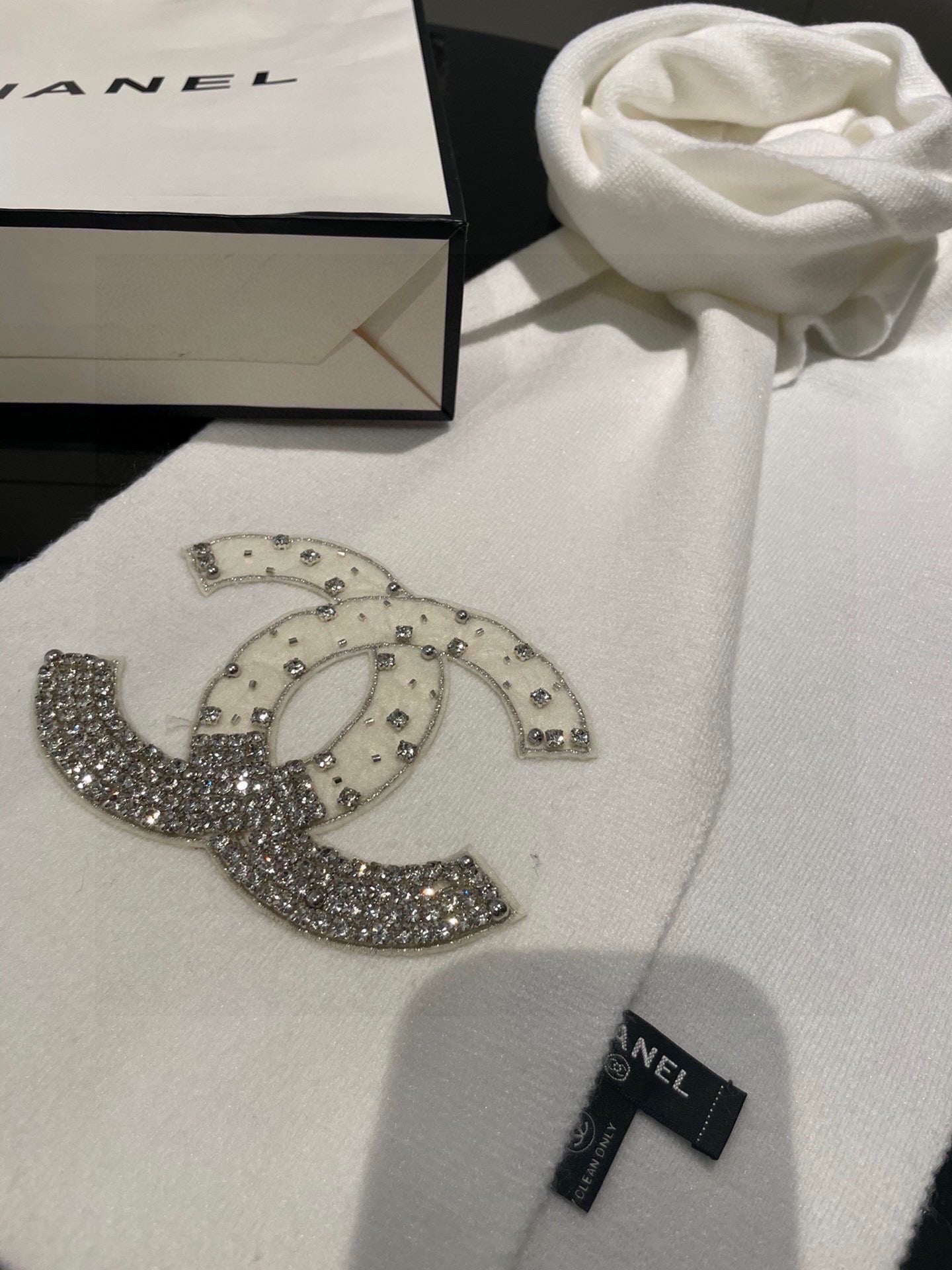 CC Rhinestone-Embellished Shawl 180 CM In White Cashmere Wool 363686