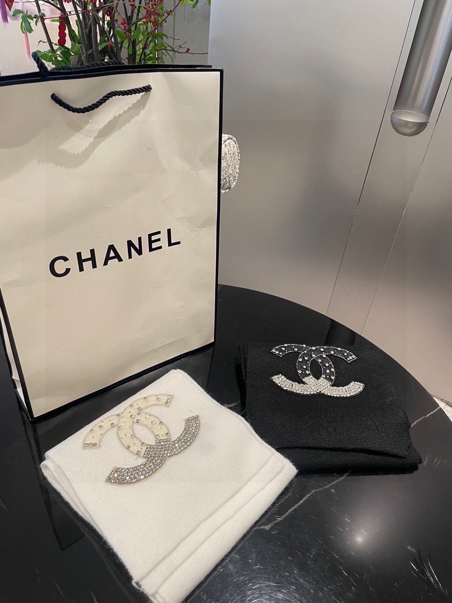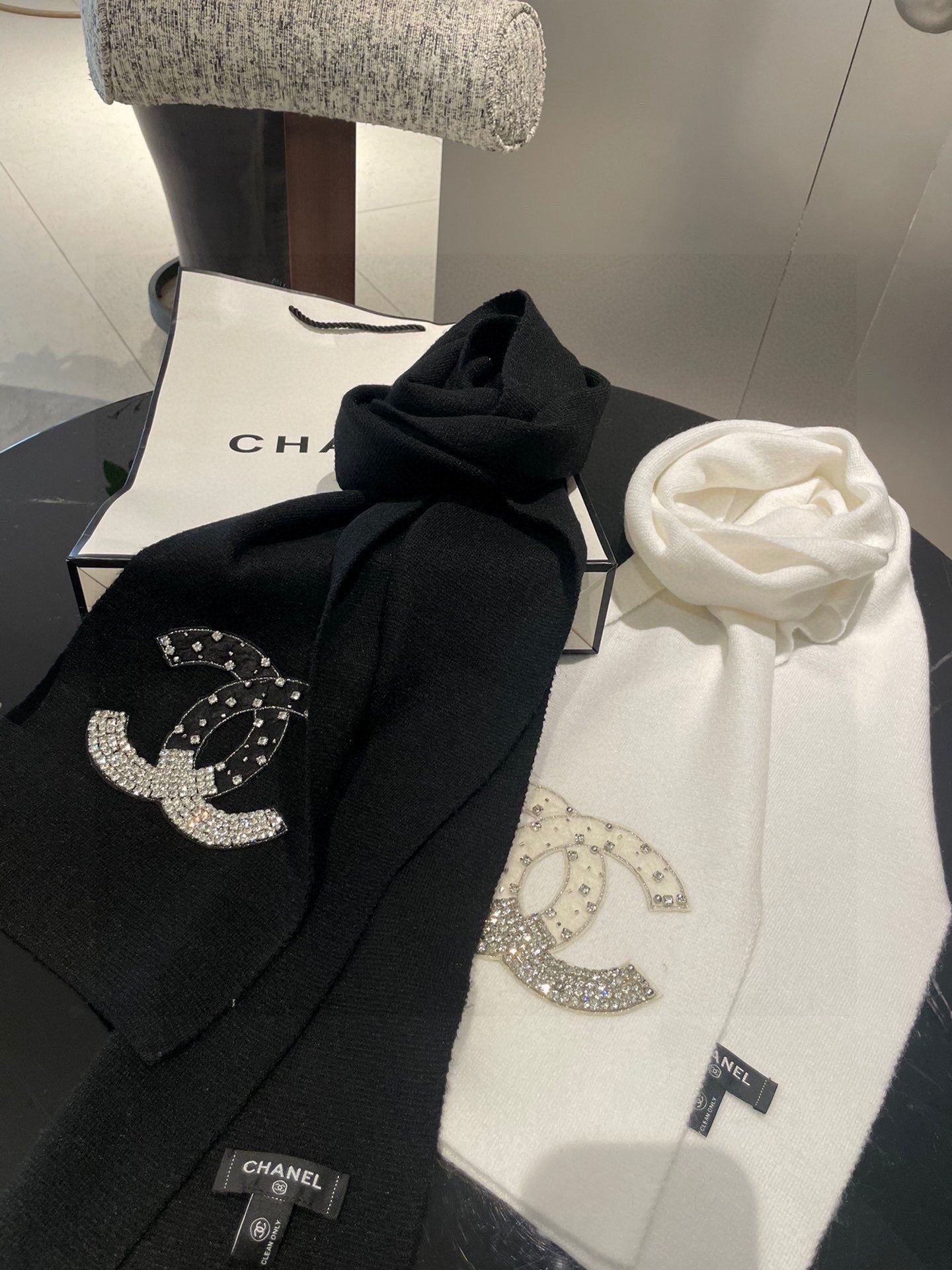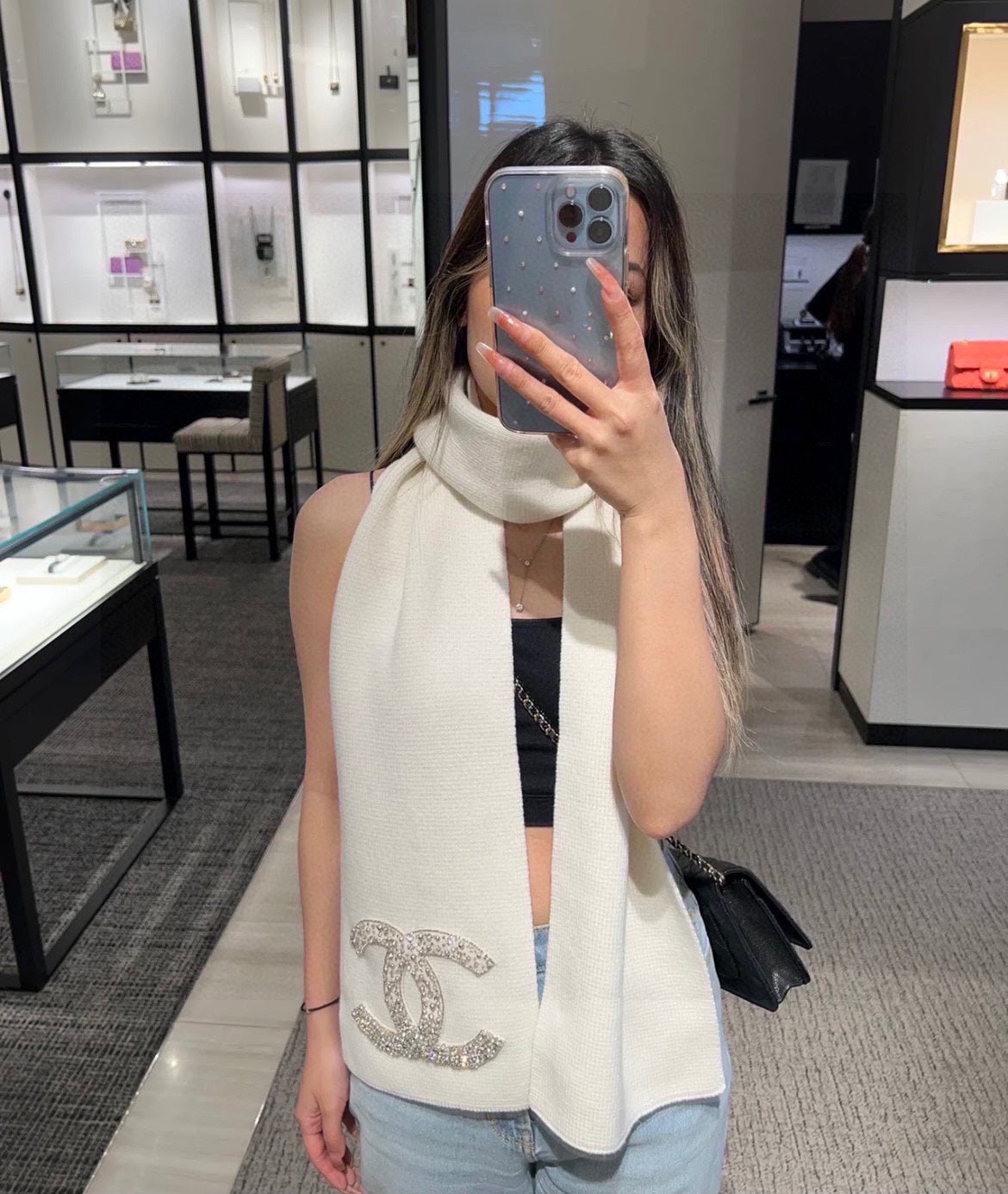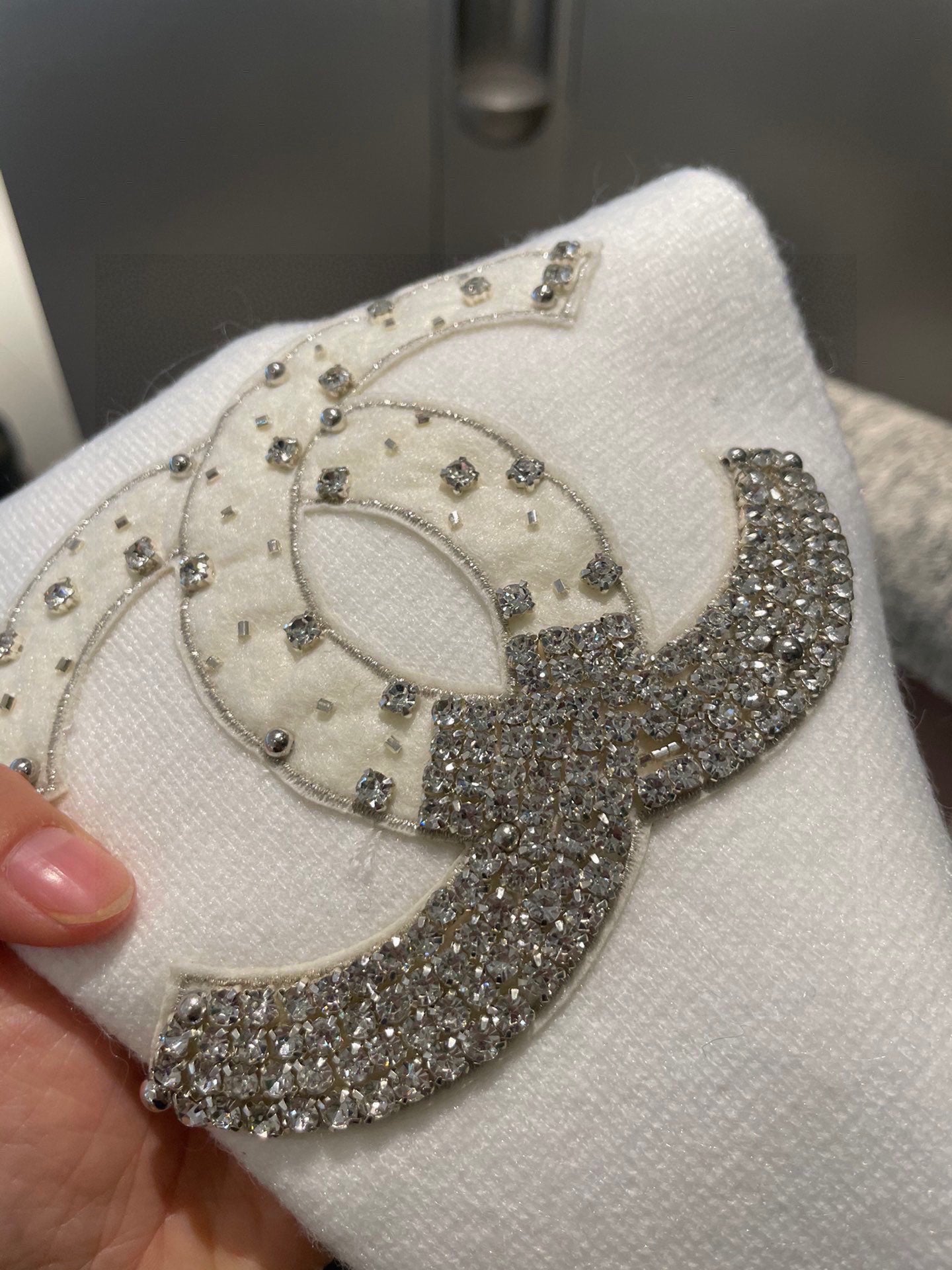CC Rhinestone-Embellished Shawl 180 CM In White Cashmere Wool 363686