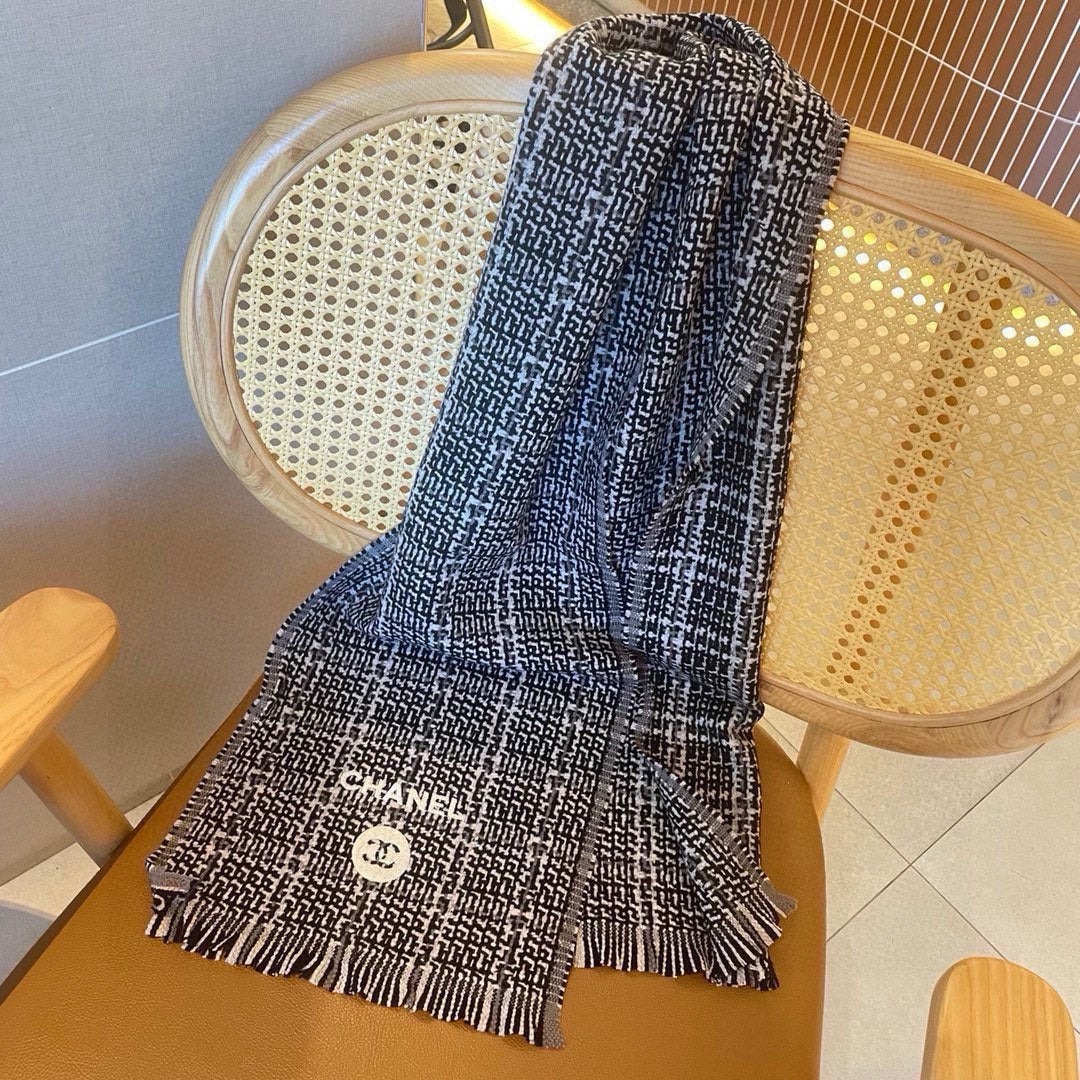 CC Scarf 180 CM Black With White Stripes Wool 422790