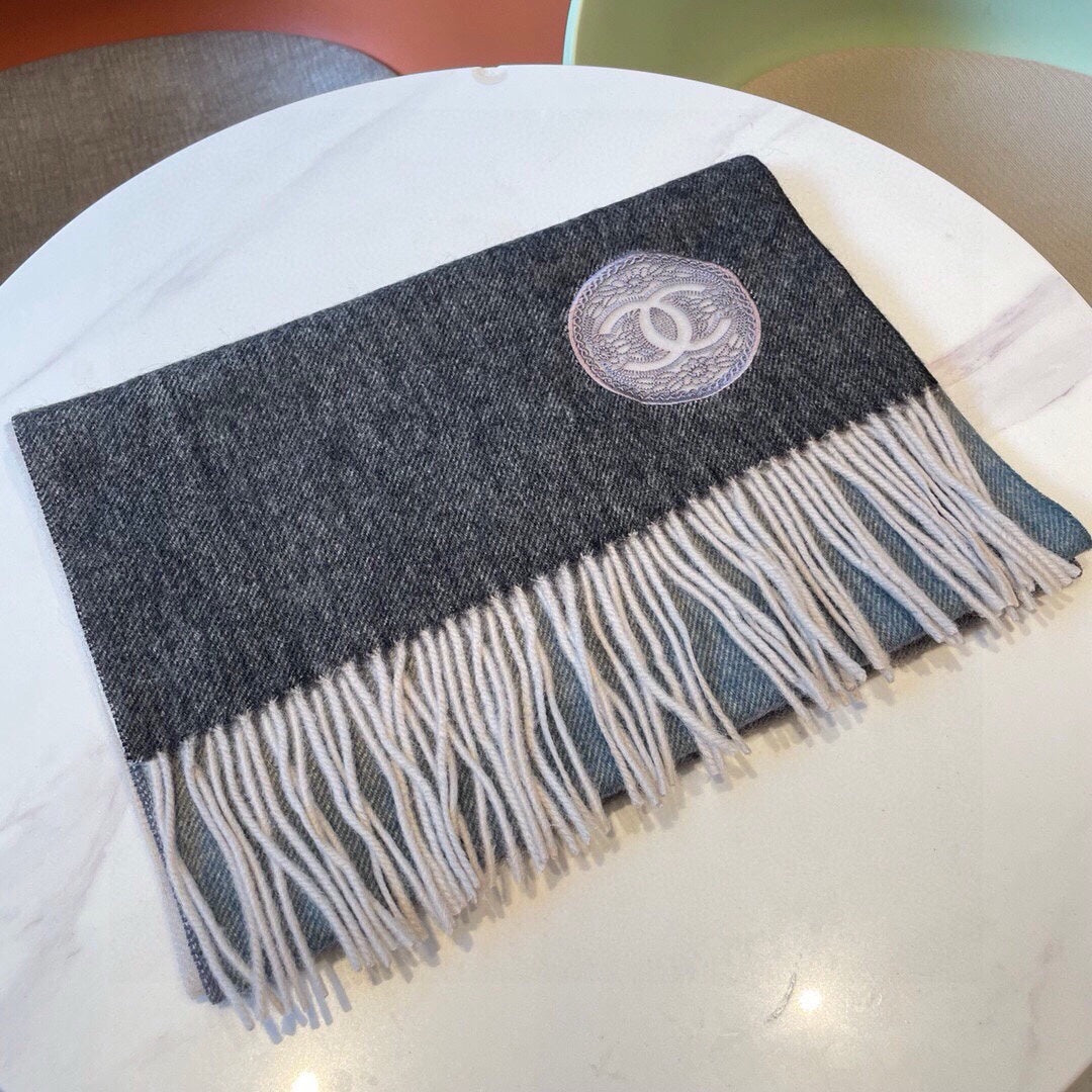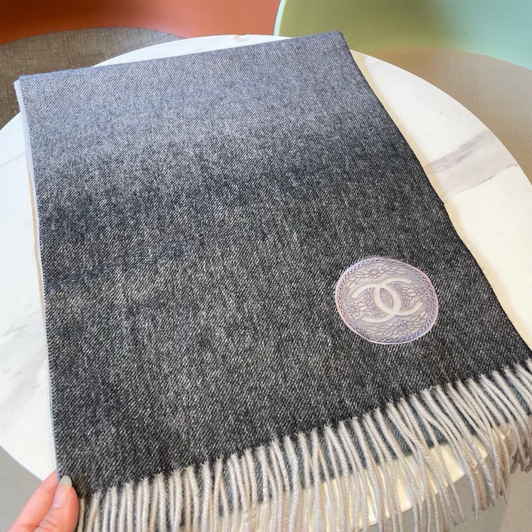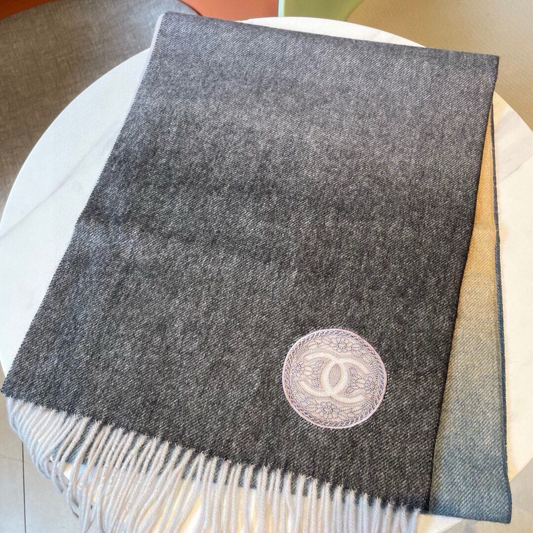CC Scarf 180 CM In Black Blue Mix Grey Beige Cashmere 381207