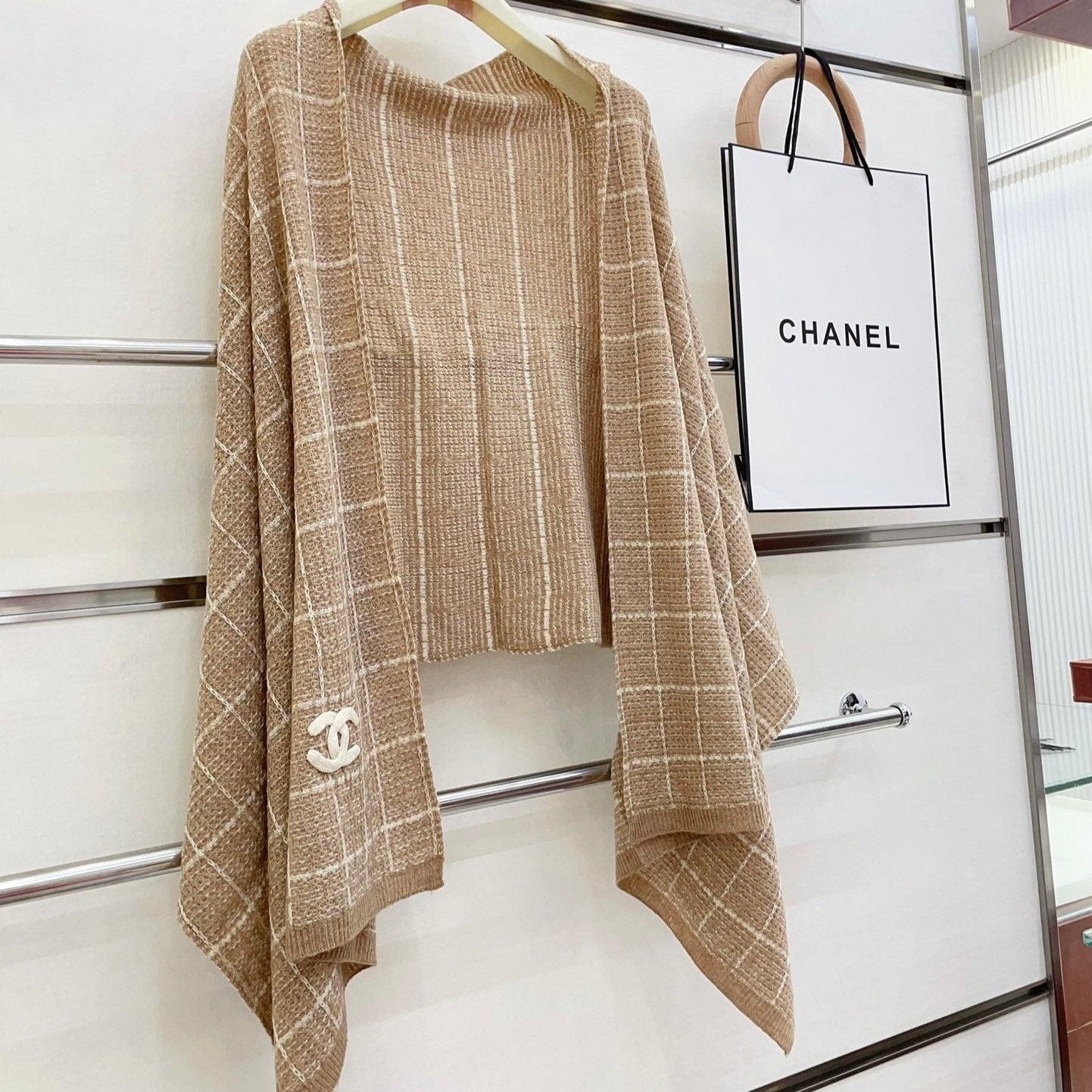 CC Scarf 180 CM In Light Brown With White Stripes Cashmere 415179
