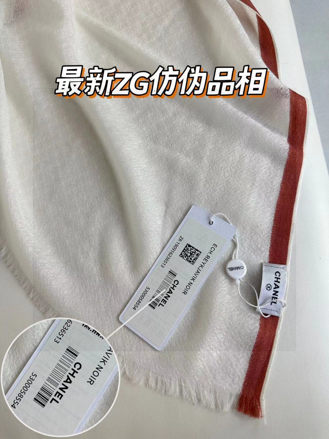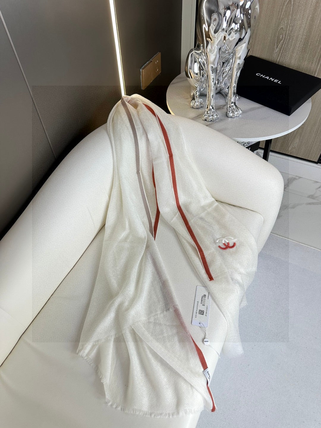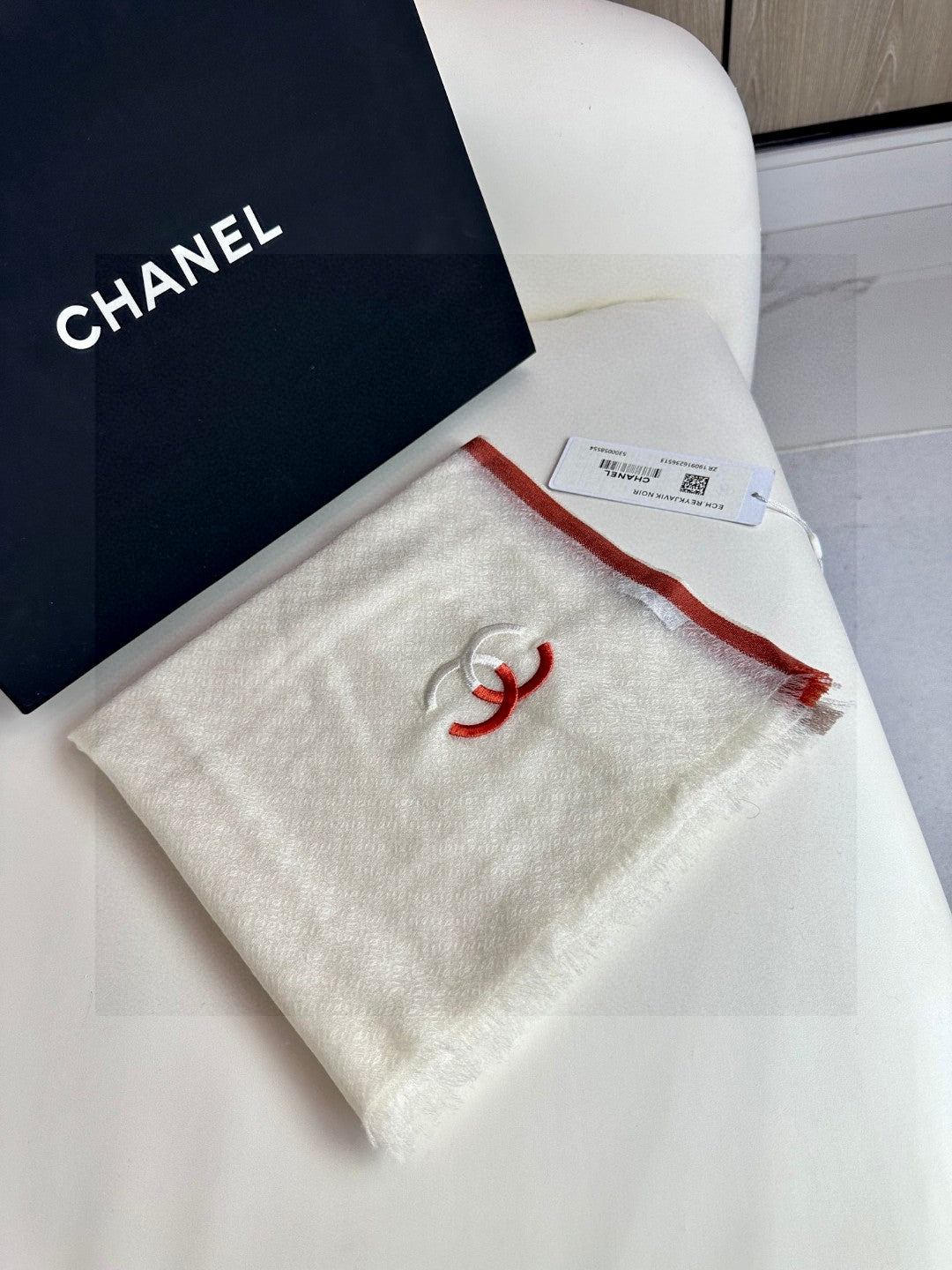 CC Scarf 180 CM In White With Red Border Cashmere Silk 287510