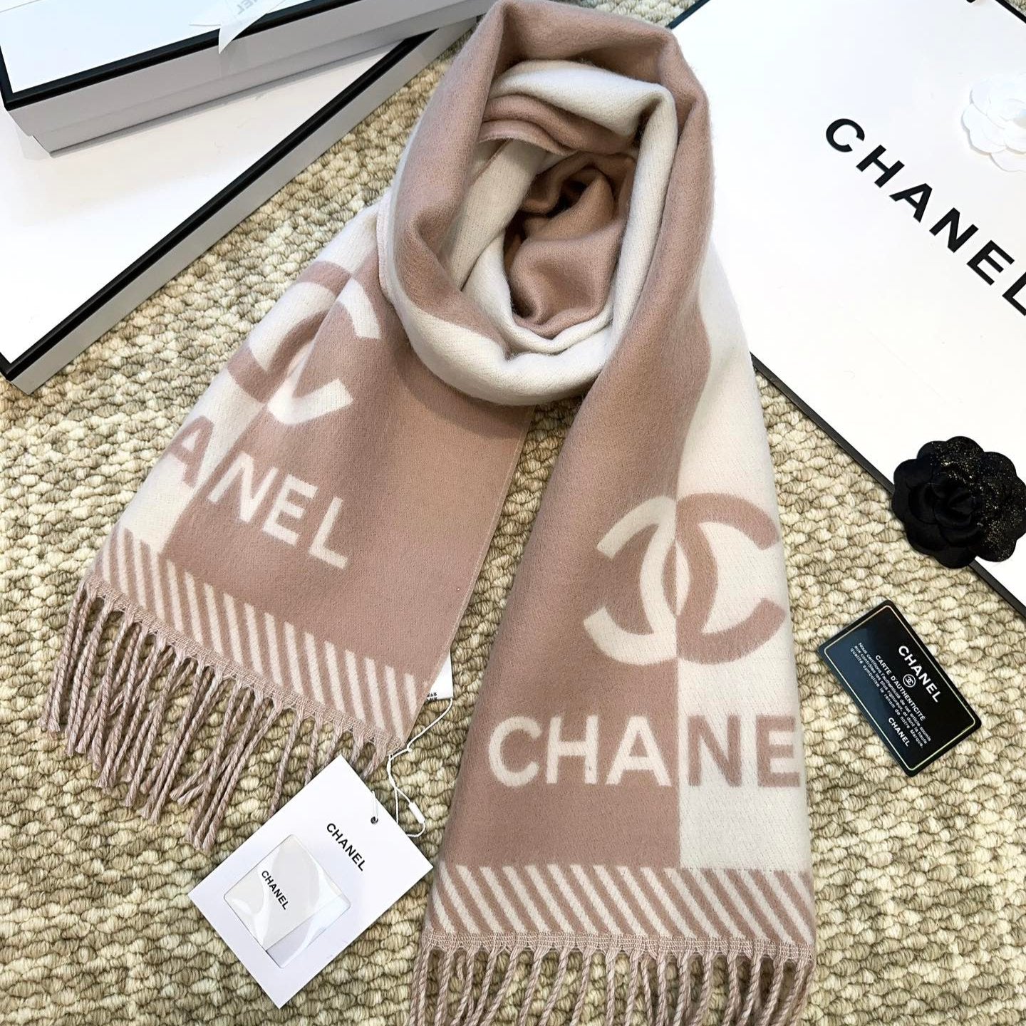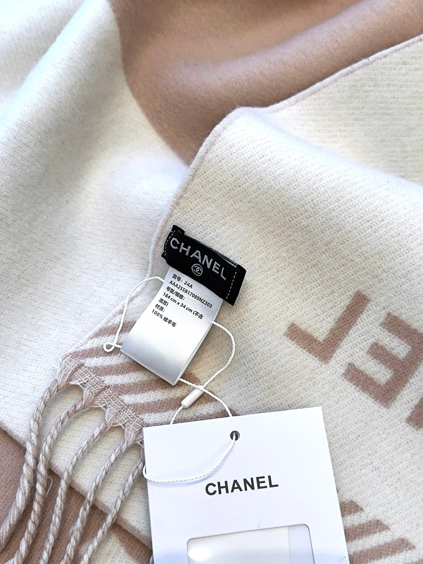 CC Scarf 184 CM In Milky Brown Mix White Wool Jacquard 424859