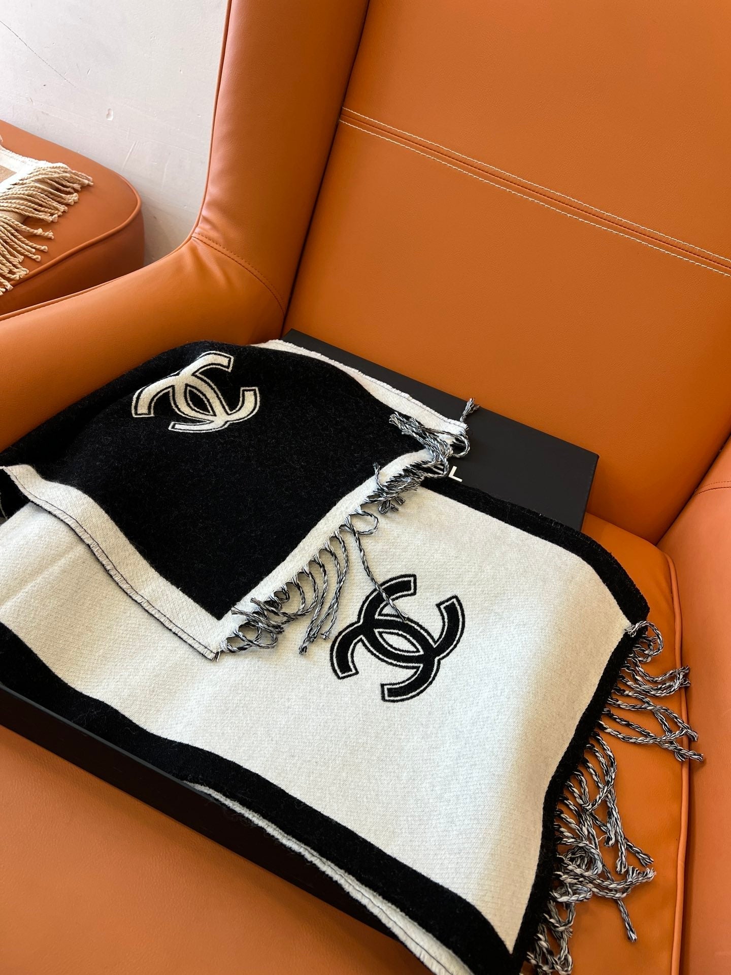 CC Scarf 184 CM In White Mix Black Wool Fleece 385533