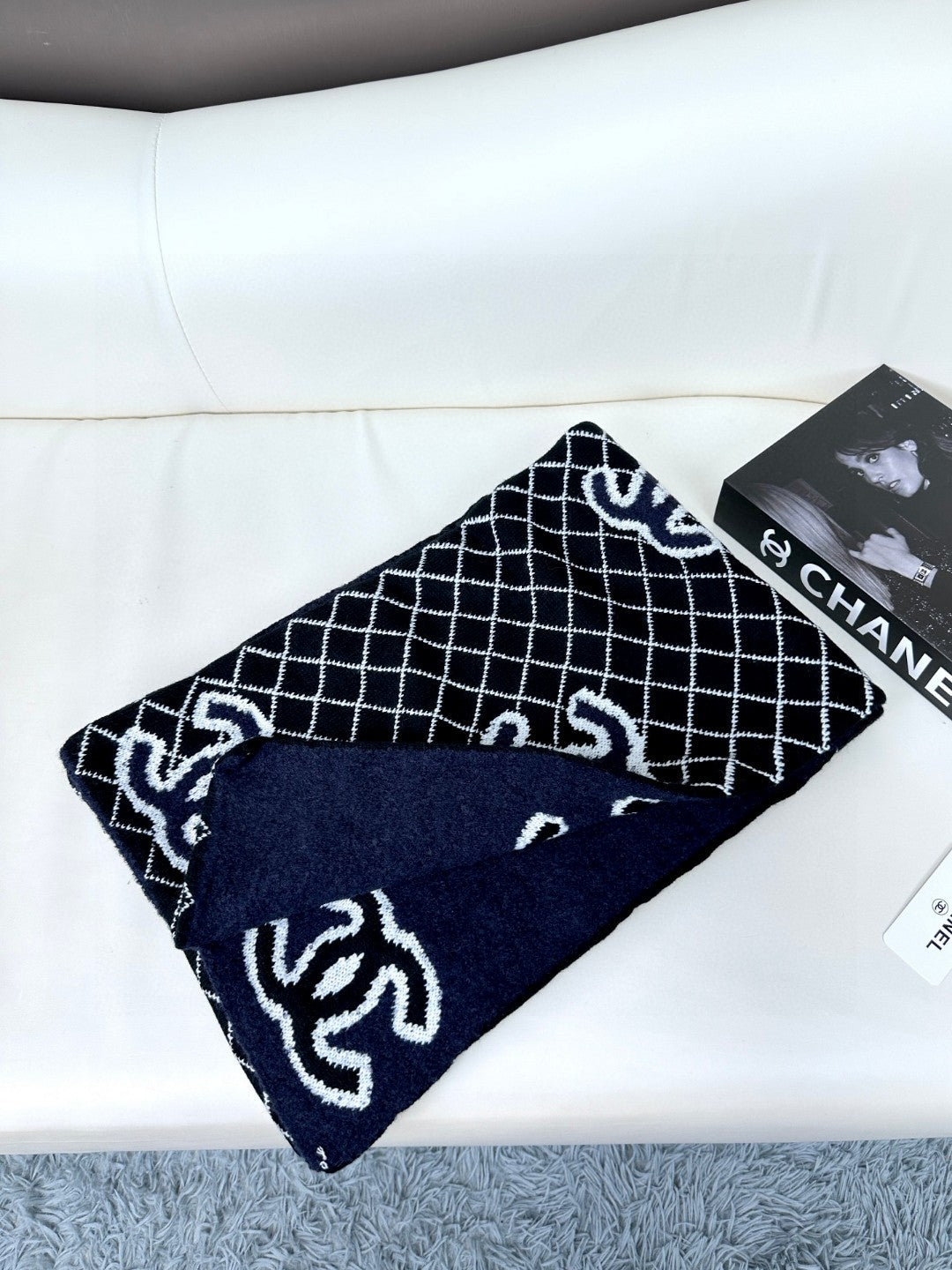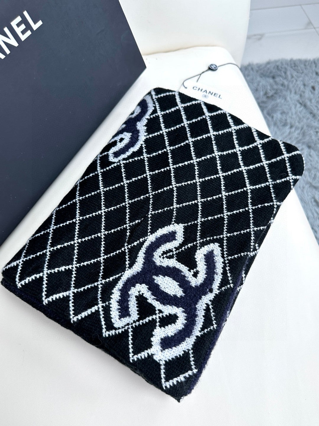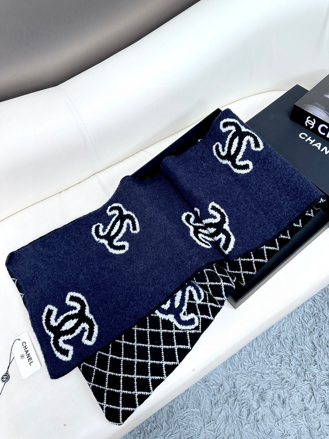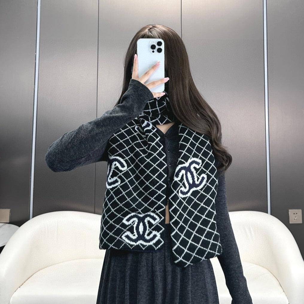 CC Scarf 185 CM In Black Mix Charcoal Blue Cashmere Wool 410150