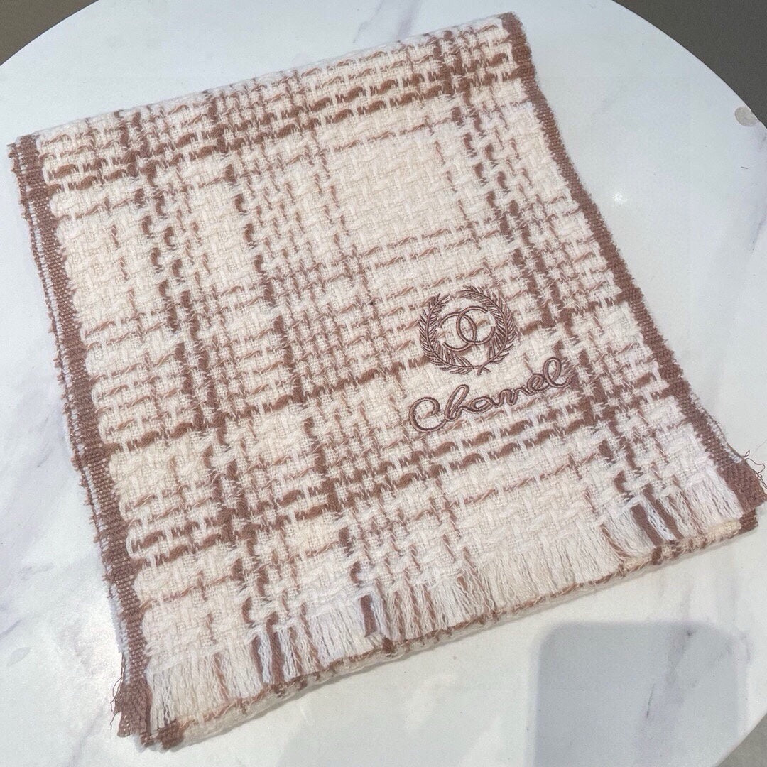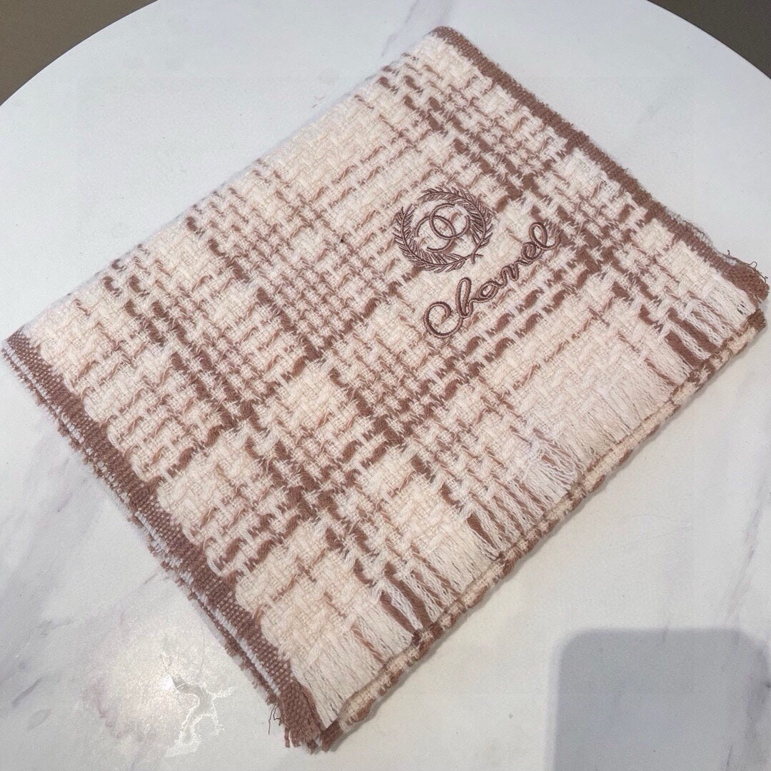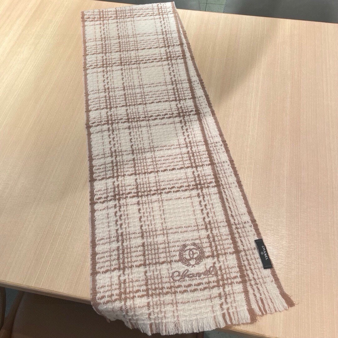 CC Scarf 186 CM In White With Brown Stripes Fleece Wool 416926