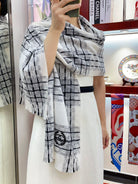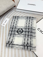 CC Scarf 190 CM In White With Black Stripes Fleece Wool 416907