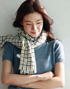 CC Scarf 190 CM In White Yellow With Black Plaid Cashmere 416805