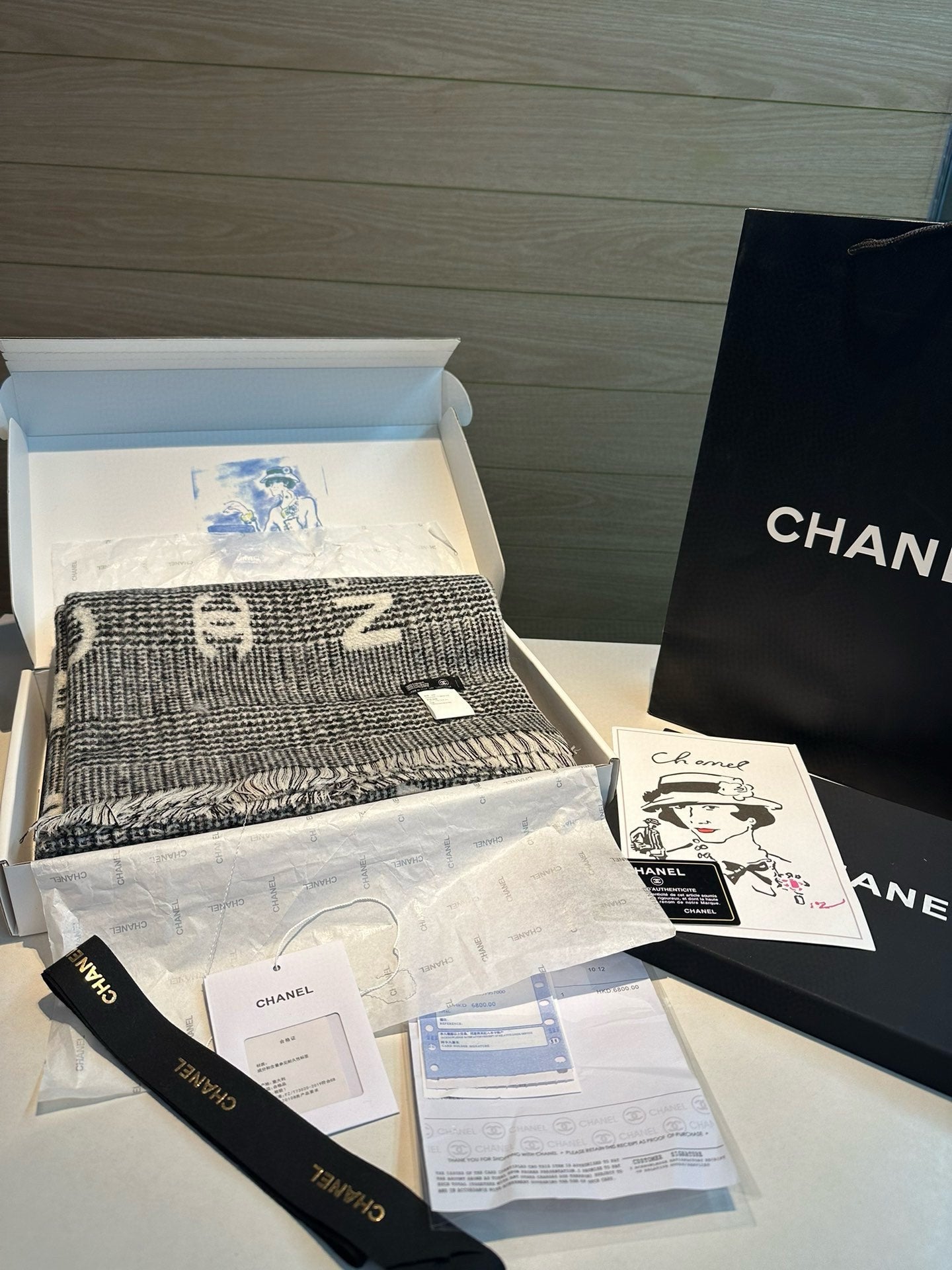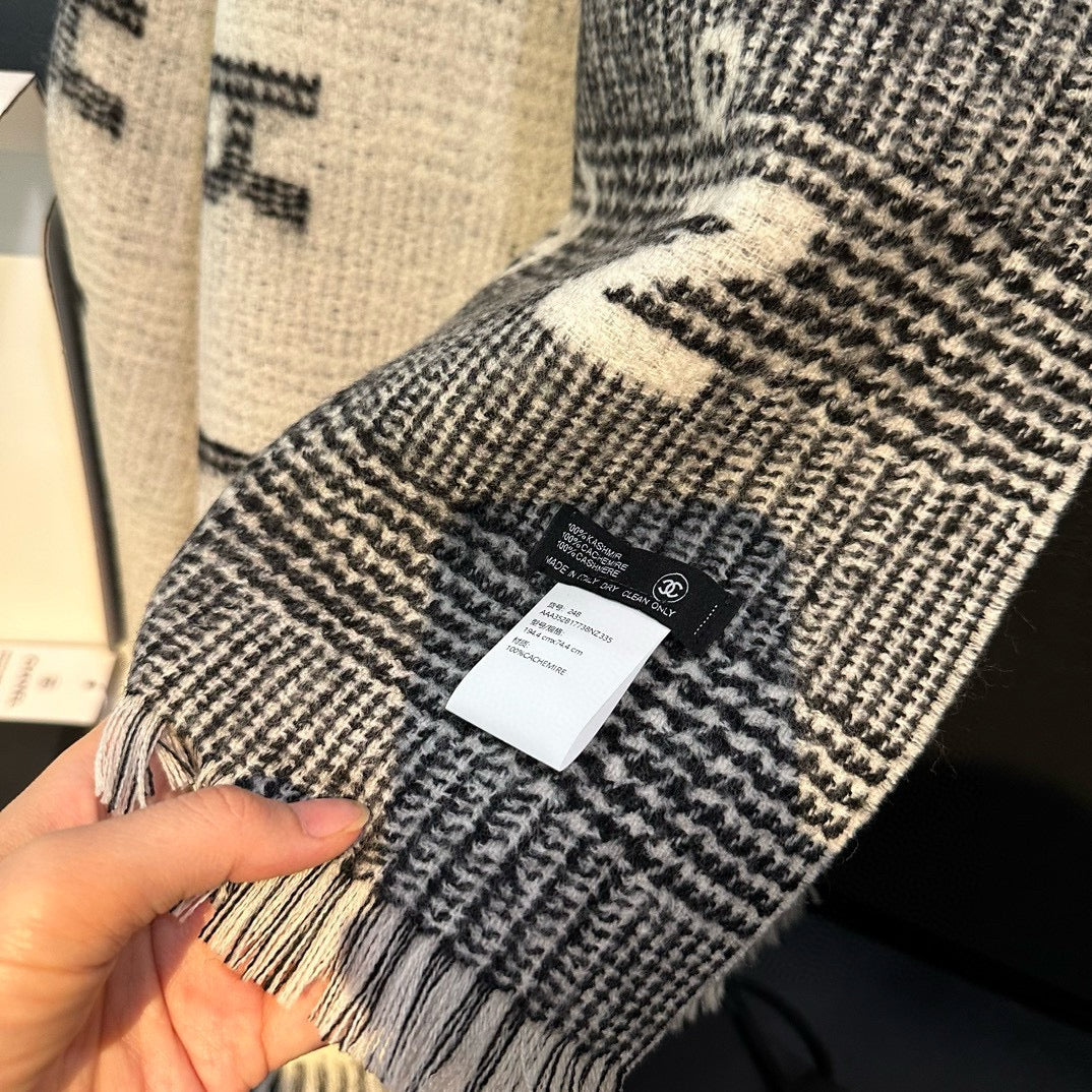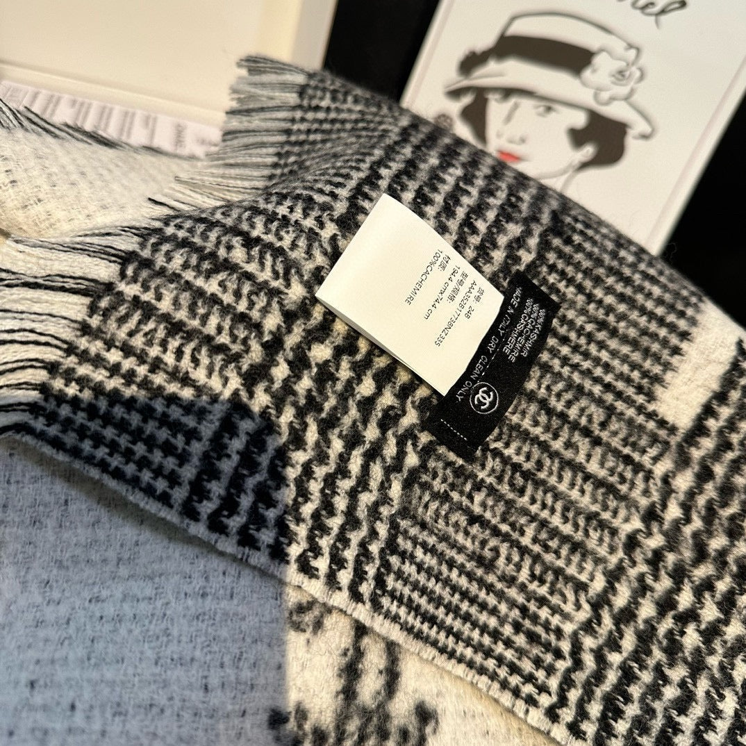 CC Scarf 194.4 CM In White Mix Black Cashmere 421437