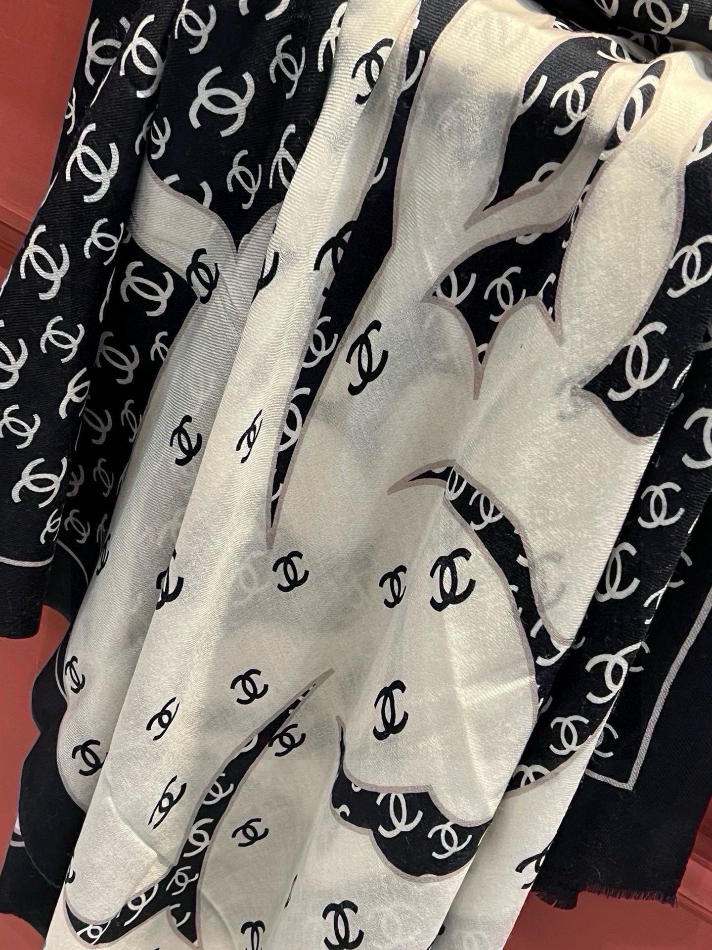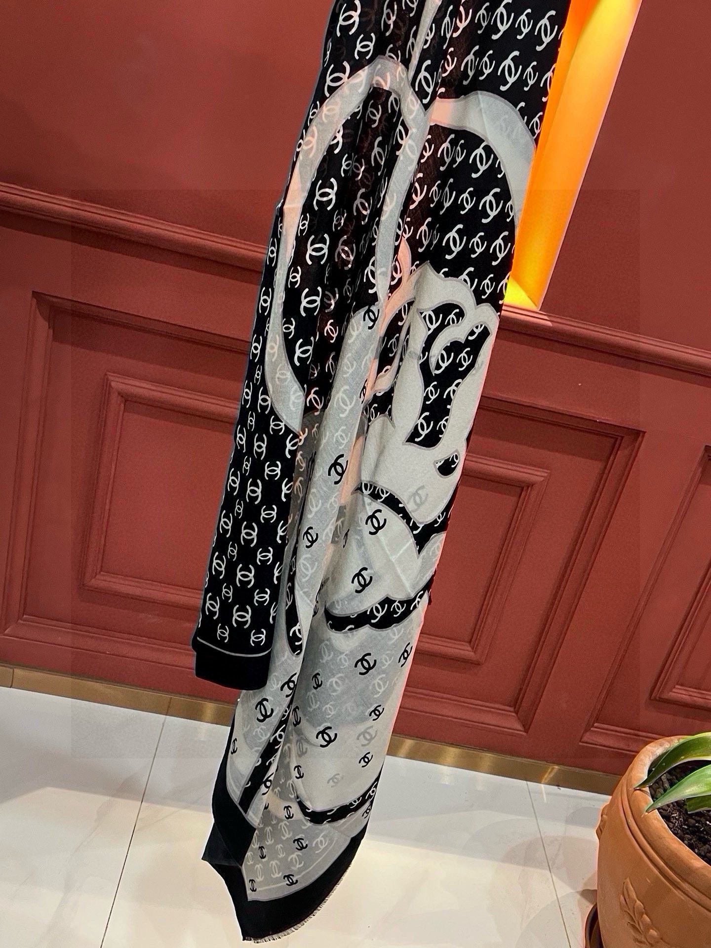 CC Scarf 200 CM In Black With White Logo Cashmere 363601