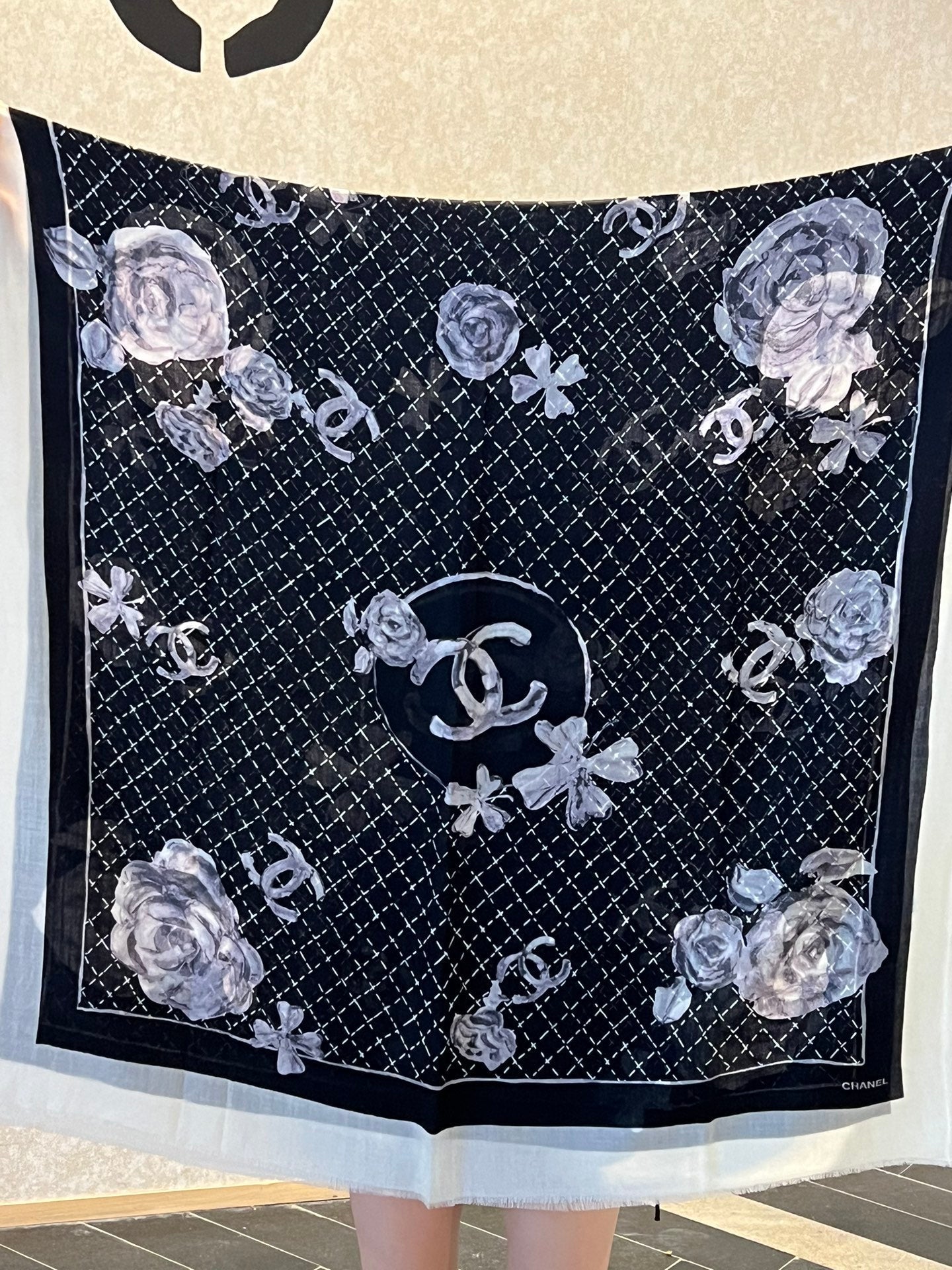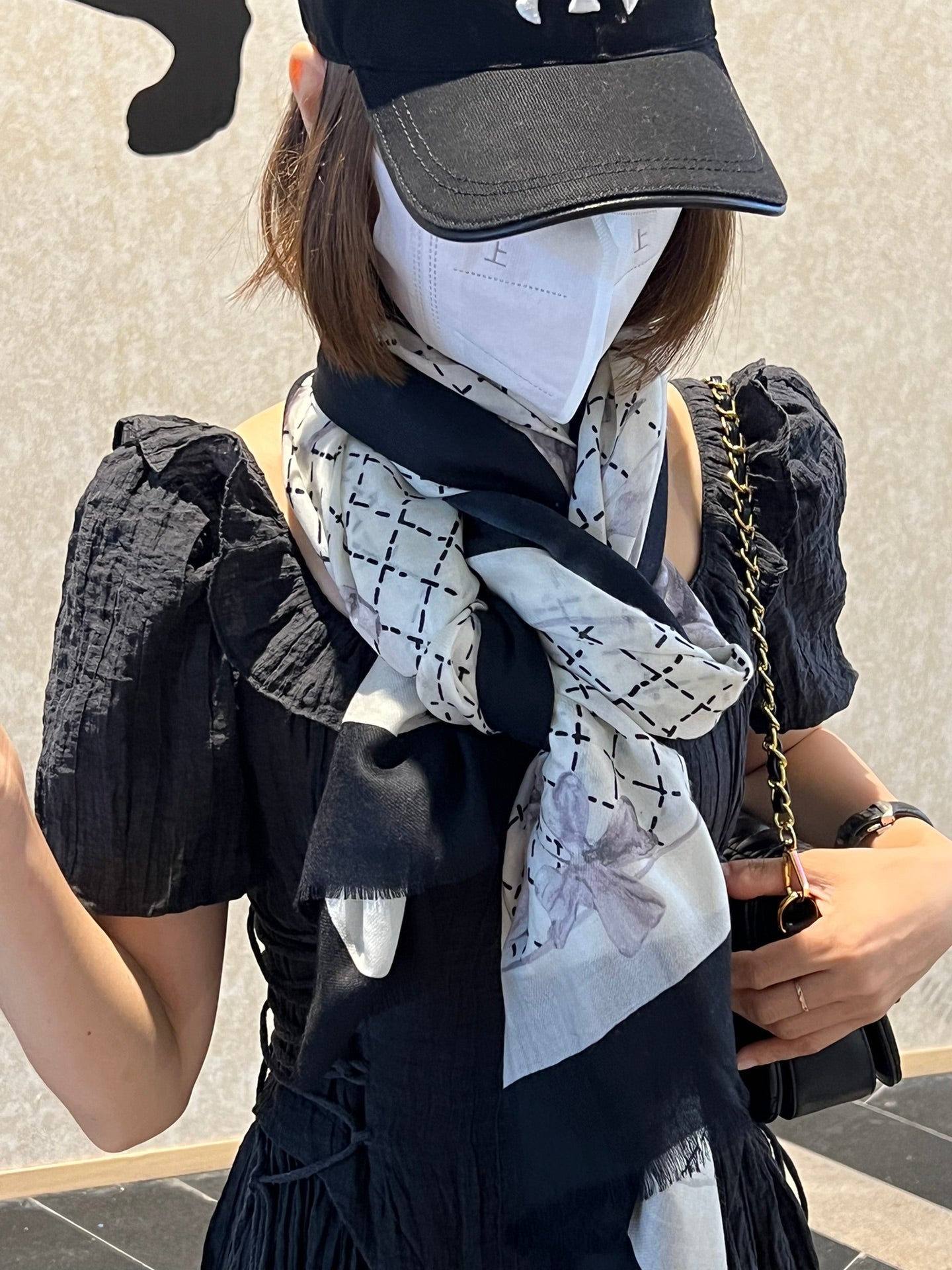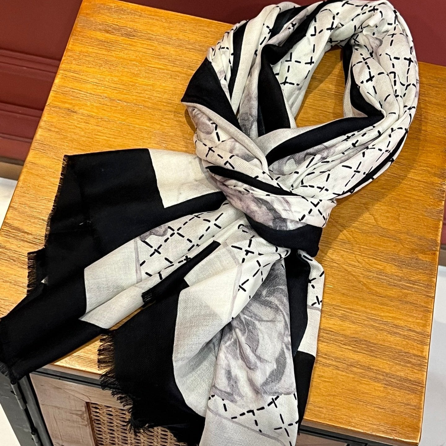 CC Scarf 200 CM In White Black Cashmere Silk 255990