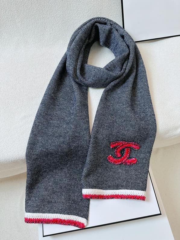 CC Scarf 220 CM In Black Grey Mix Red Cashmere 389885