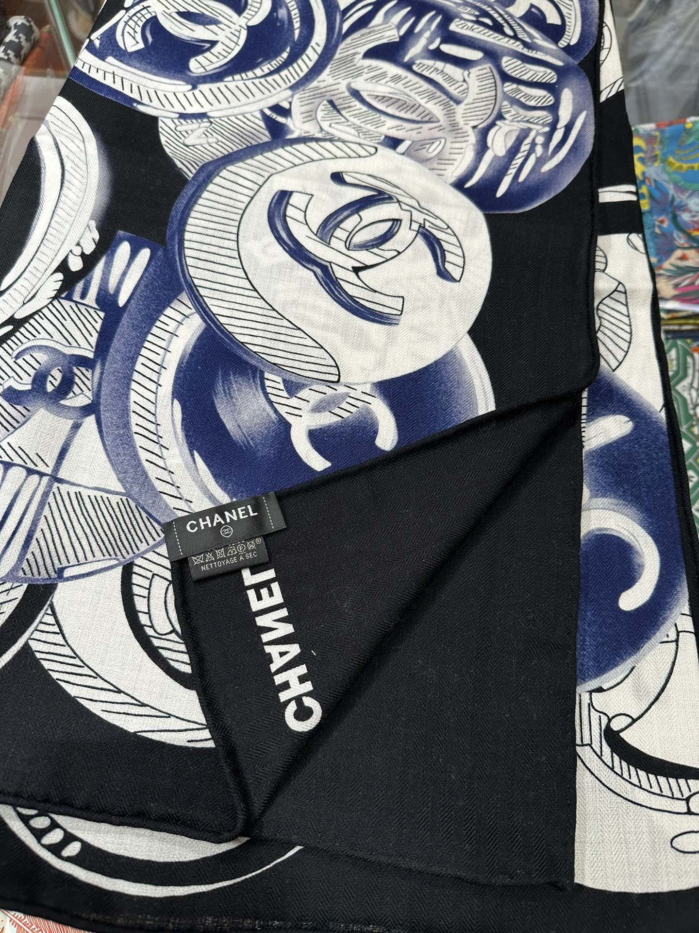 CC Square Scarf 140 CM In Black Colorful Cashmere And Silk 418150