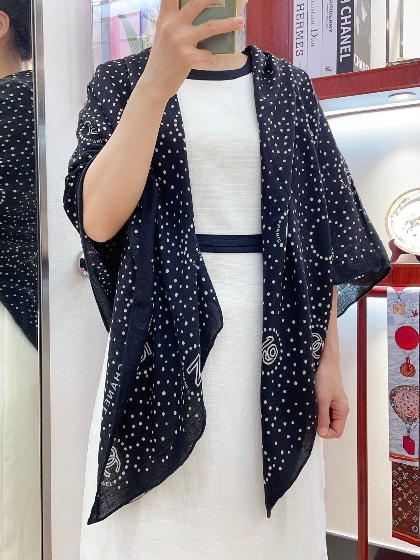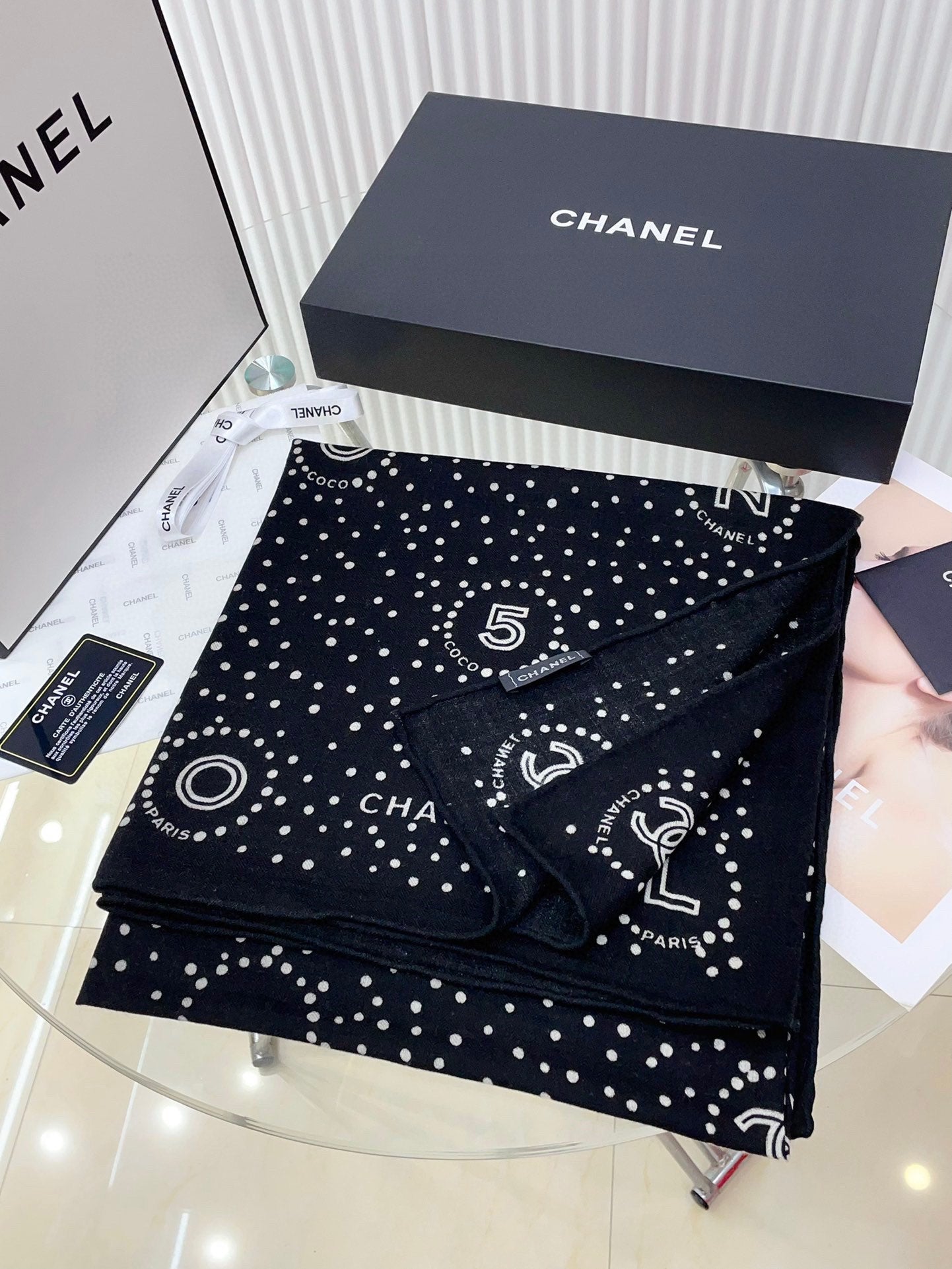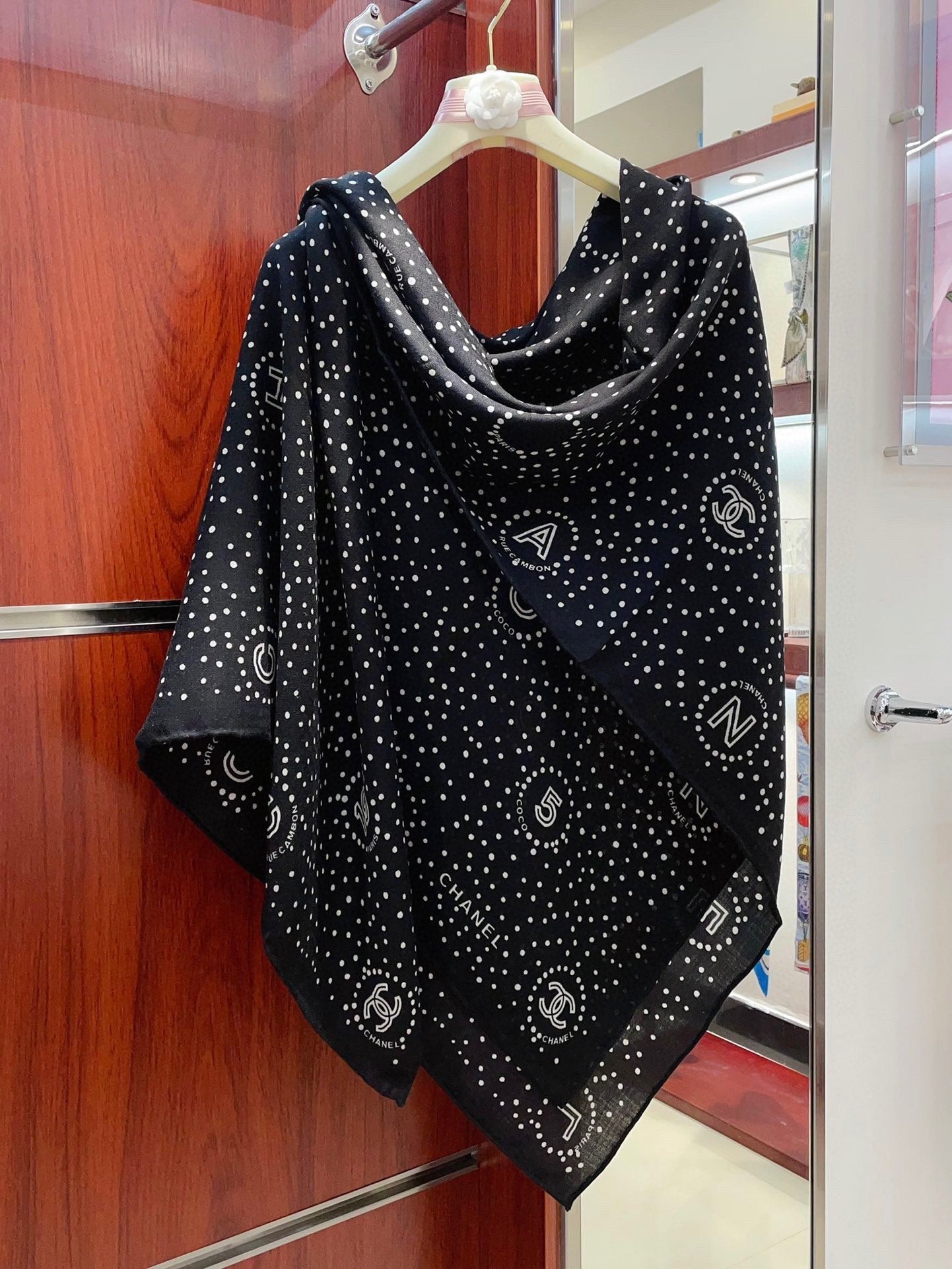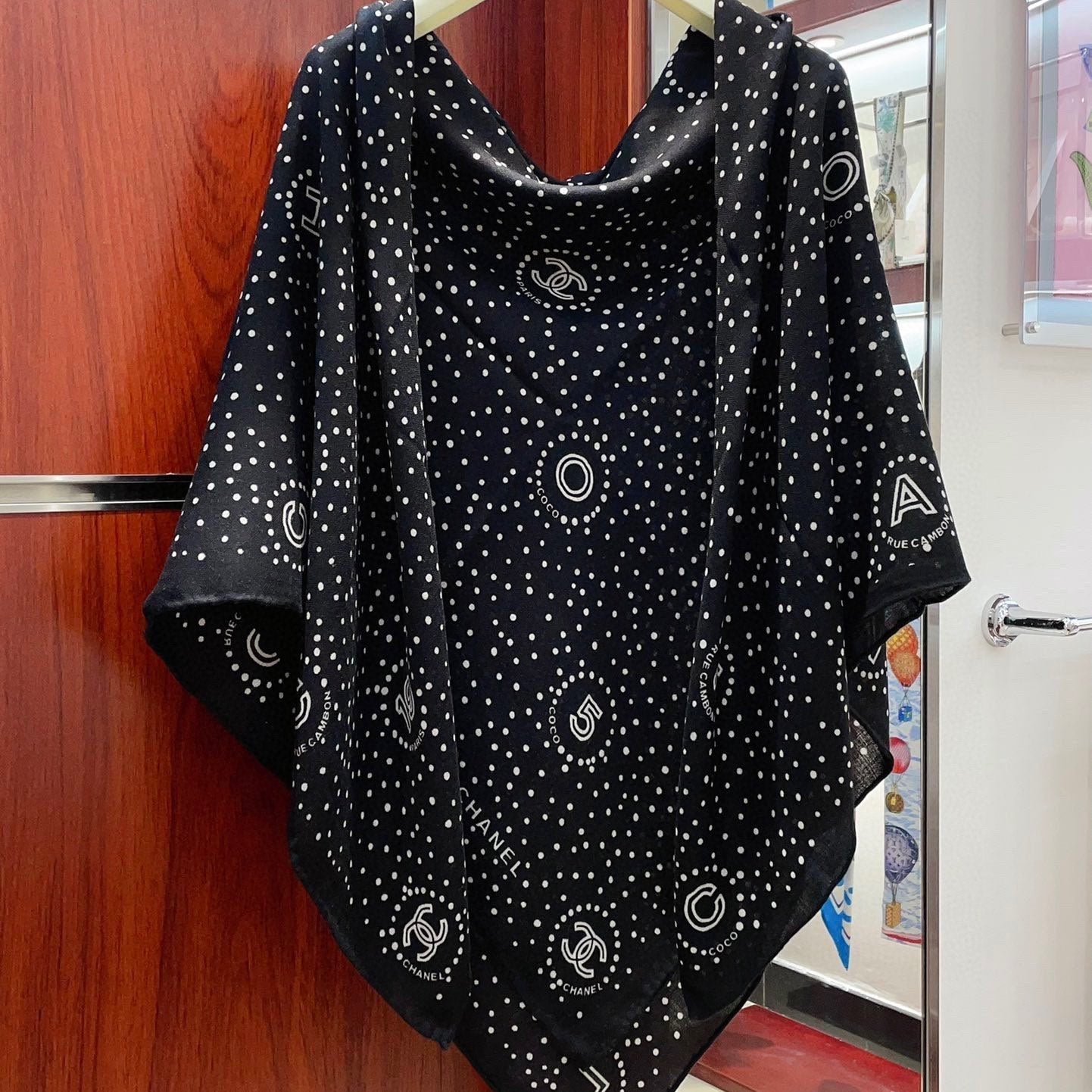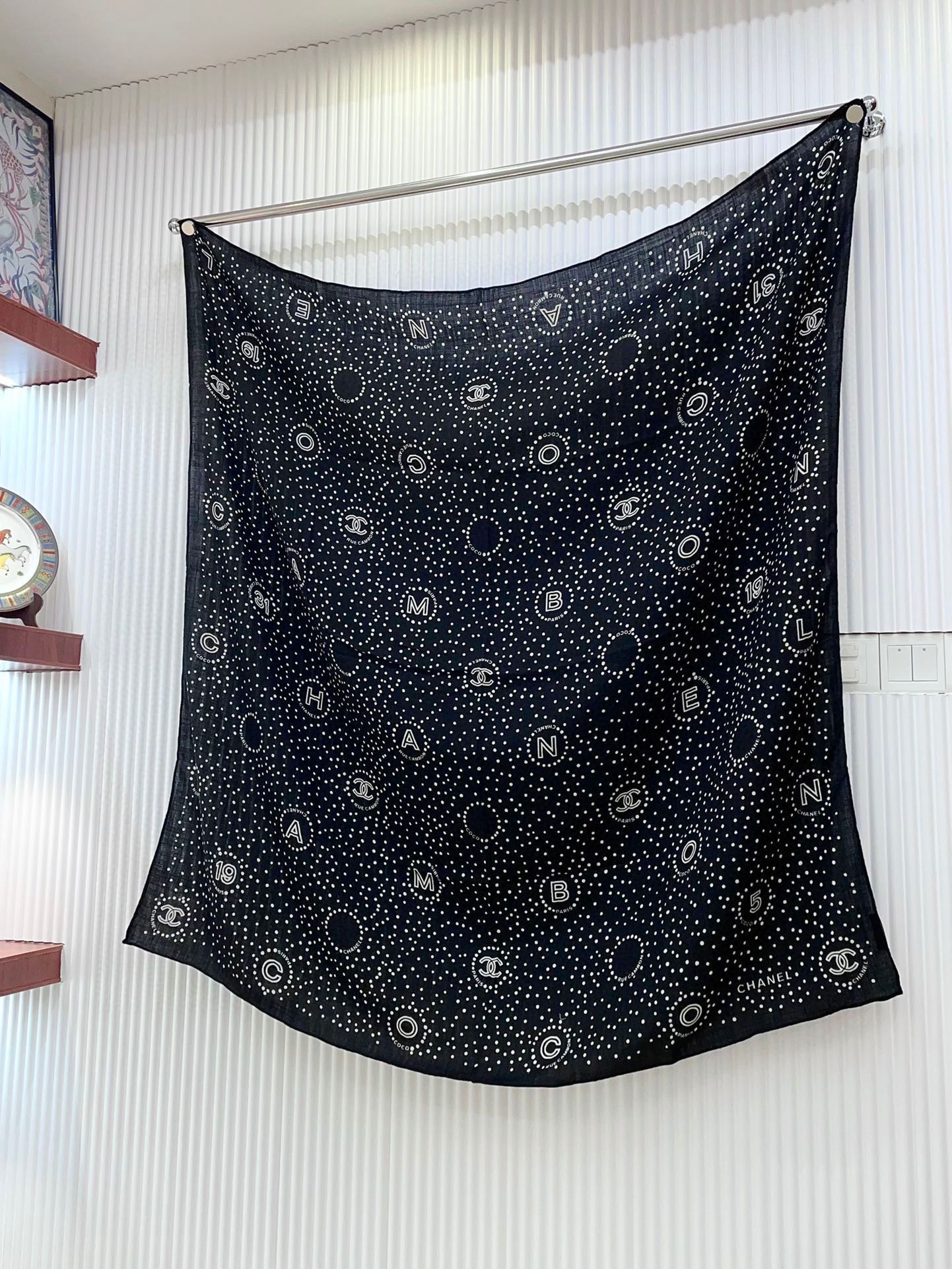 CC Square Scarf 140 CM In Black Mix White Cashmere And Silk 398280