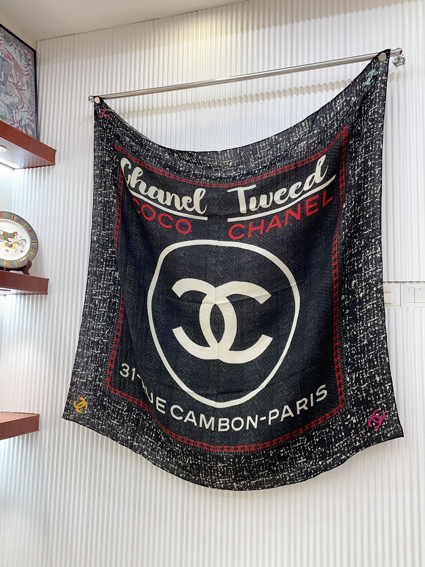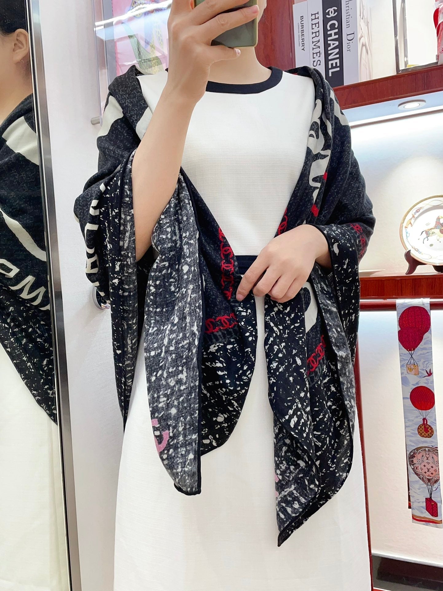CC Square Scarf 140 CM In Black Mix White Red Cashmere Silk 252308