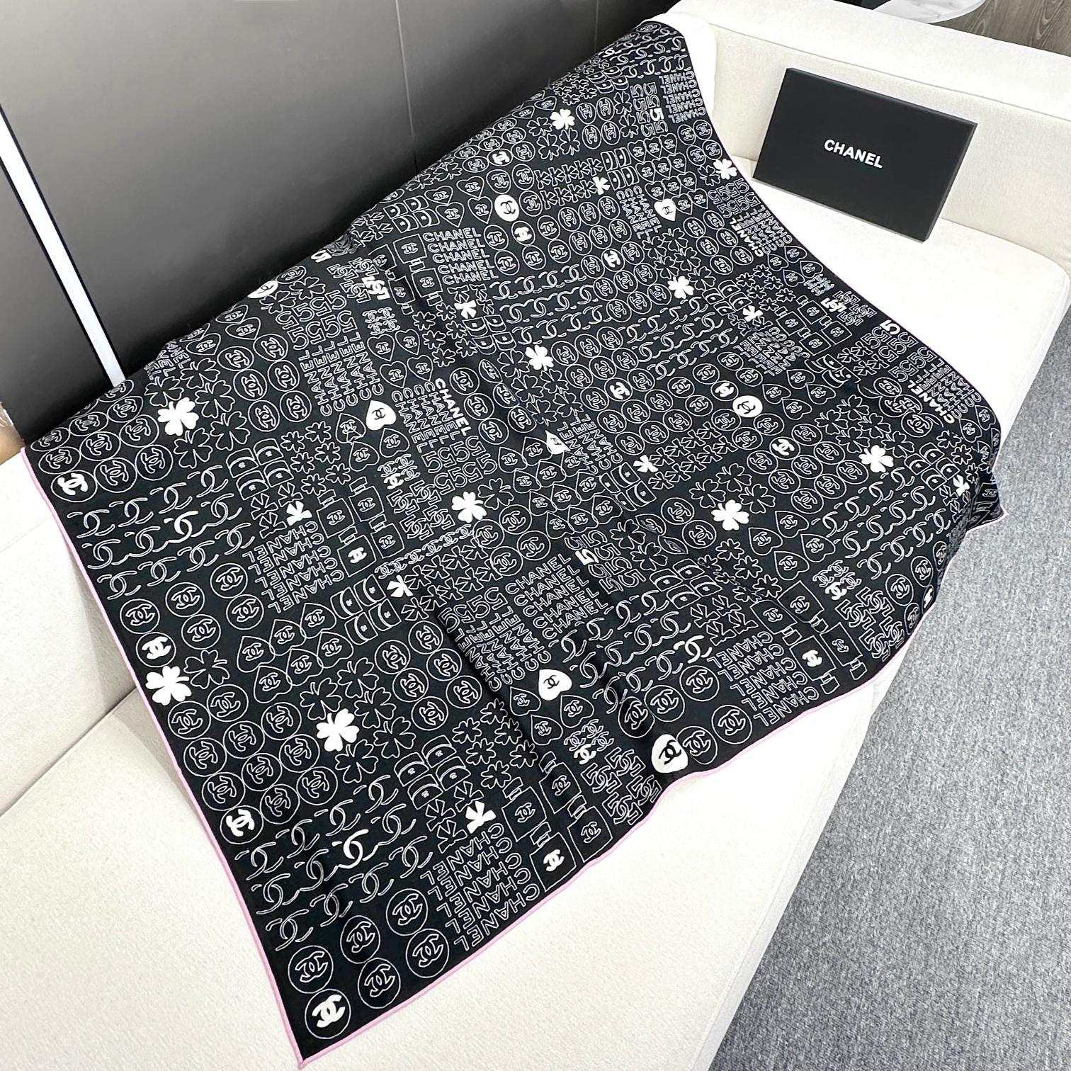 CC Square Scarf 140 CM In Black Silk 424551