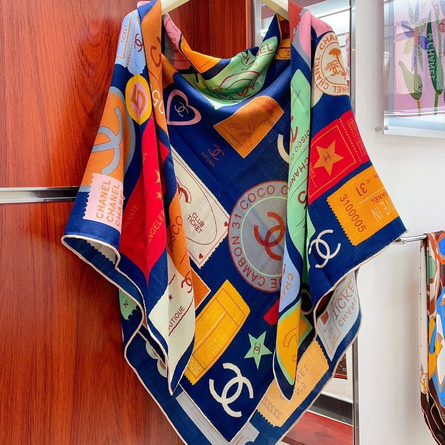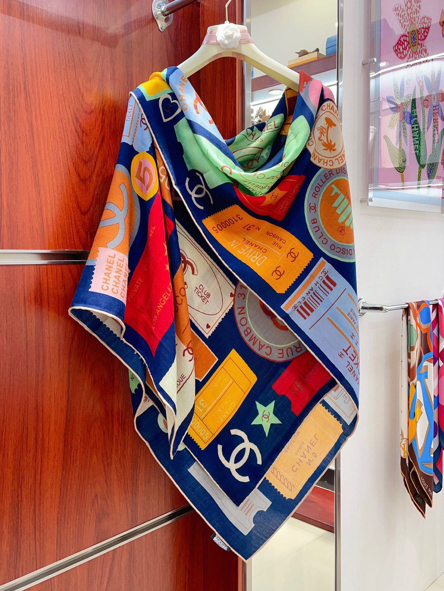 CC Square Scarf 140 CM In Multicolored Cashmere And Silk 388152