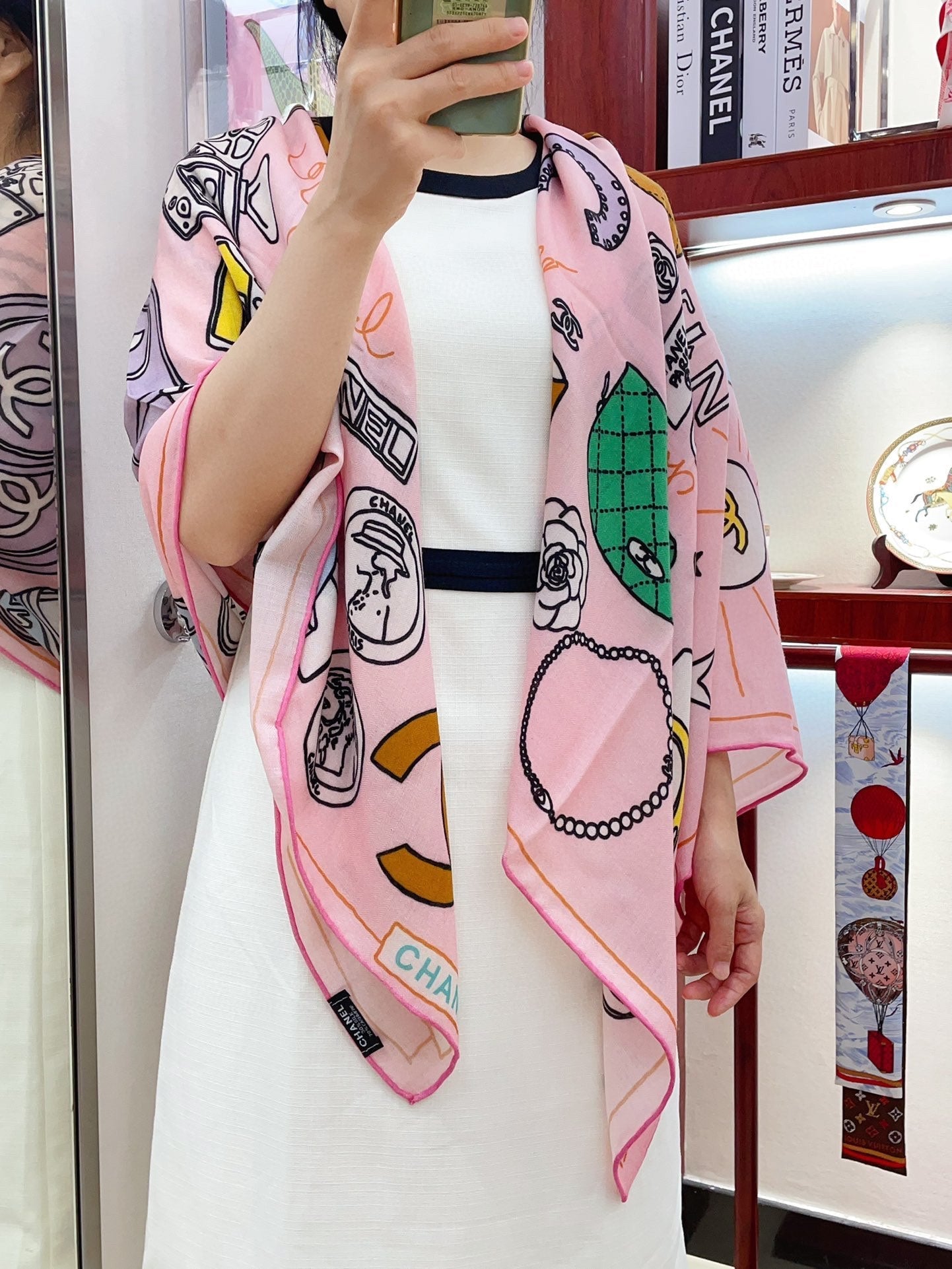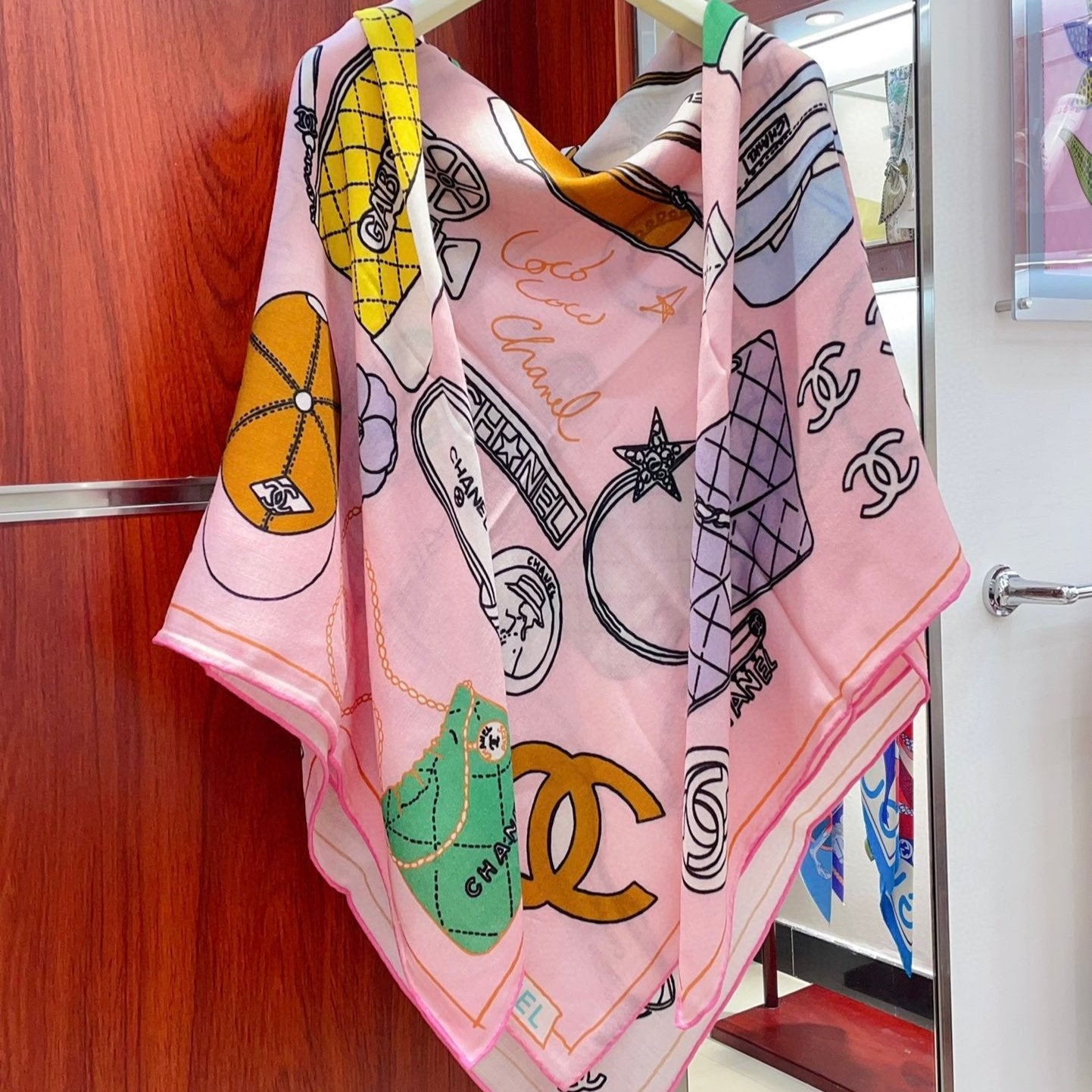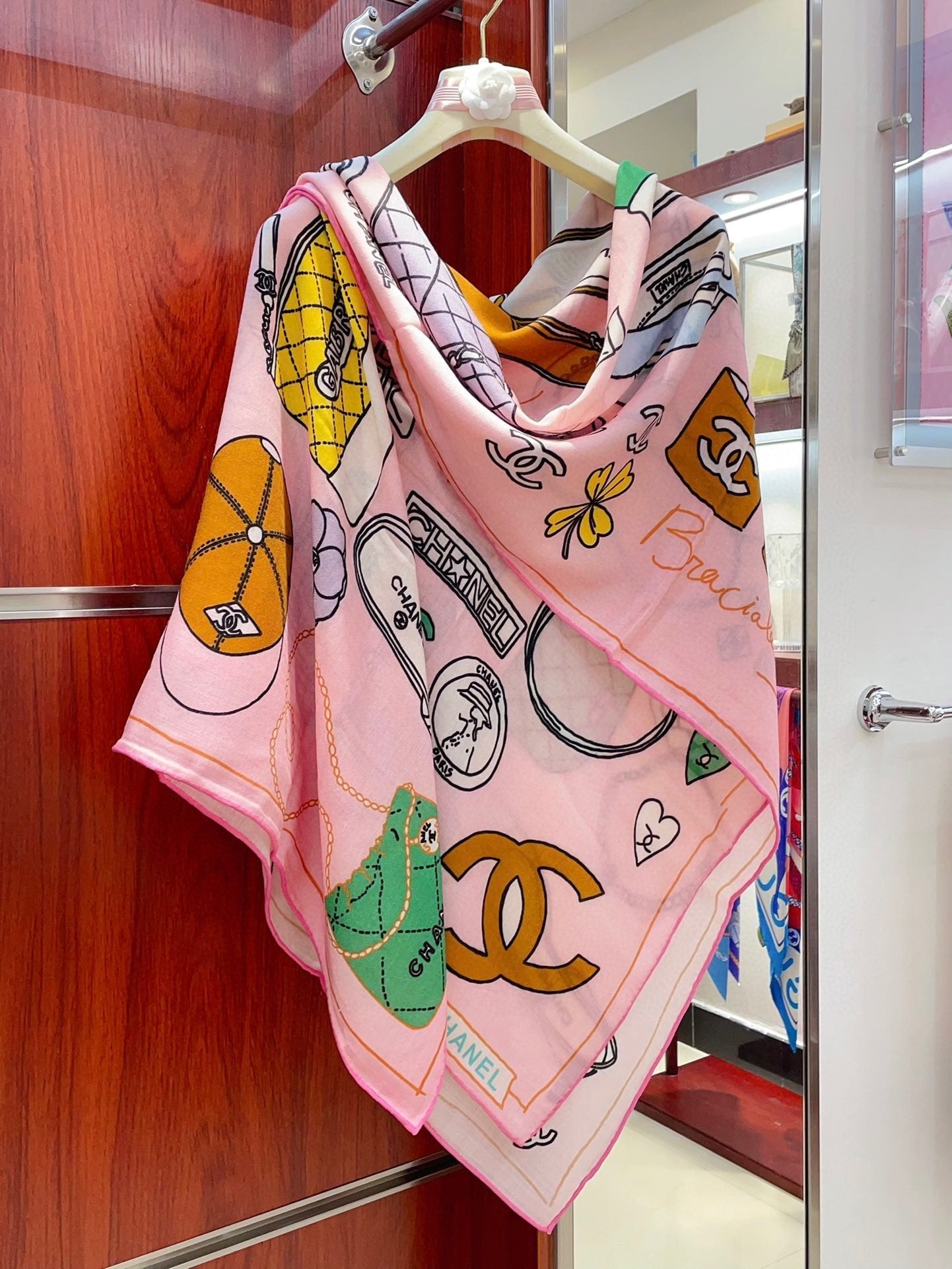 CC Square Scarf 140 CM In Pink Colorful Cashmere And Silk 359397