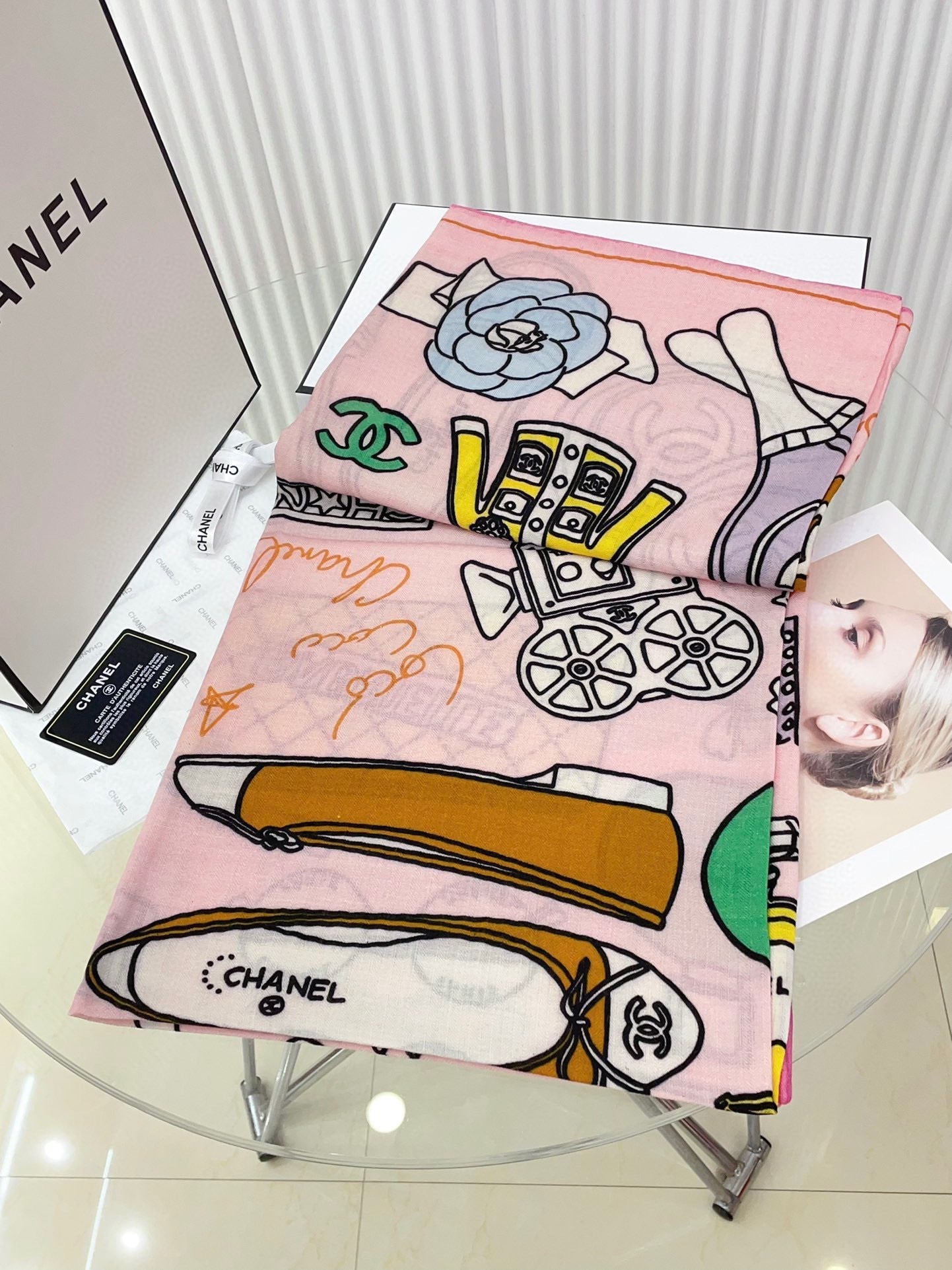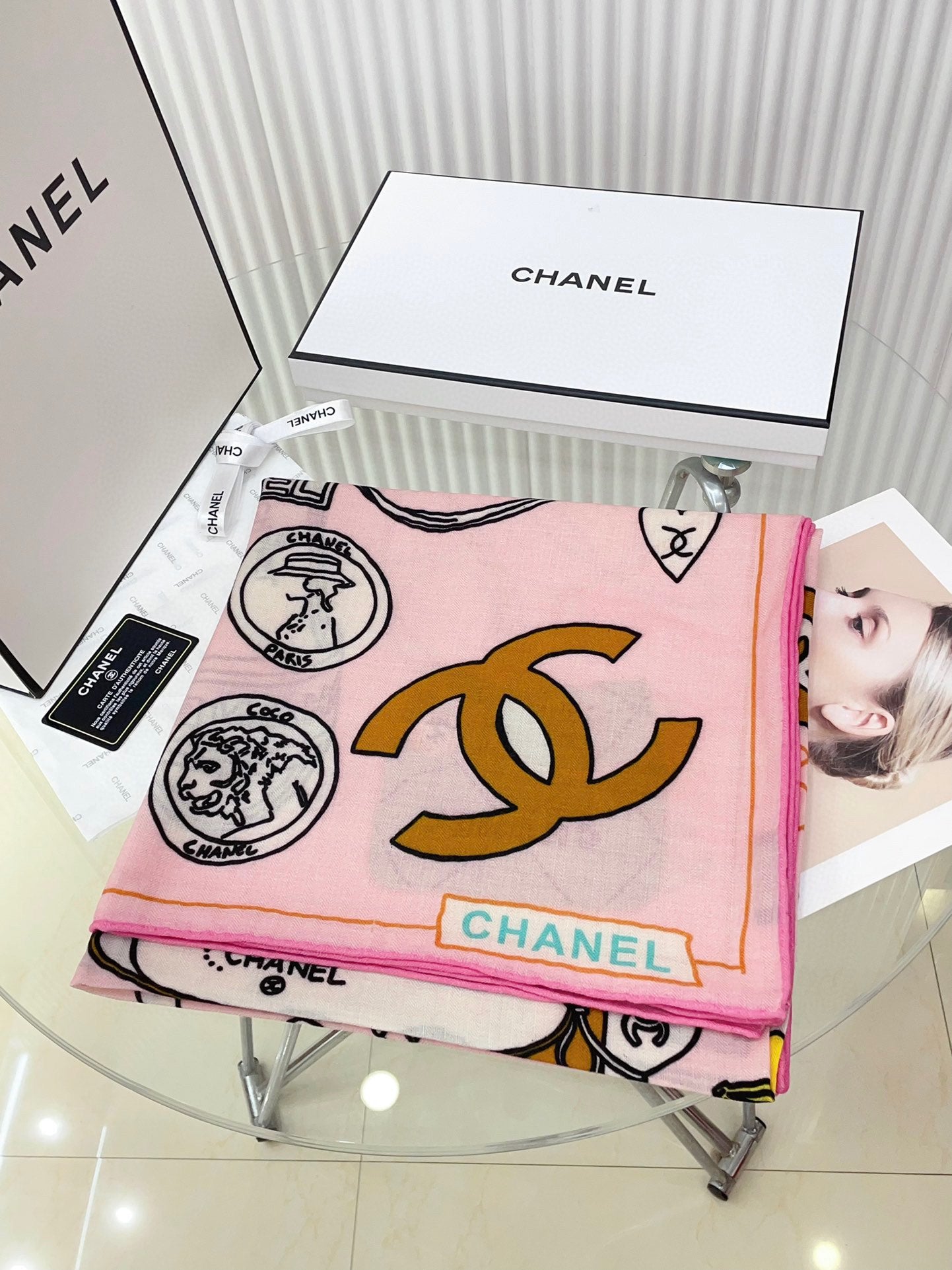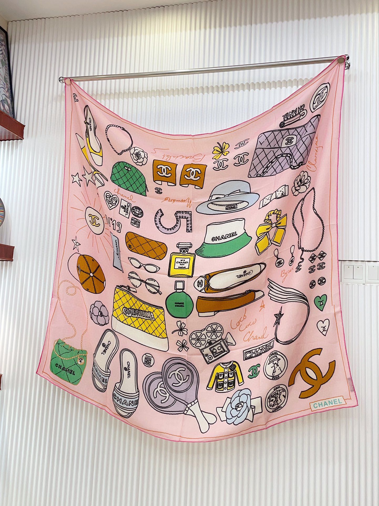 CC Square Scarf 140 CM In Pink Colorful Cashmere And Silk 359397