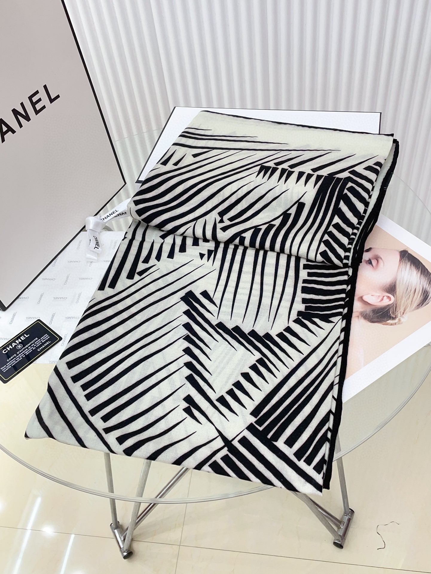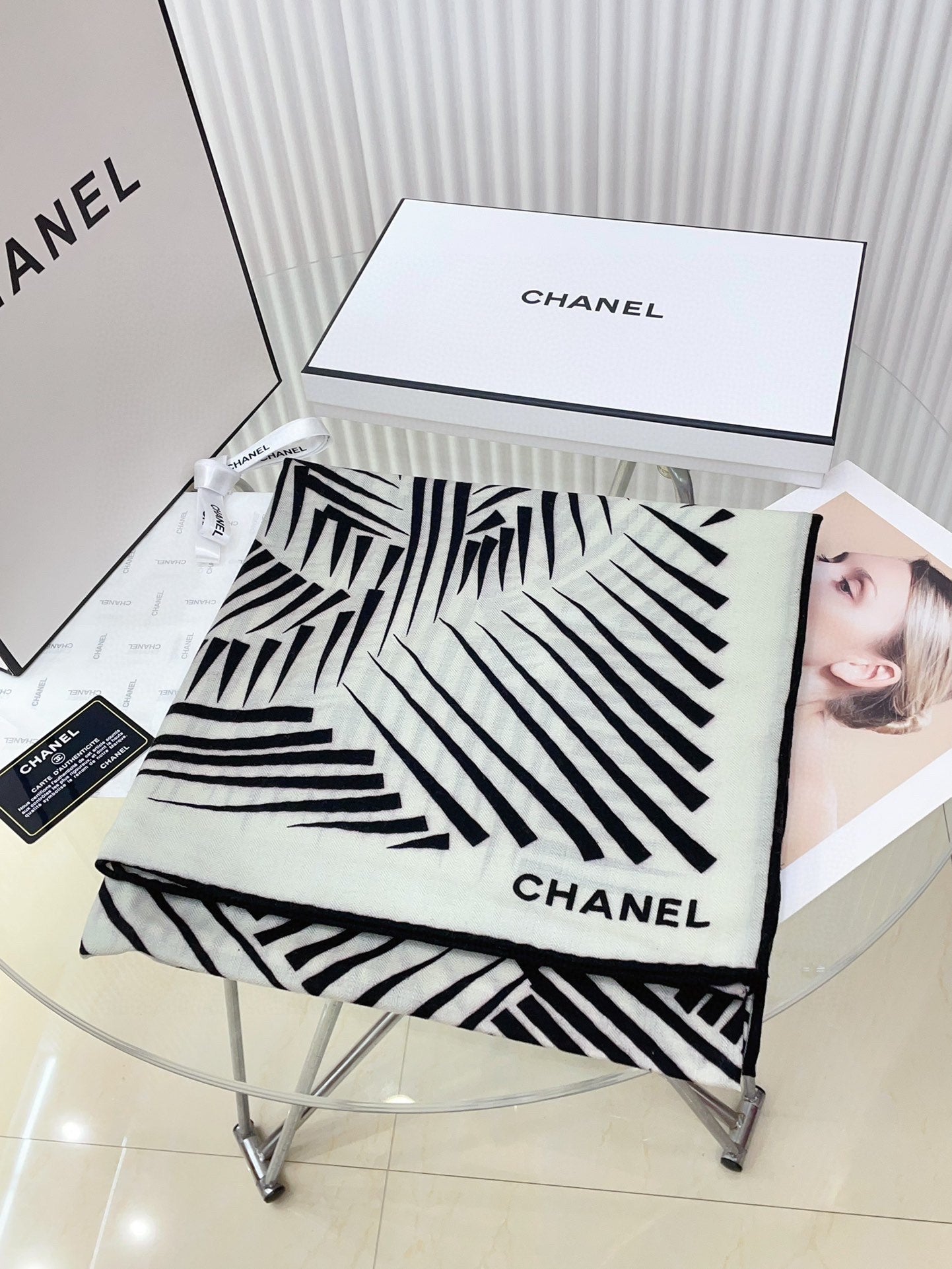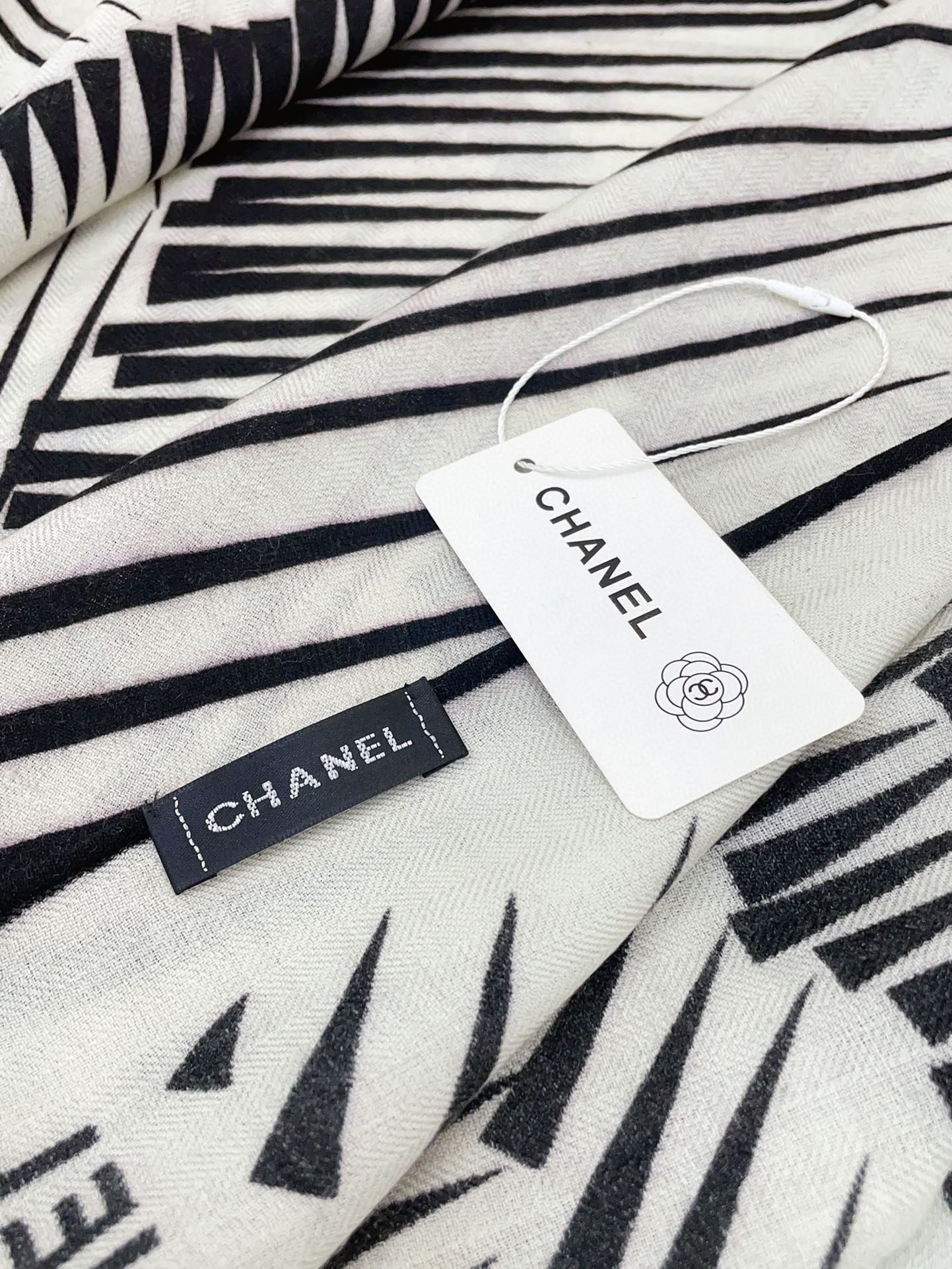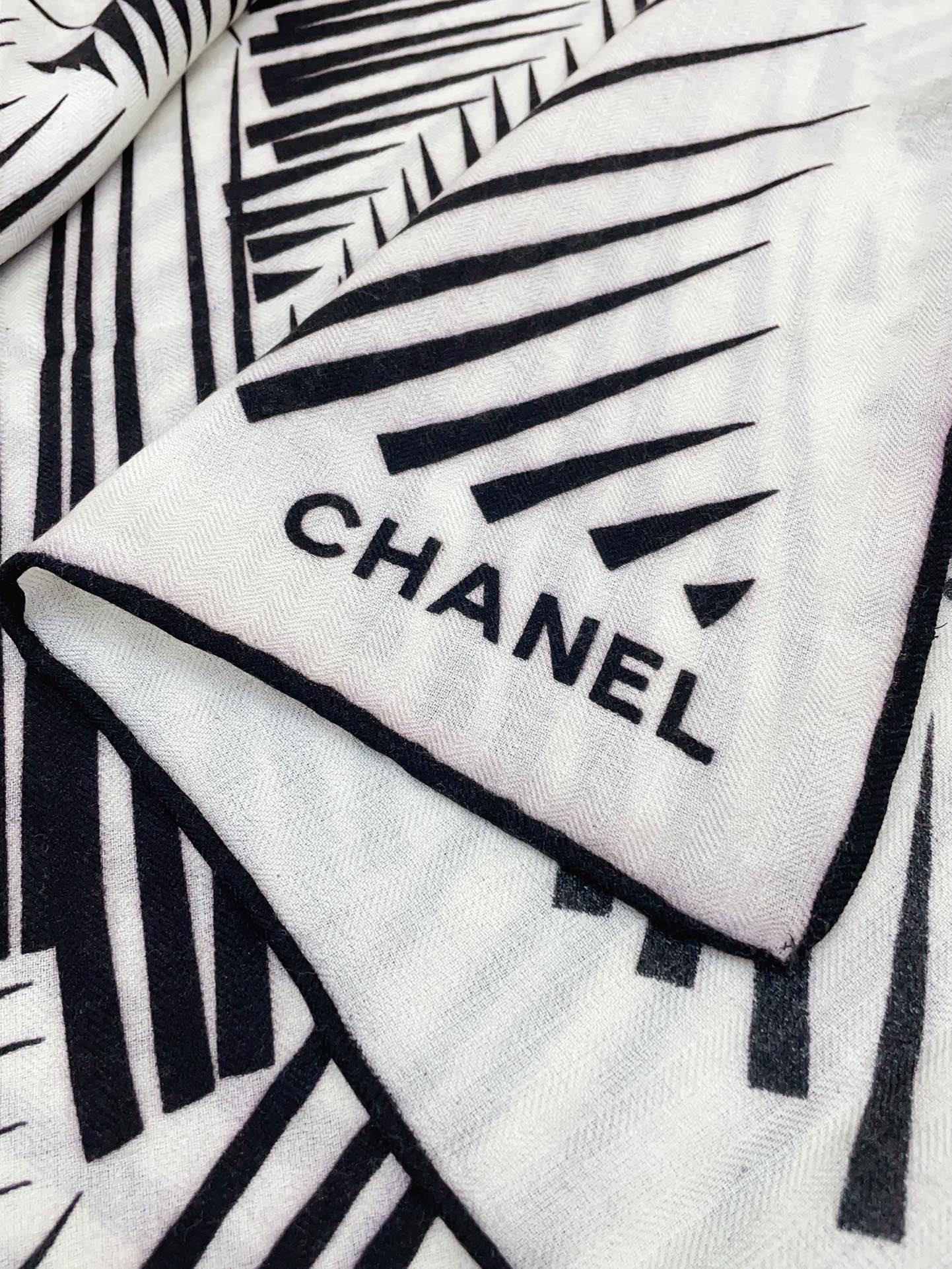 CC Square Scarf 140 CM In White Black Cashmere Mix Silk 382616