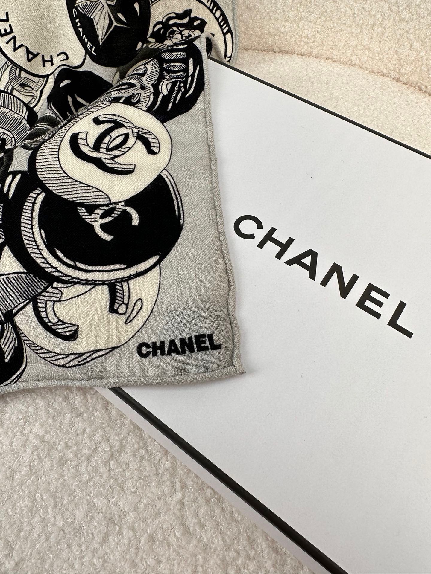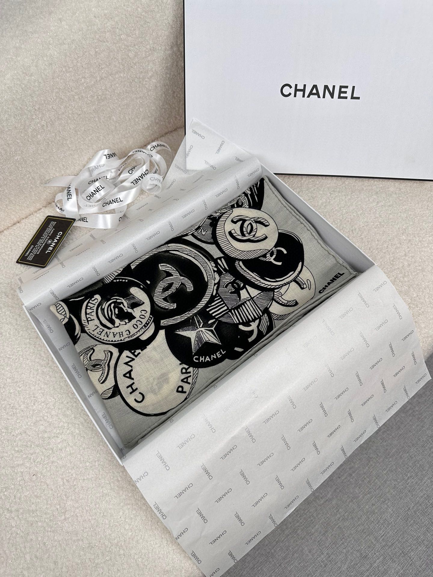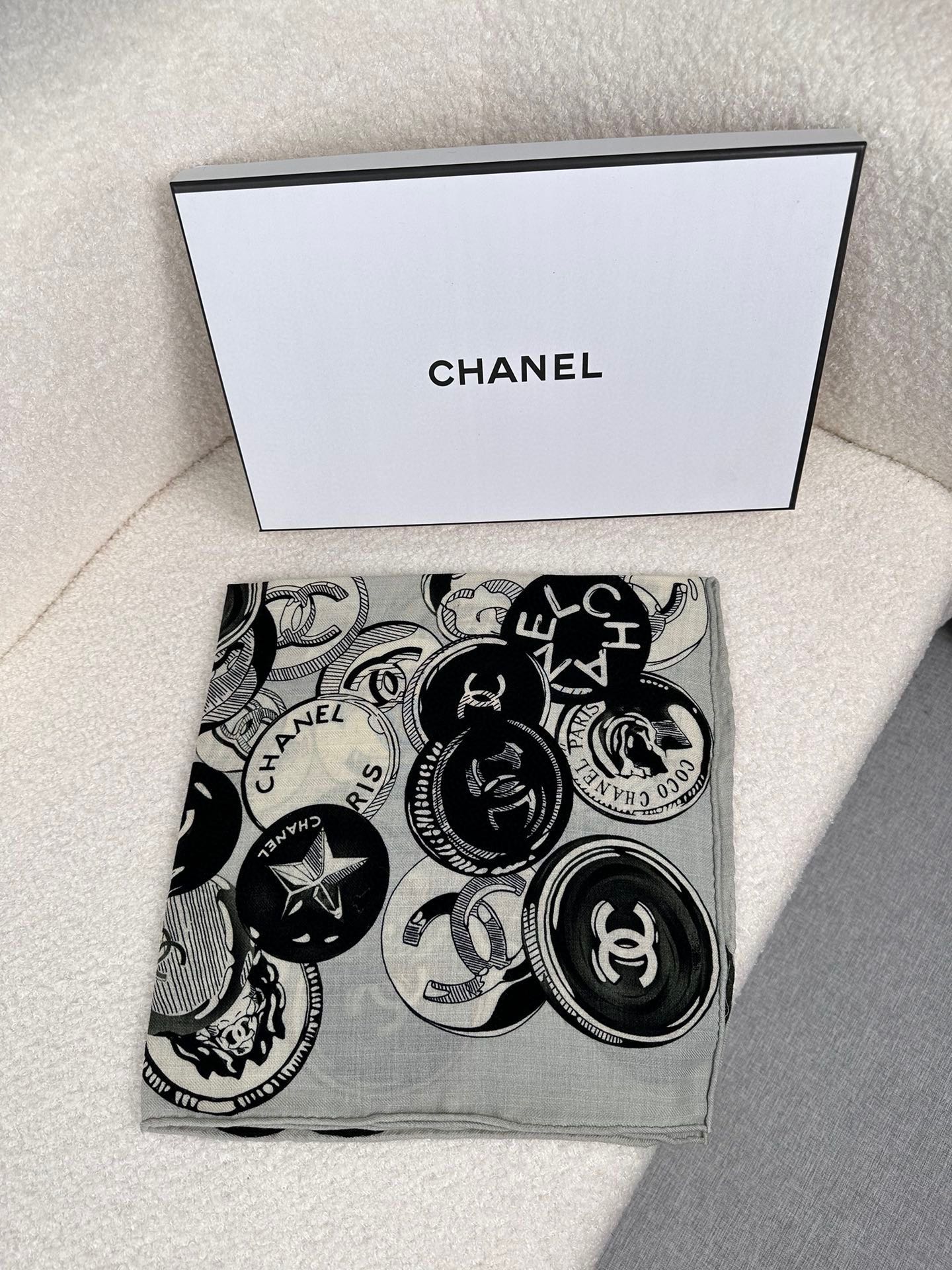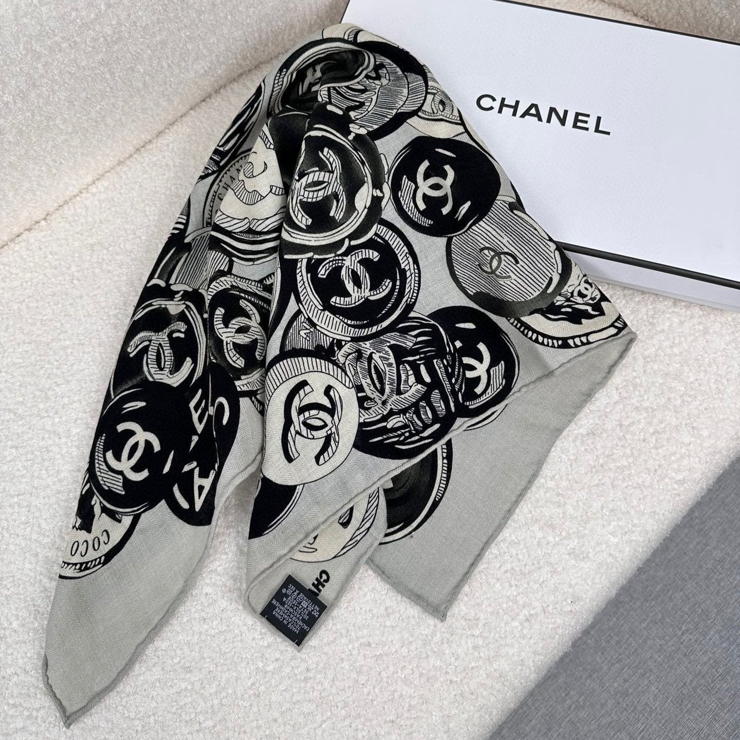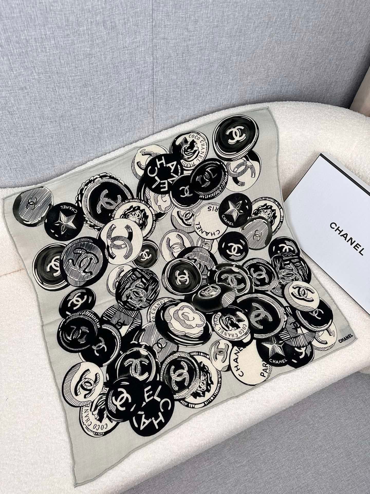 CC Square Scarf 70 CM In Grey Colorful Cashmere And Silk 399803