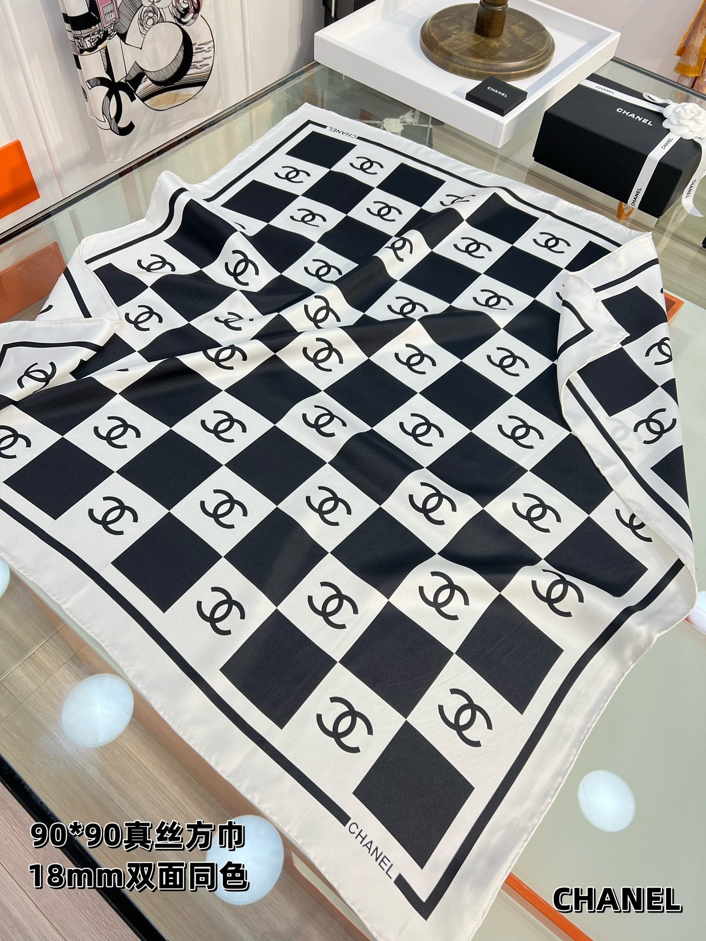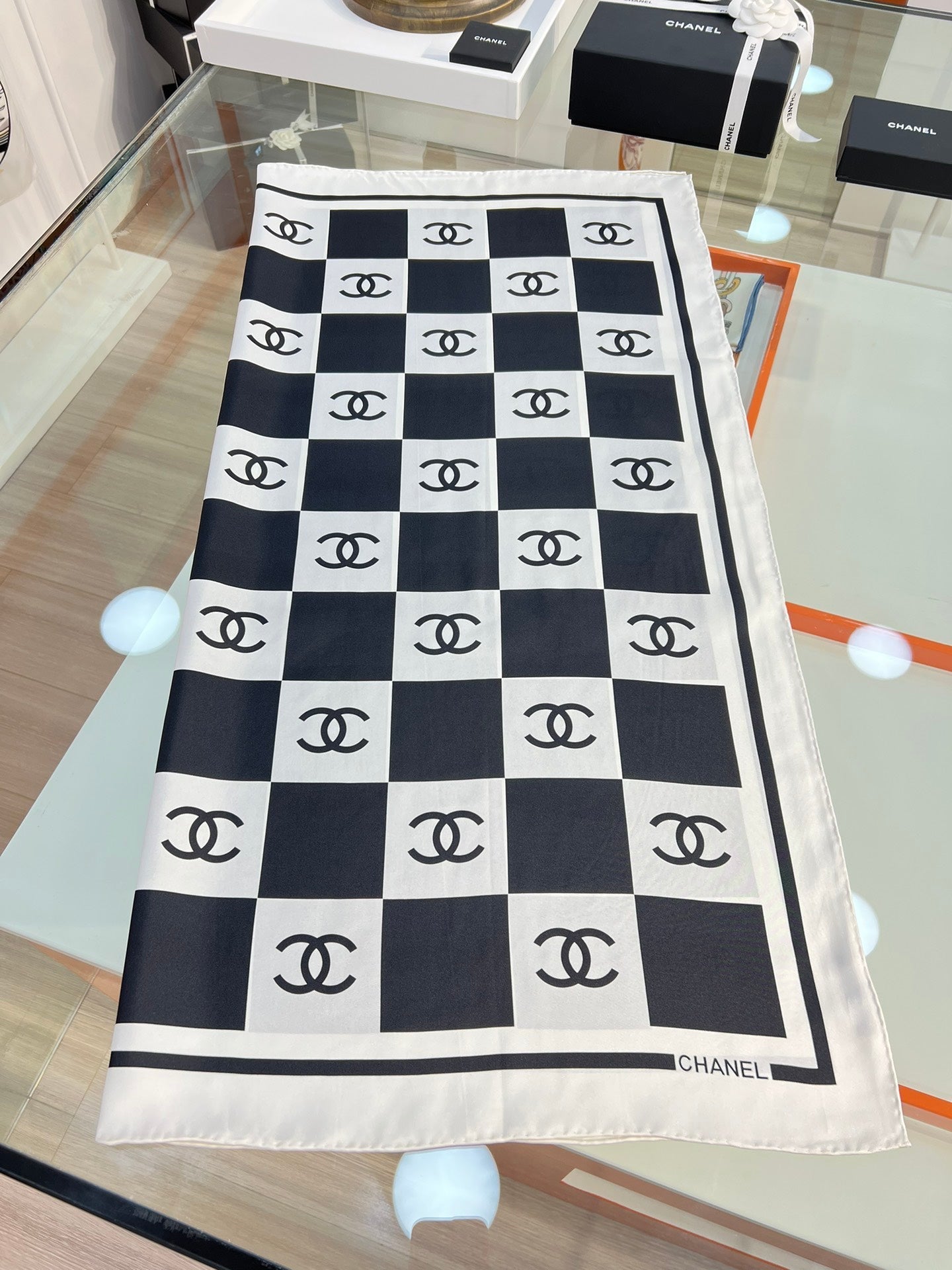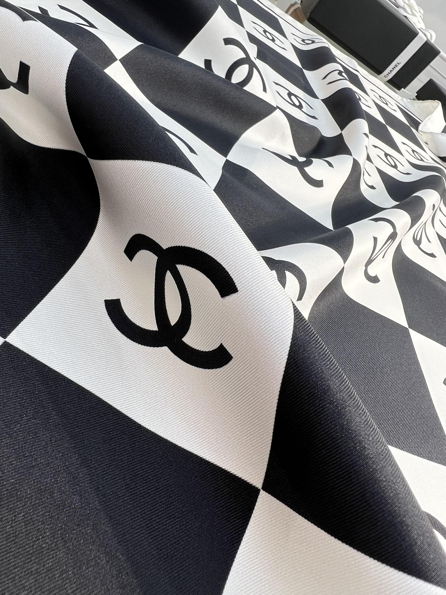 CC Square Scarf 90 CM In Black And White Plaid Silk Twill 288742