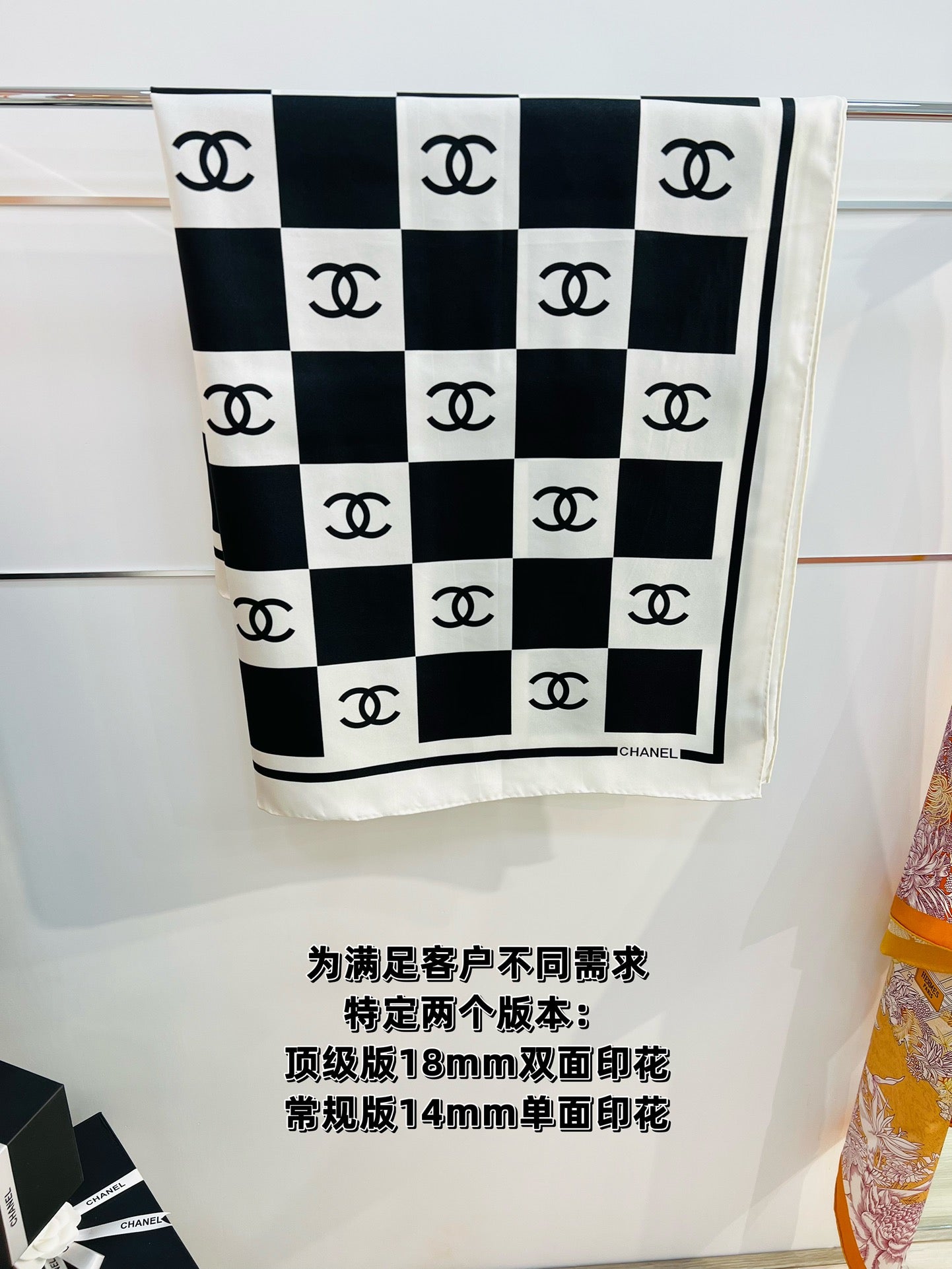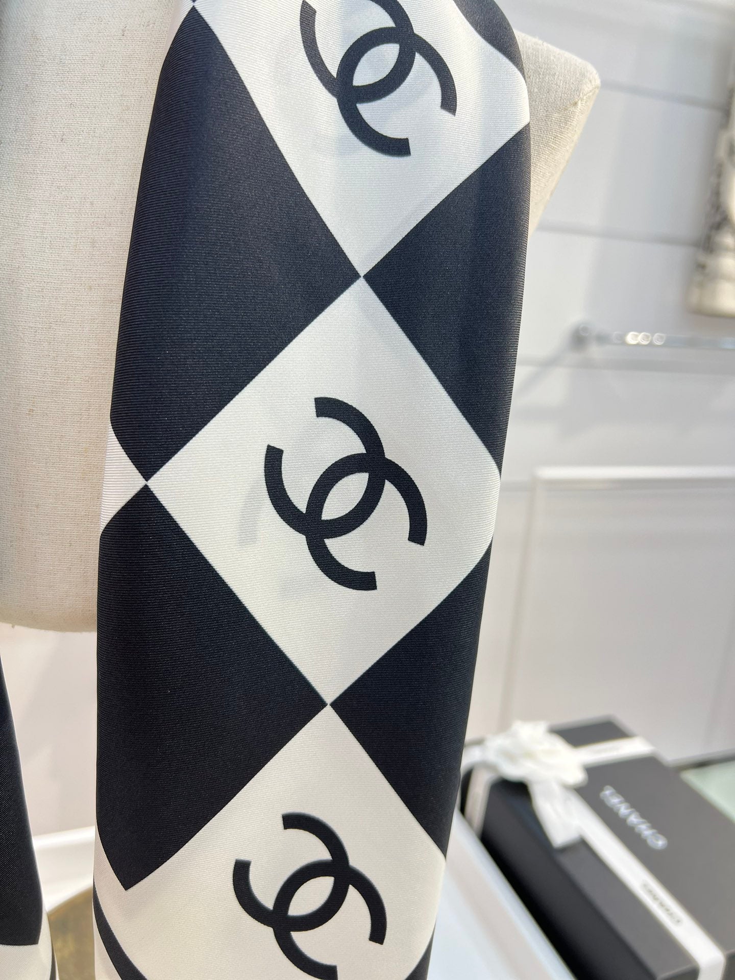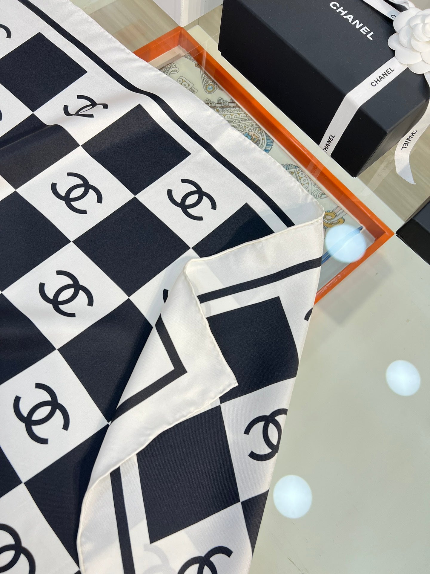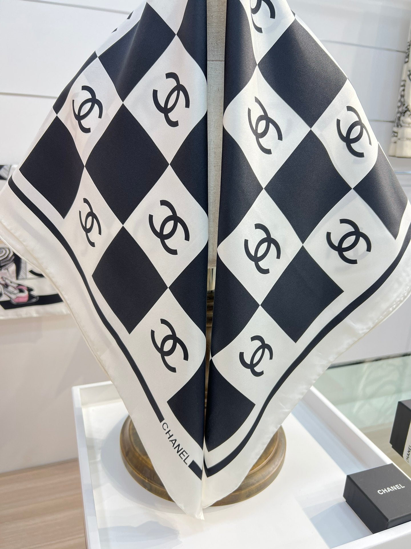 CC Square Scarf 90 CM In Black And White Plaid Silk Twill 288742