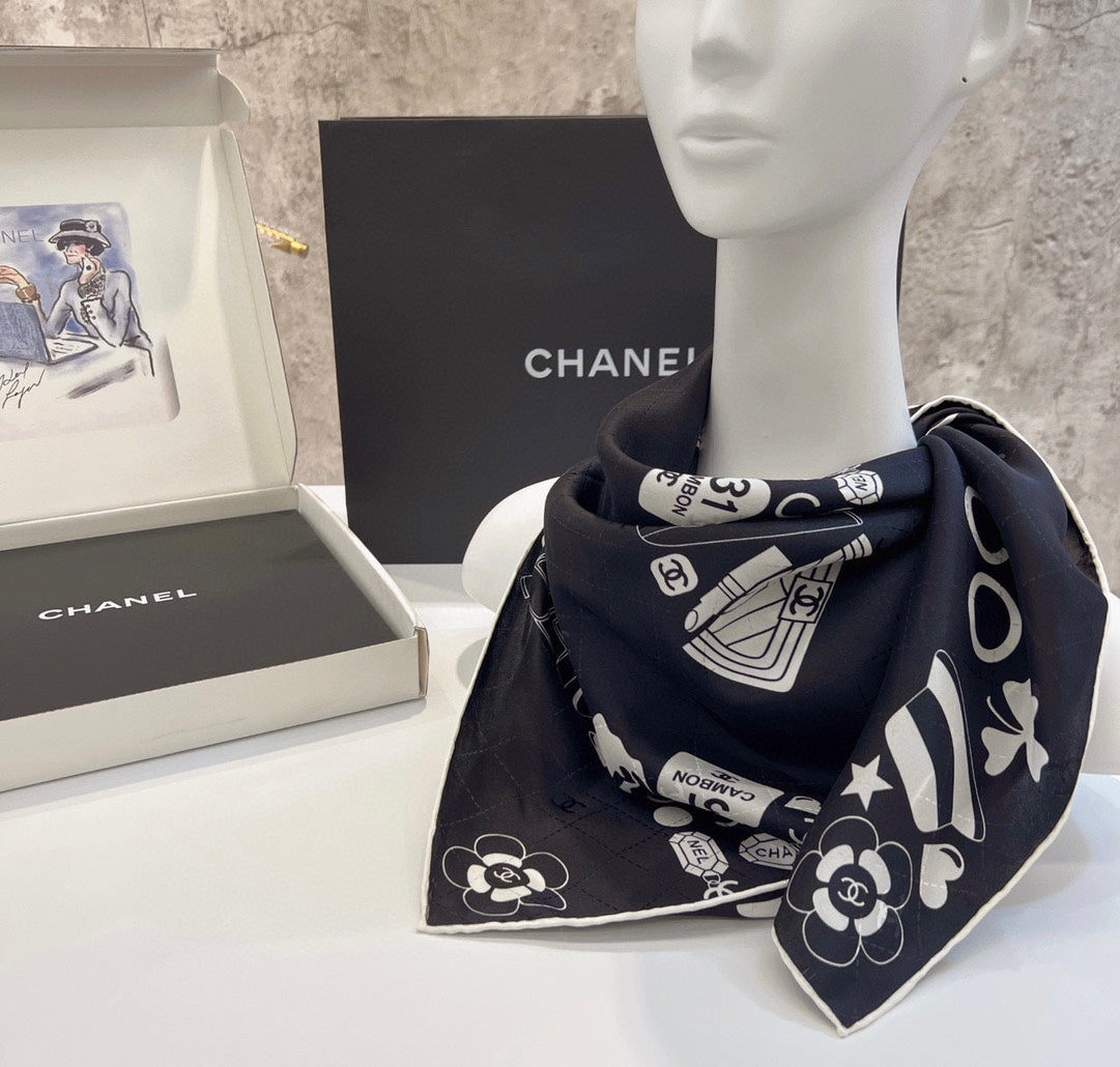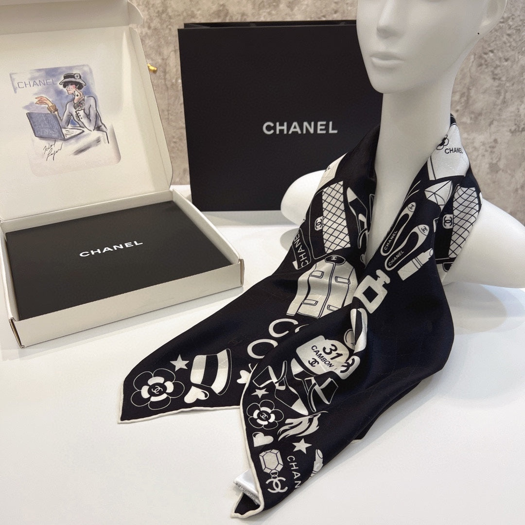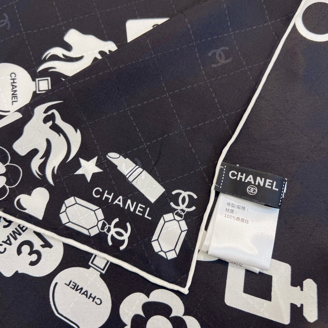 CC Square Scarf 90 CM In Black Mix White Silk 288715