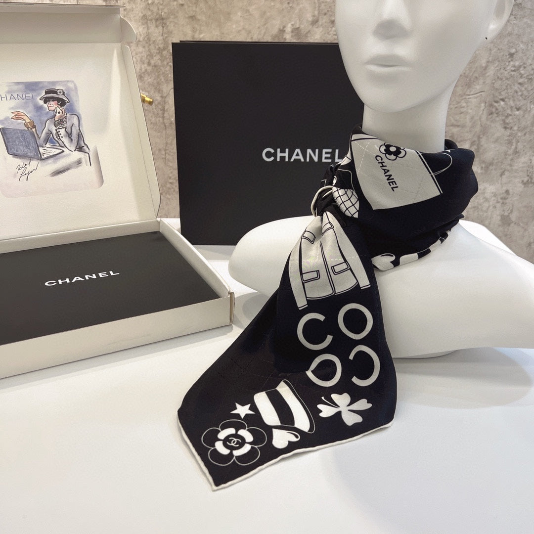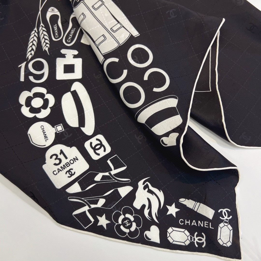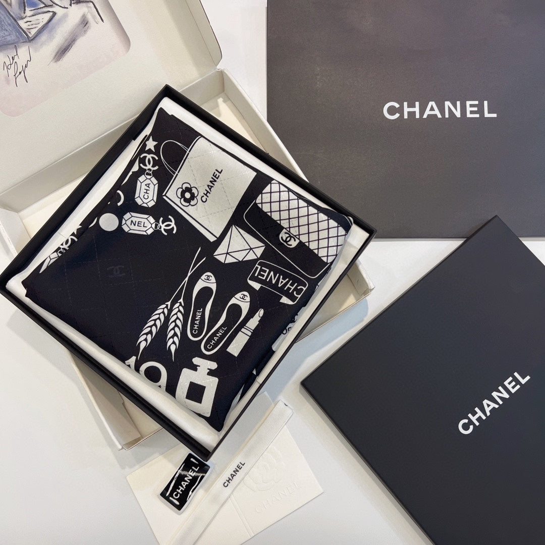 CC Square Scarf 90 CM In Black Mix White Silk 288715