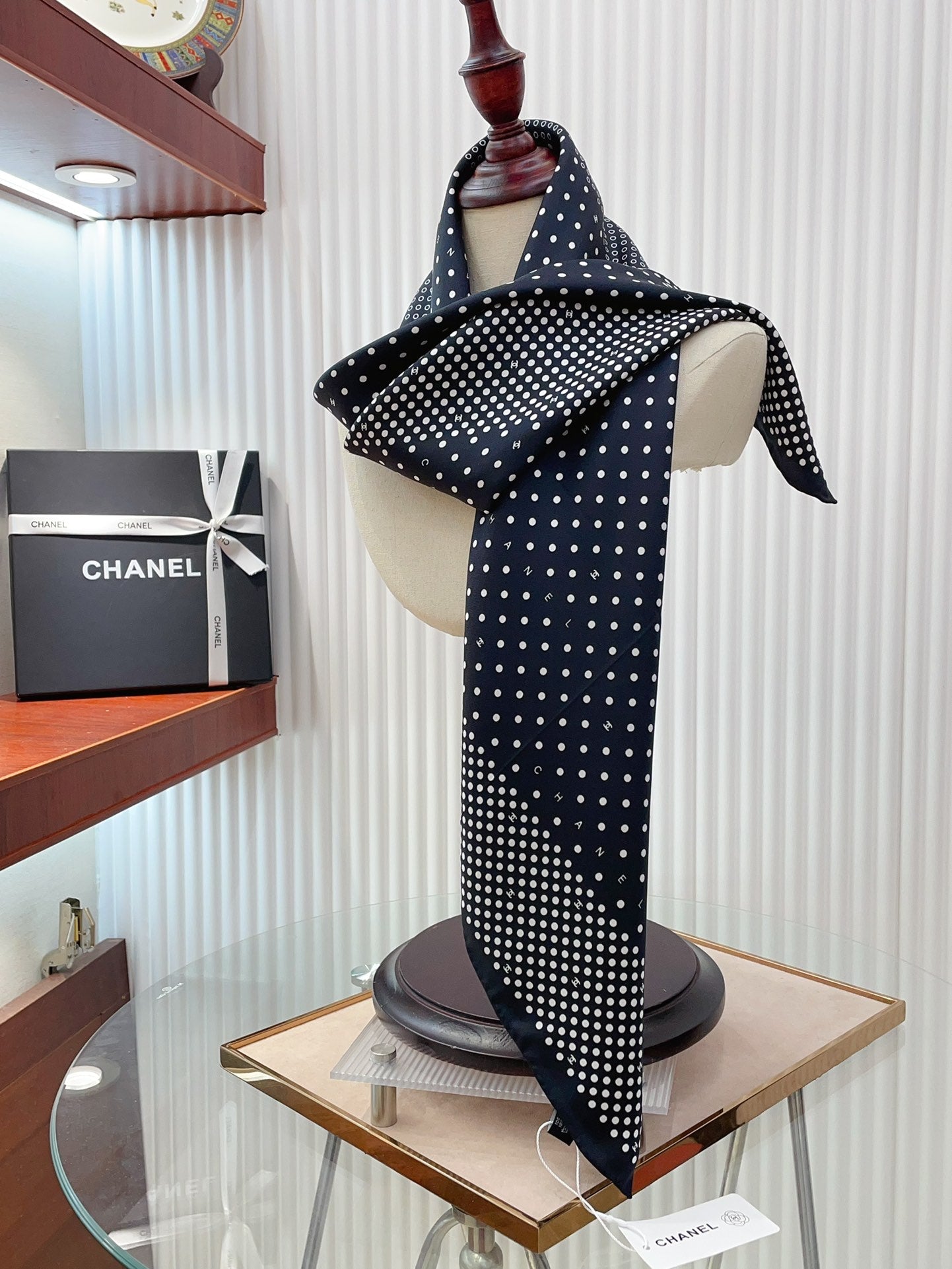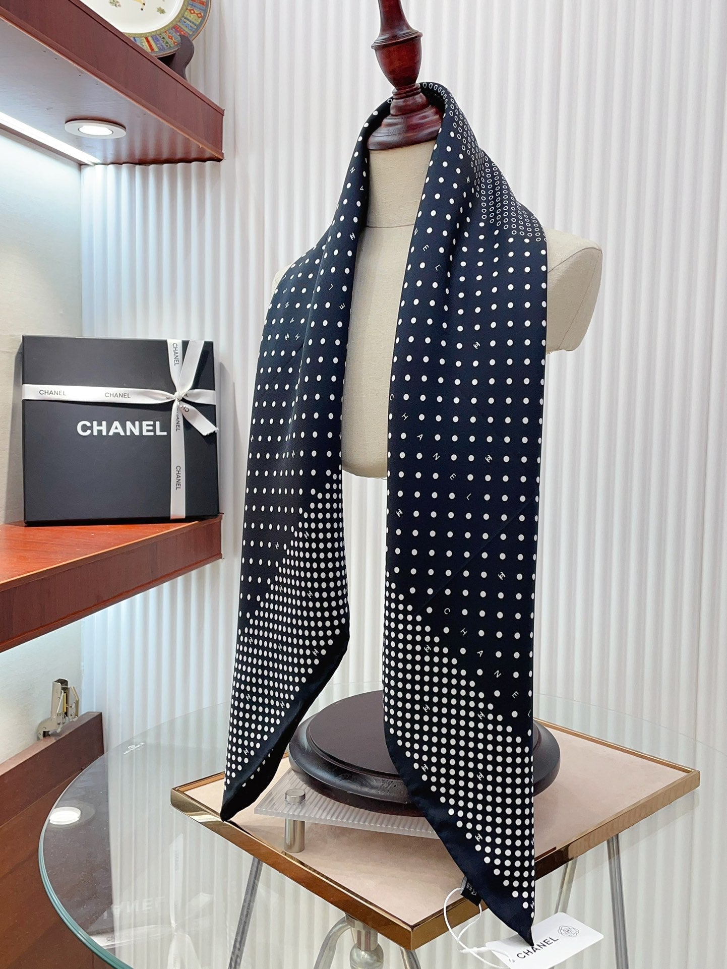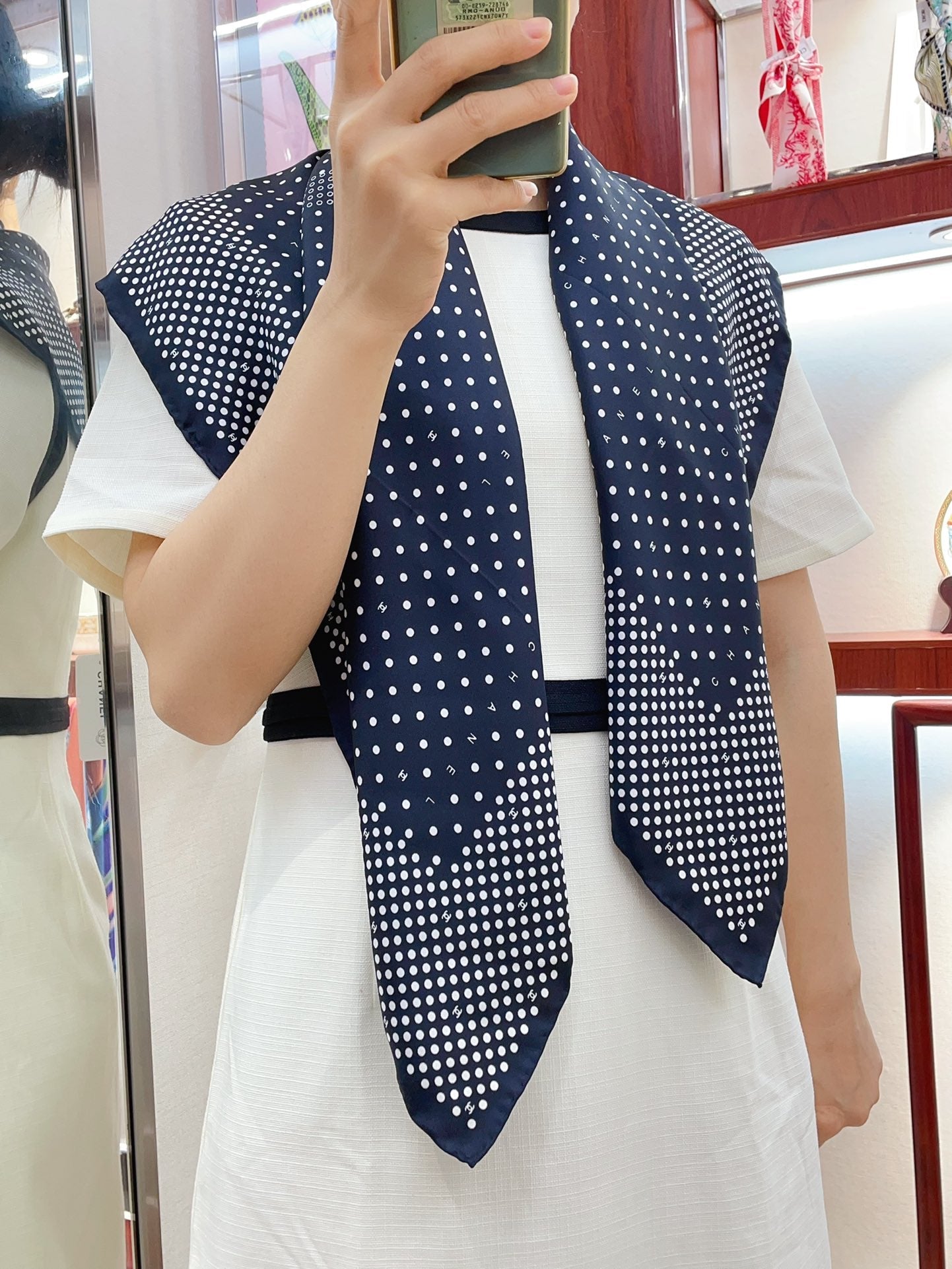CC Square Scarf 90 CM In Black White Polka Dot Silk Twill 166291