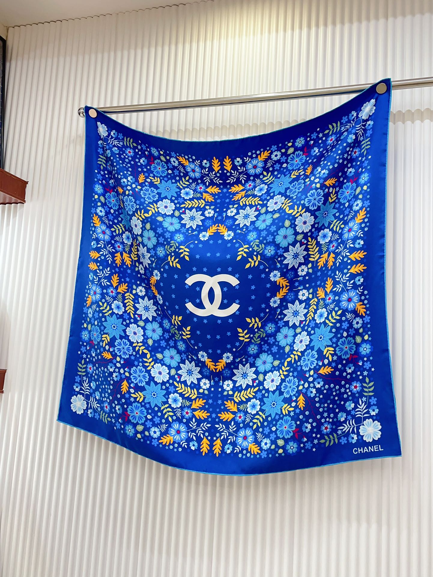 CC Square Scarf 90 CM In Blue Colorful Silk Twill 234598