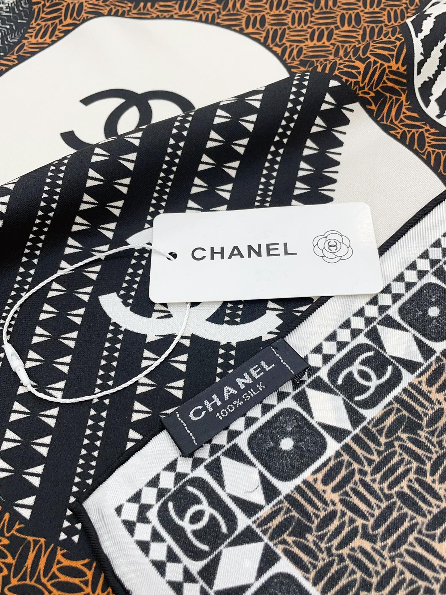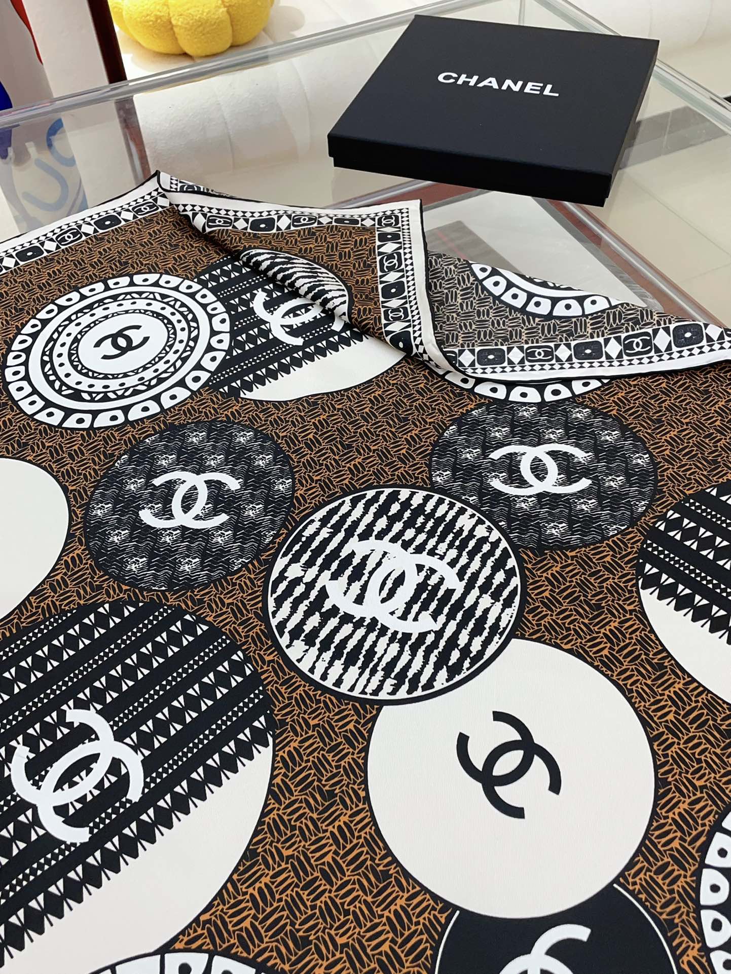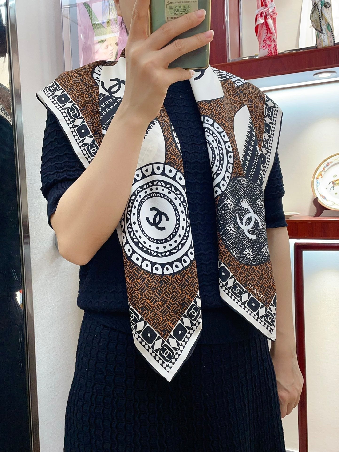CC Square Scarf 90 CM In Brown Multi-Pattern Silk Twill 231846