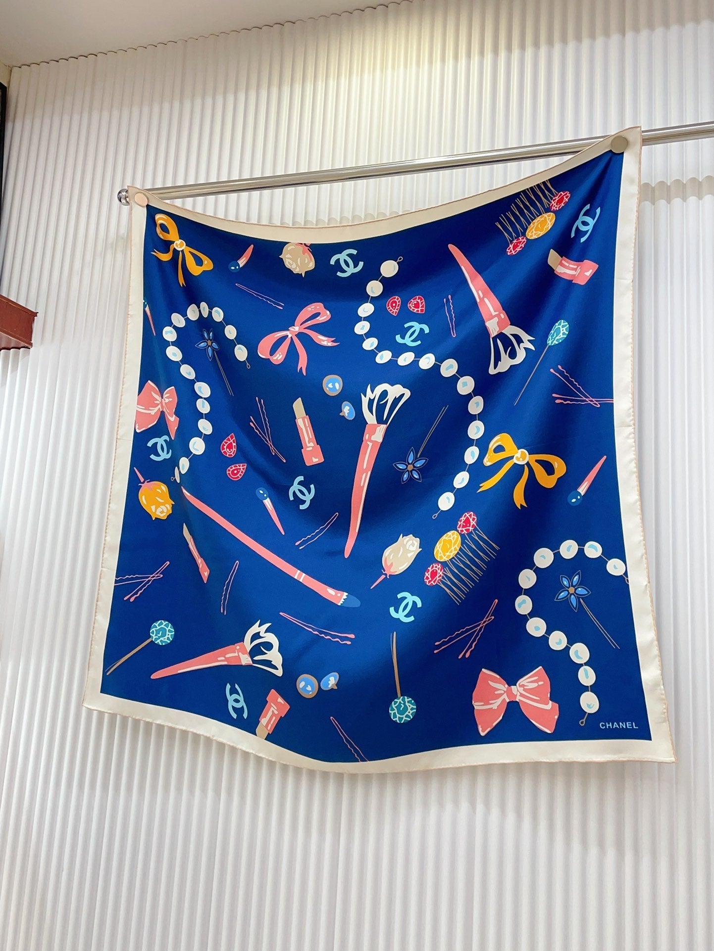 CC Square Scarf 90 CM In Dark Blue Colorful Silk Twill 213690