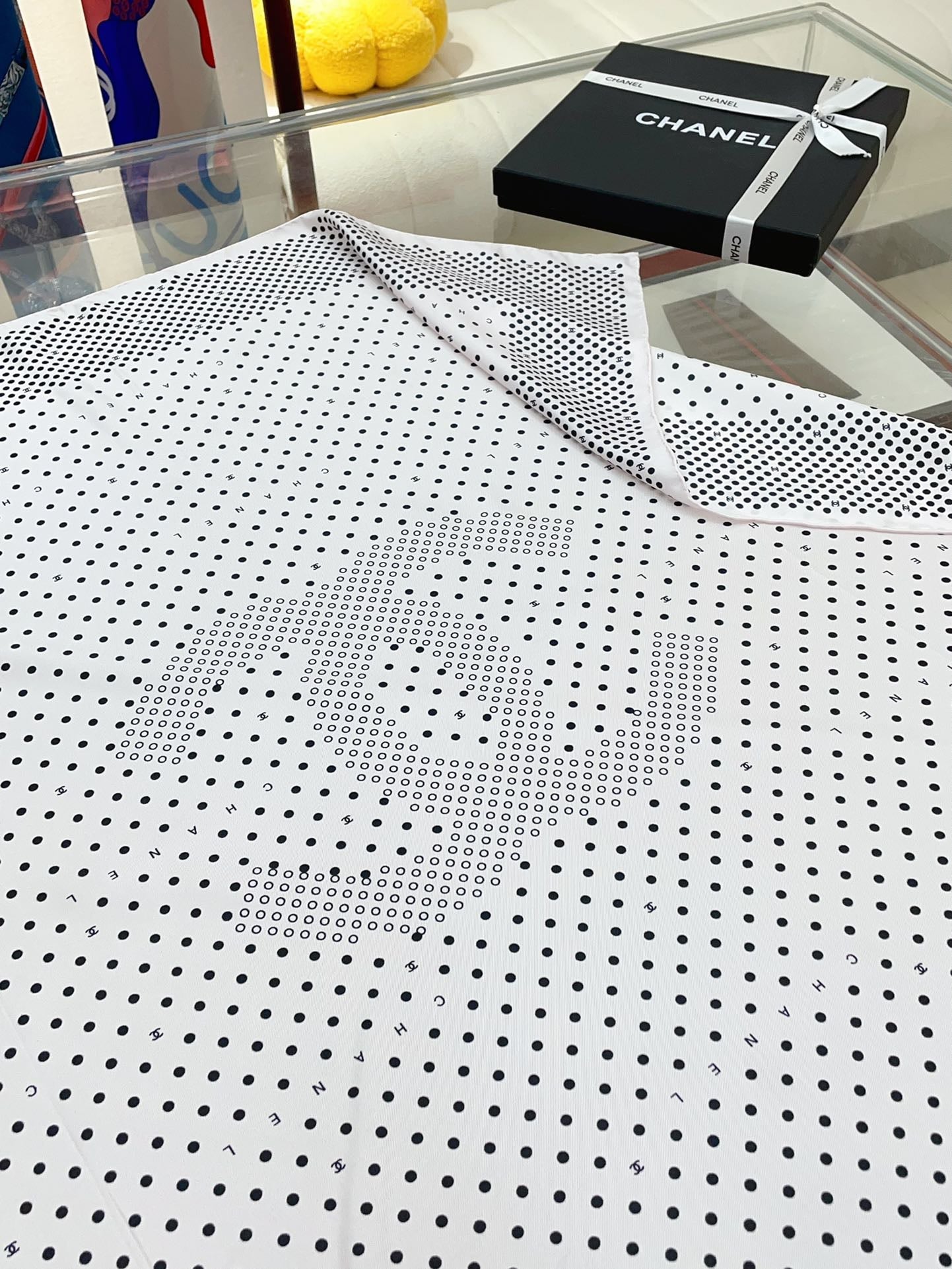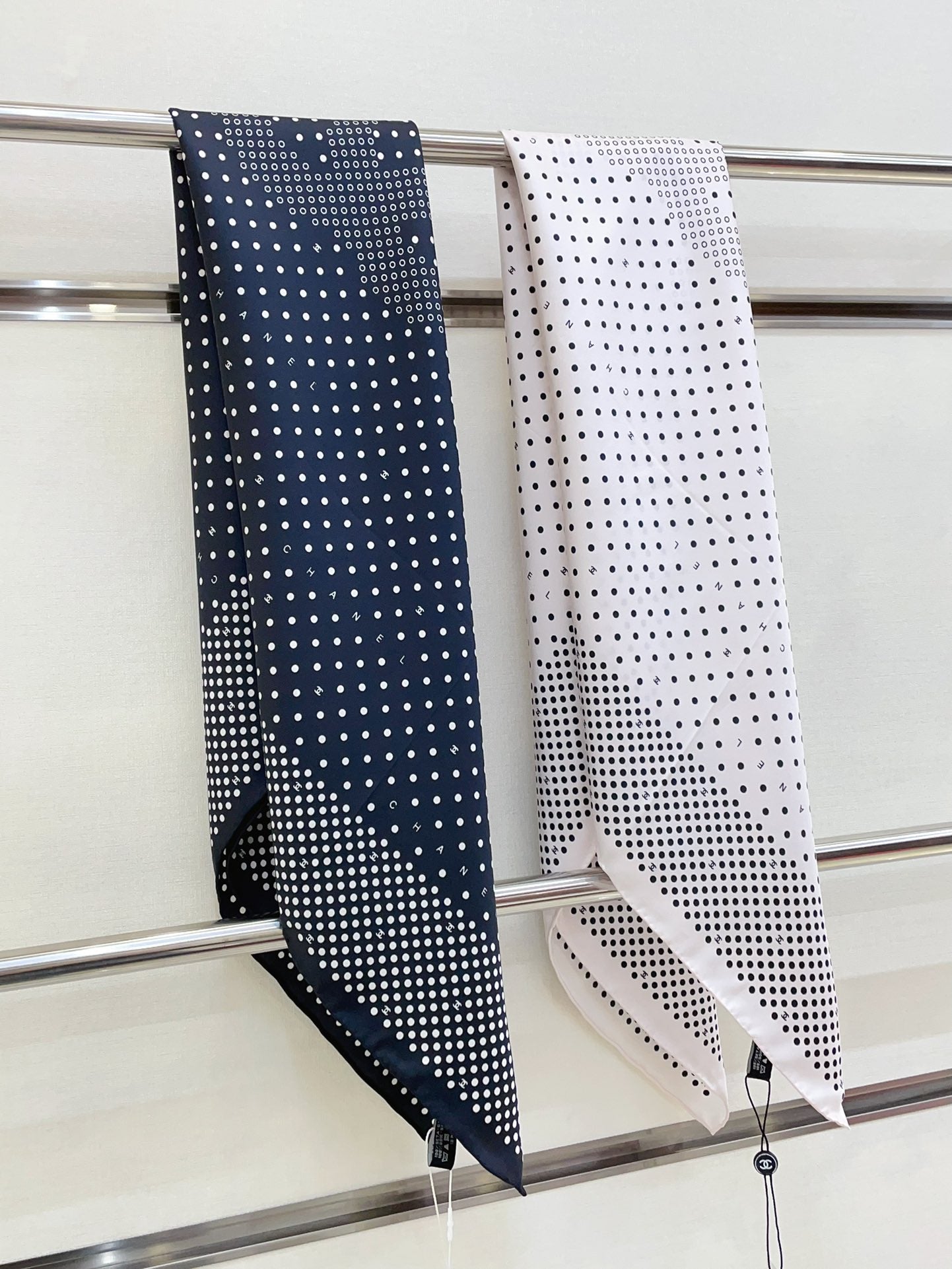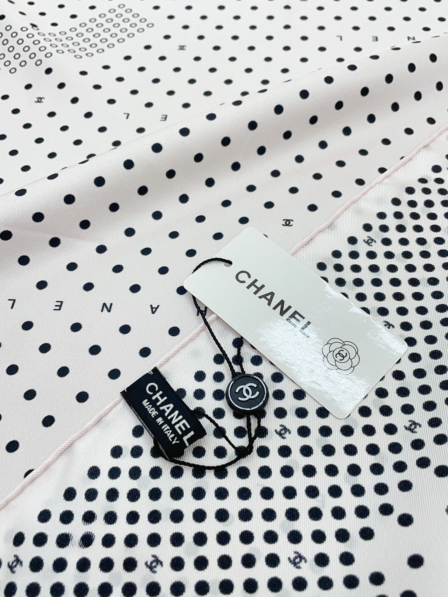 CC Square Scarf 90 CM In White Black Polka Dot Silk Twill 166292