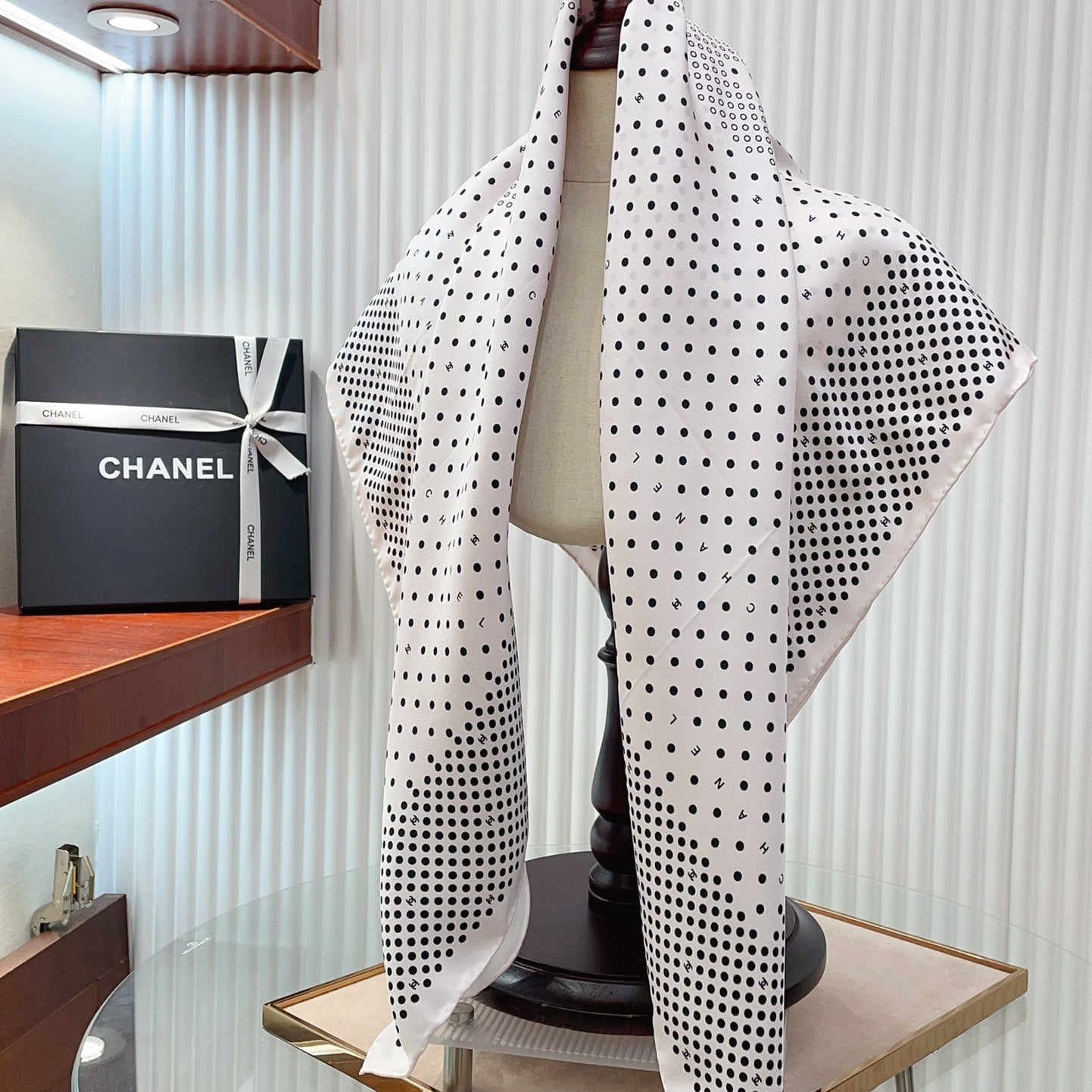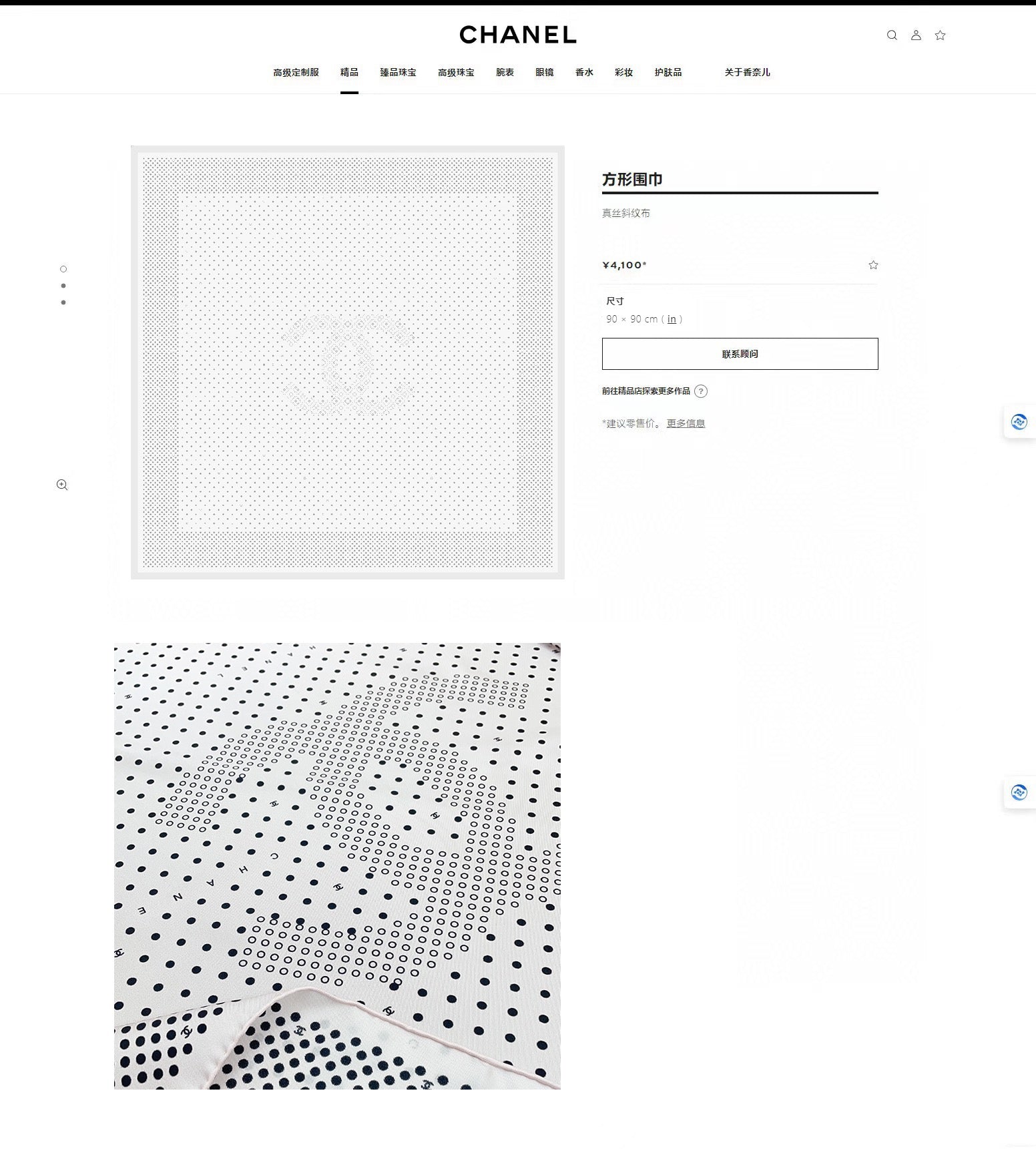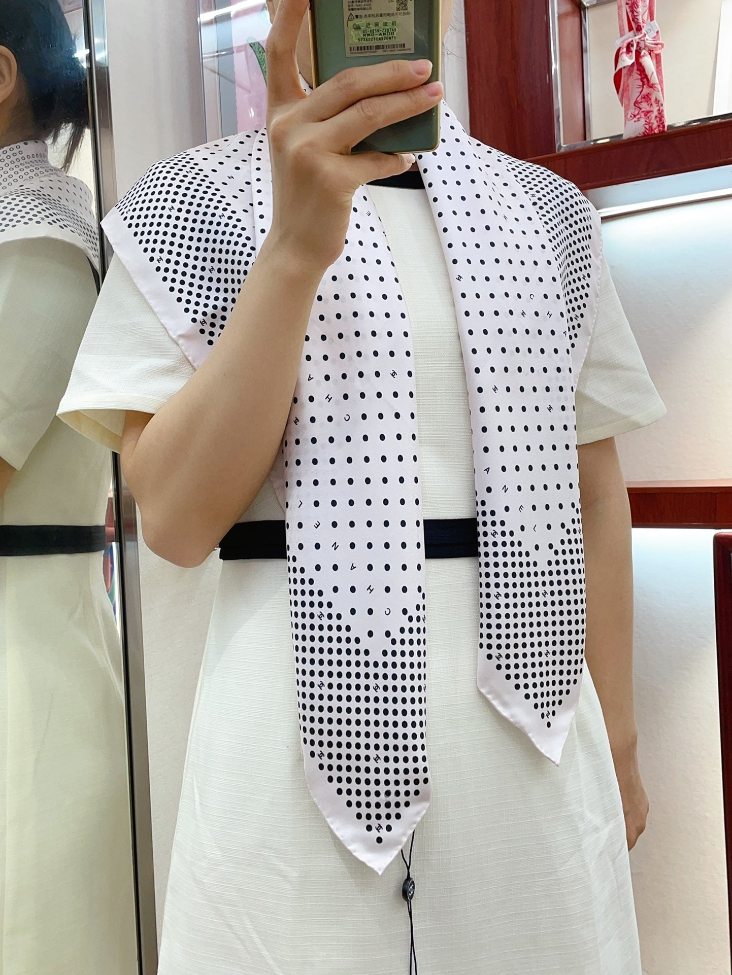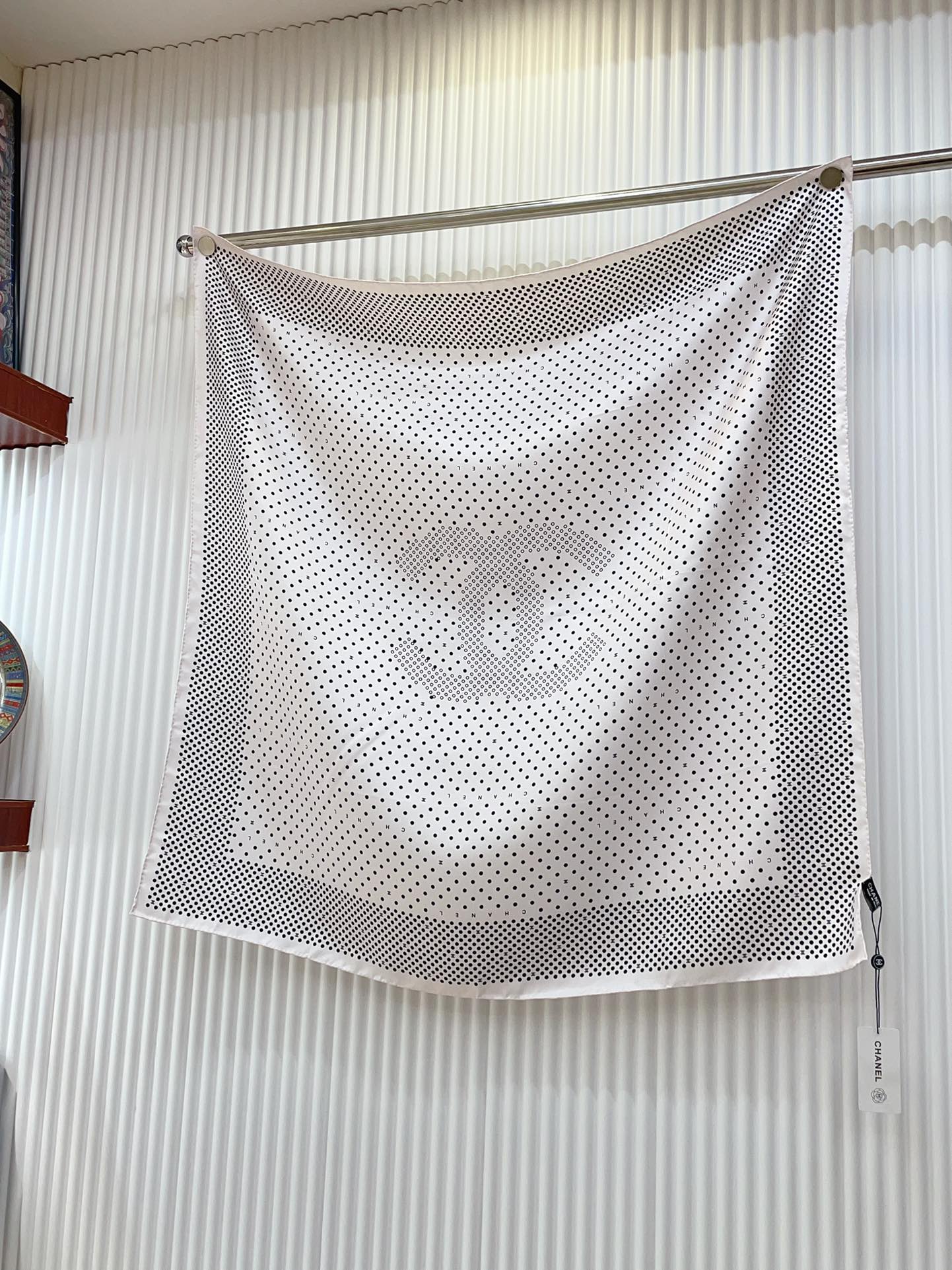 CC Square Scarf 90 CM In White Black Polka Dot Silk Twill 166292