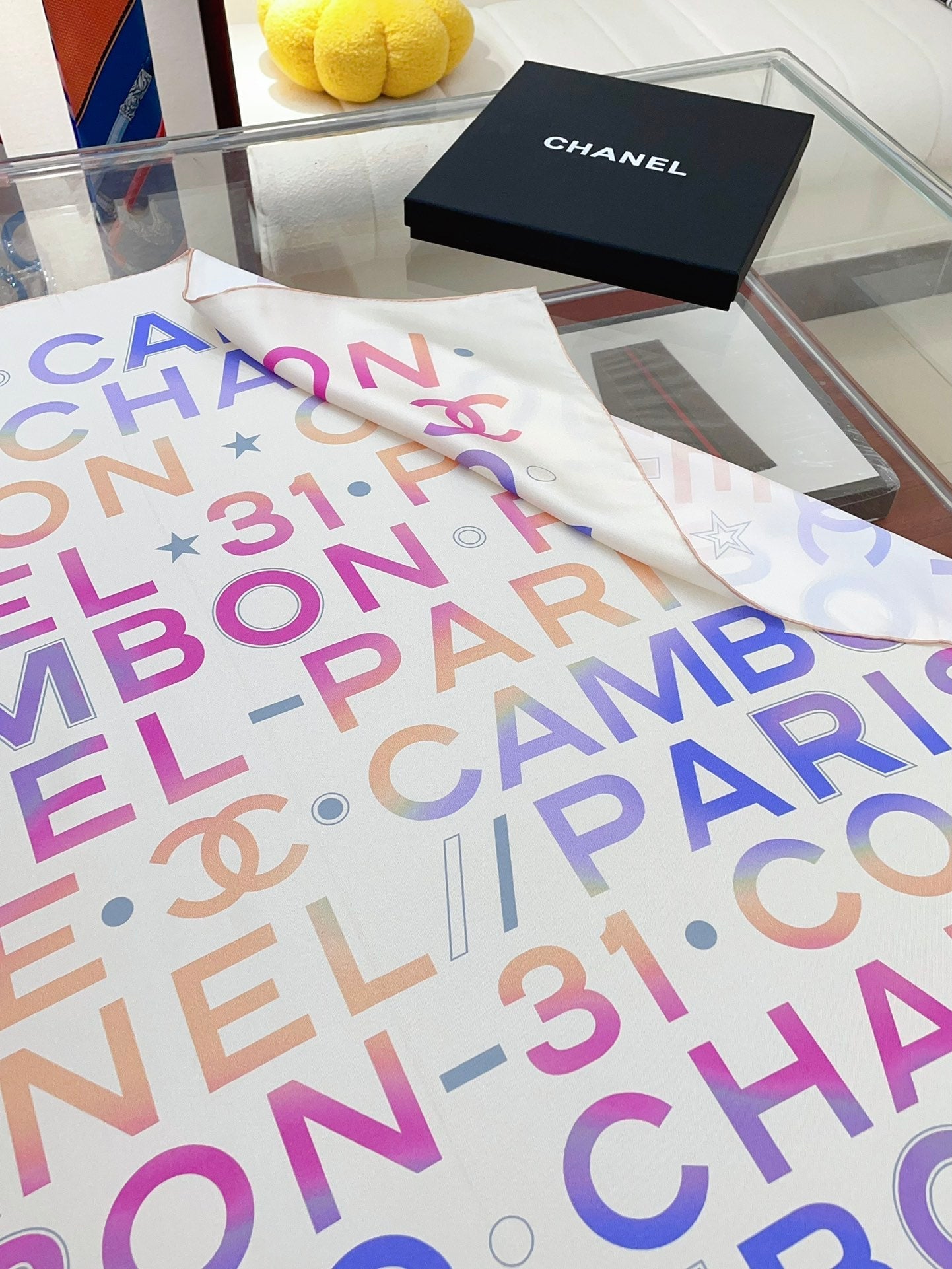 CC Square Scarf 90 CM In White Colorful Silk Twill 174877