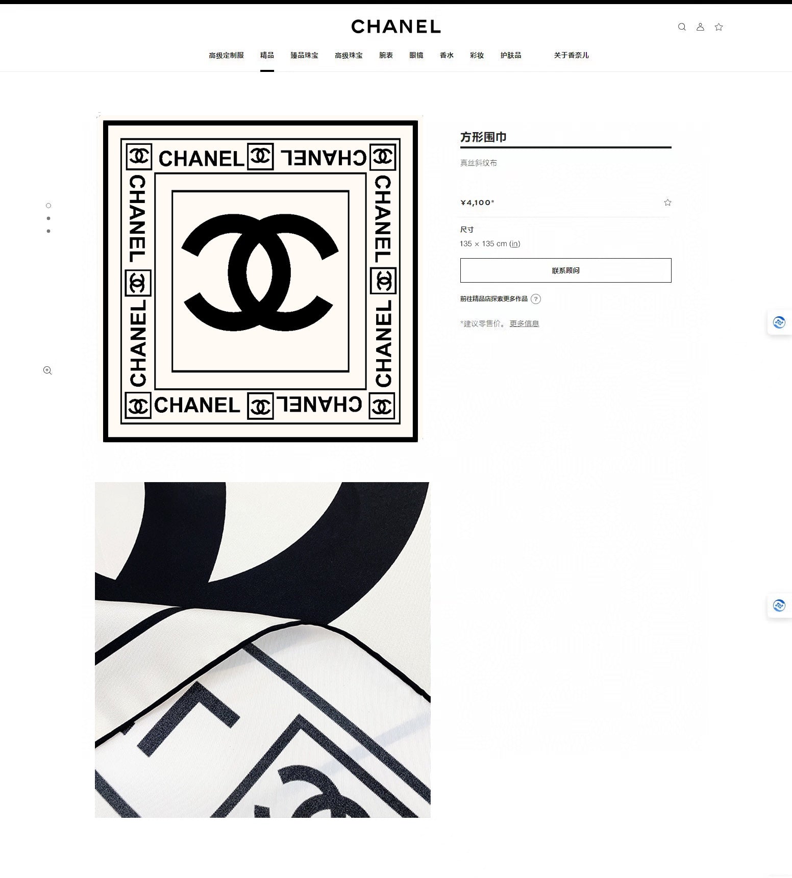 CC Square Scarf 90 CM In White Mix Black Silk Twill 167960