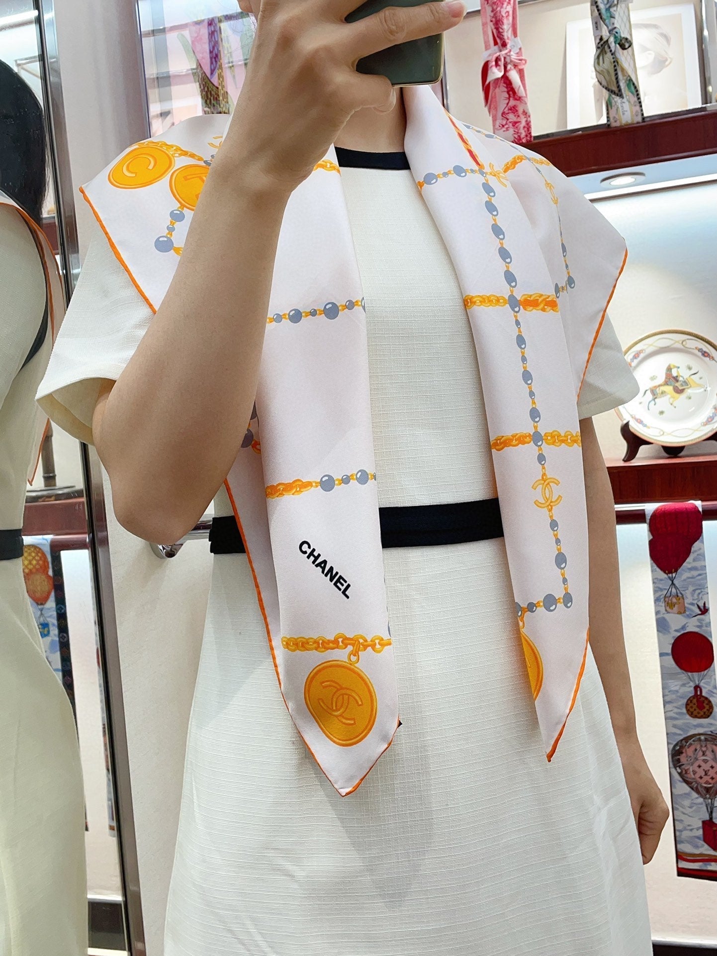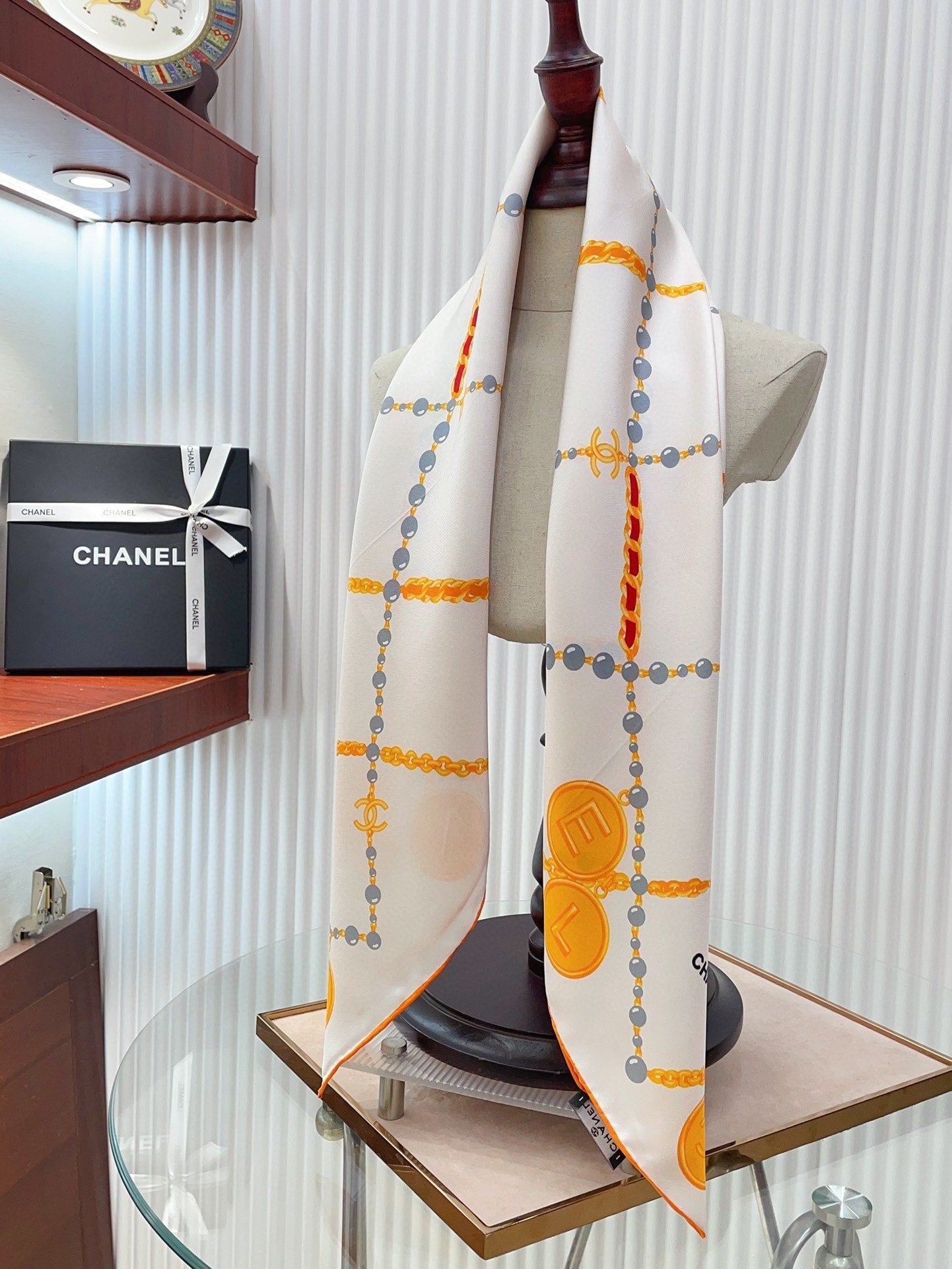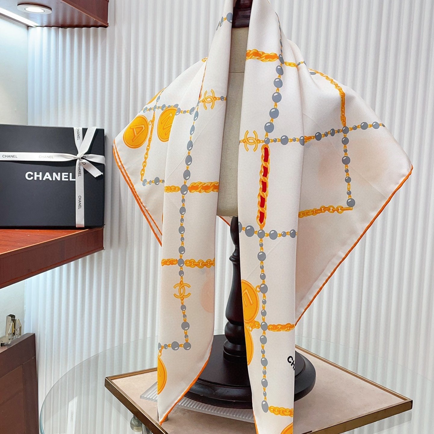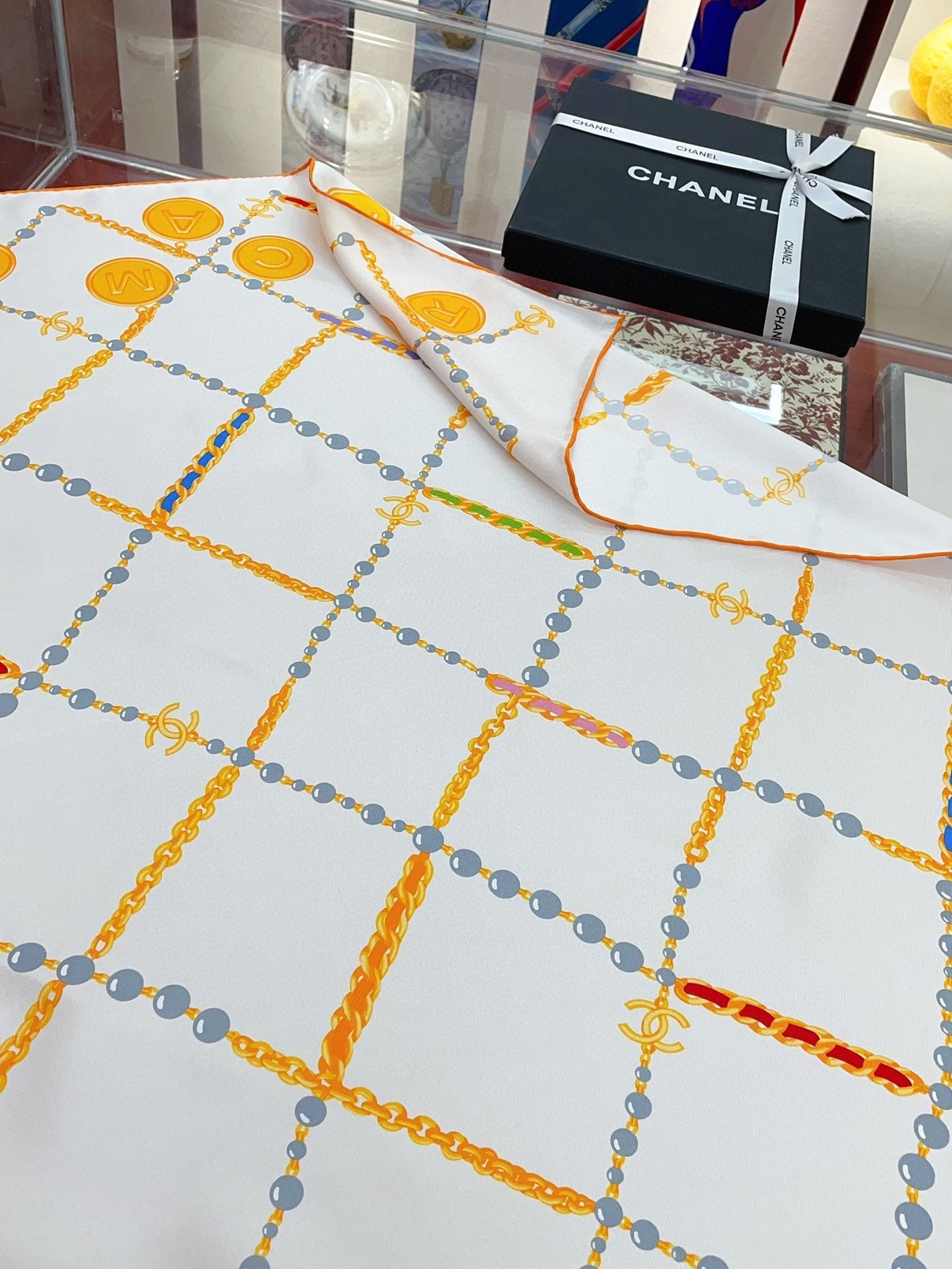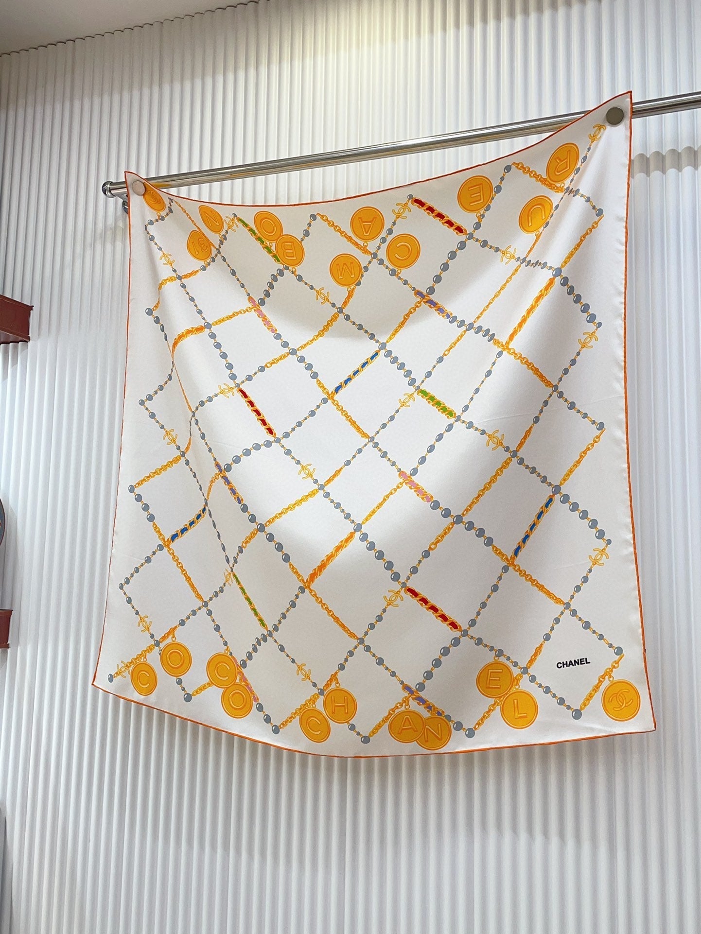 CC Square Scarf 90 CM In White Mix Yellow Silk Twill 176345