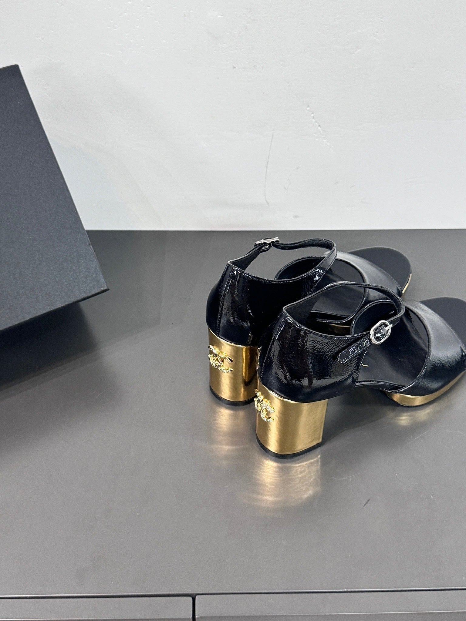 BLOCK HEEL SANDALS BLACK SHEEPSKIN