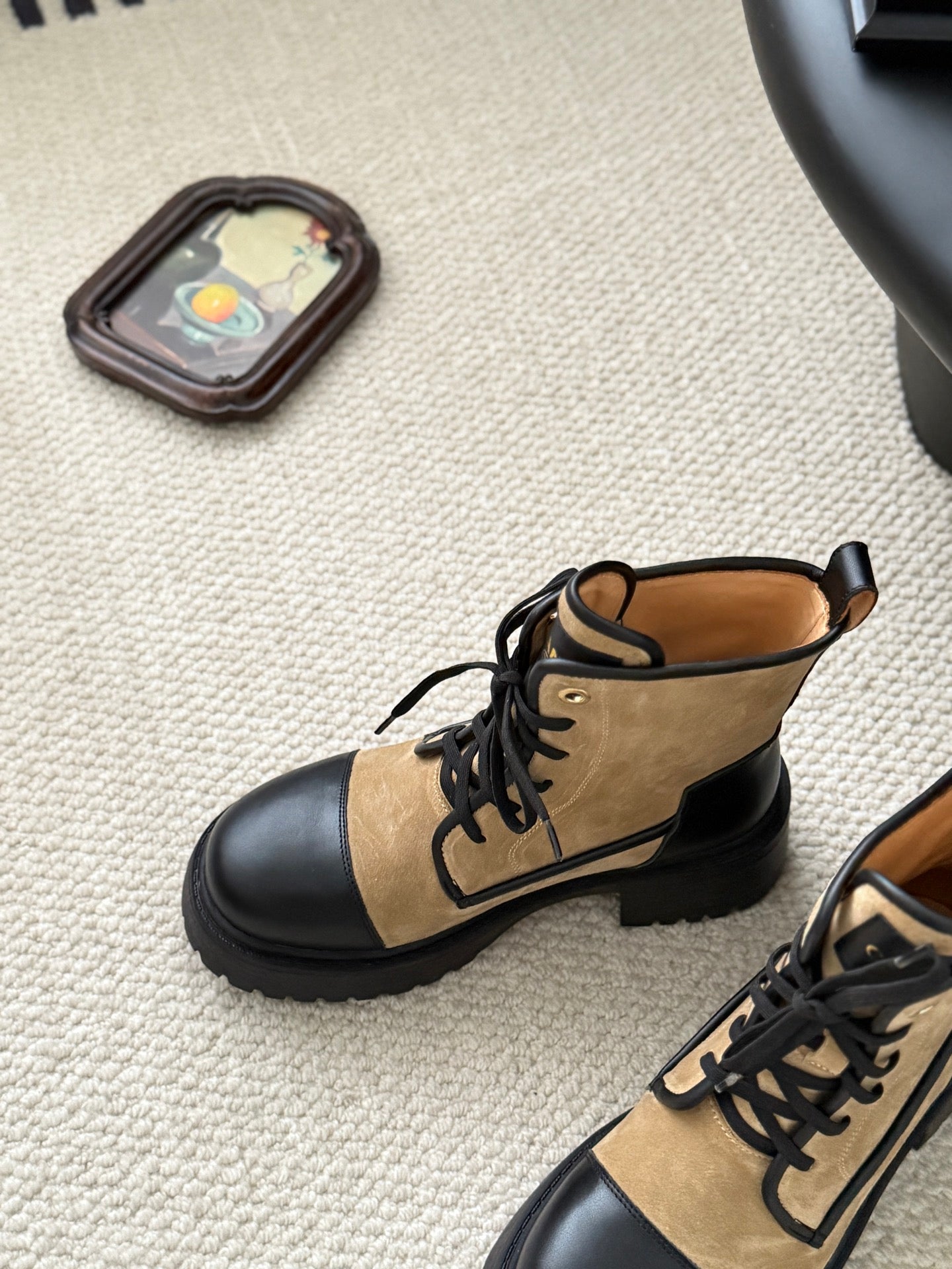 CC 25 ankle boots beige black suede sheepskin 458765