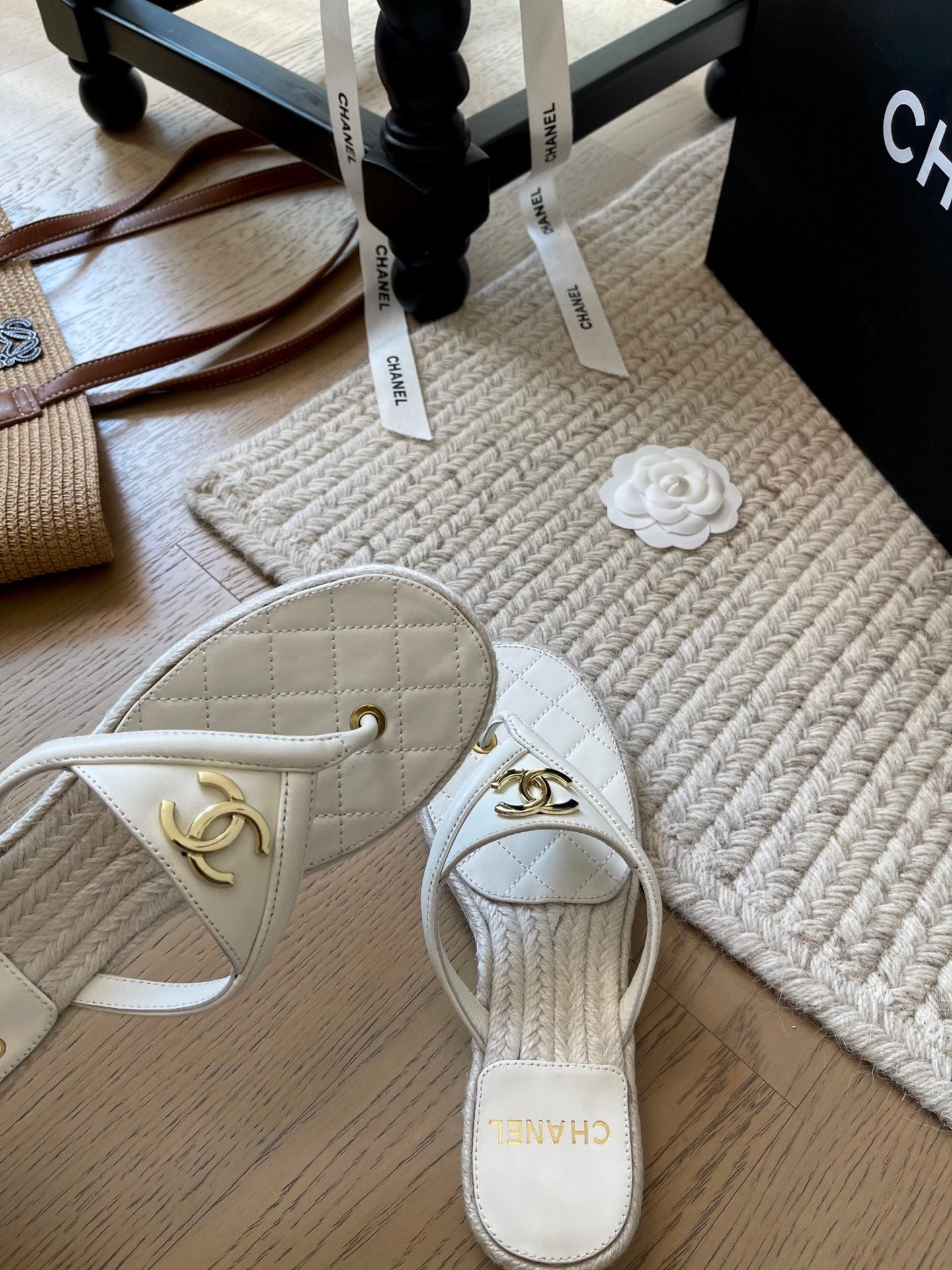 CC 25 Flip Flop Sandals White Calfskin Espadrilles