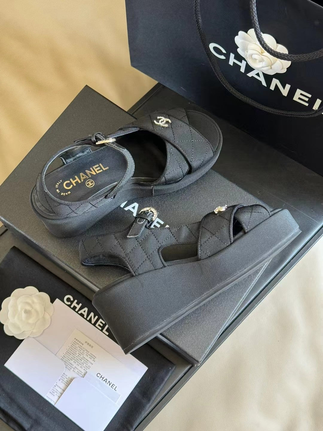CC CLASSIC WEDGE SANDALS IN BLACK FABRIC