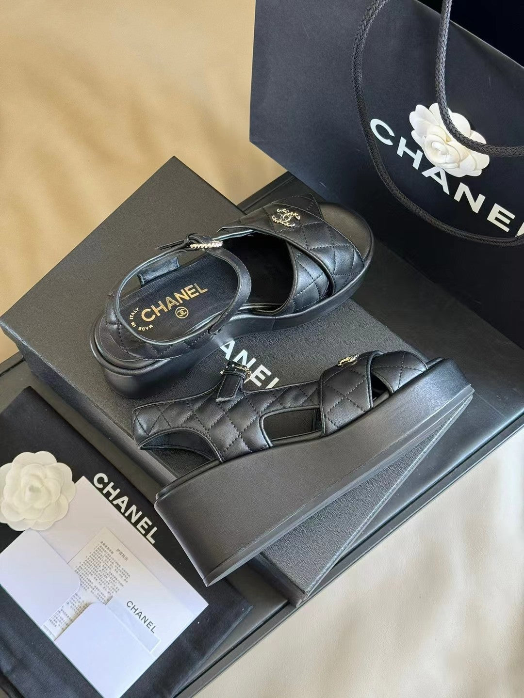 CC CLASSIC WEDGE SANDALS IN BLACK LAMBSKIN