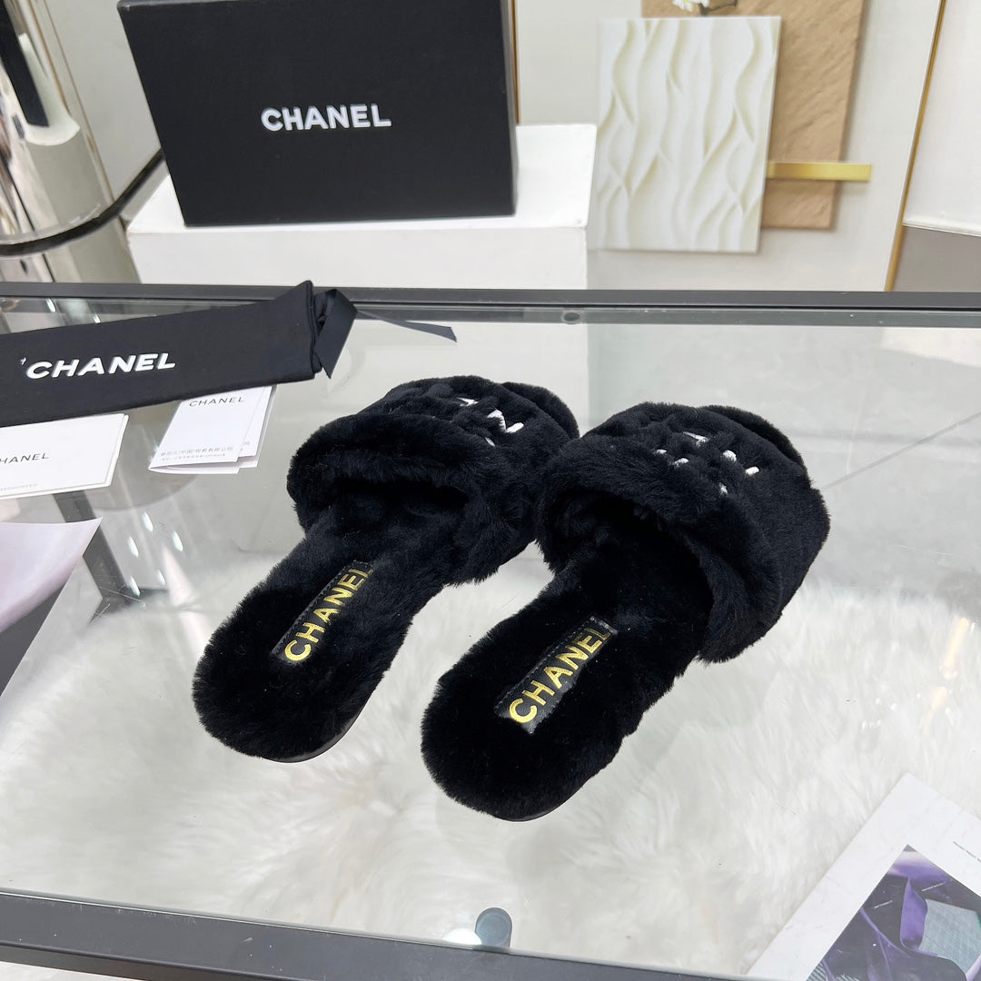 CC Slippers Black With White Lettering Fleece