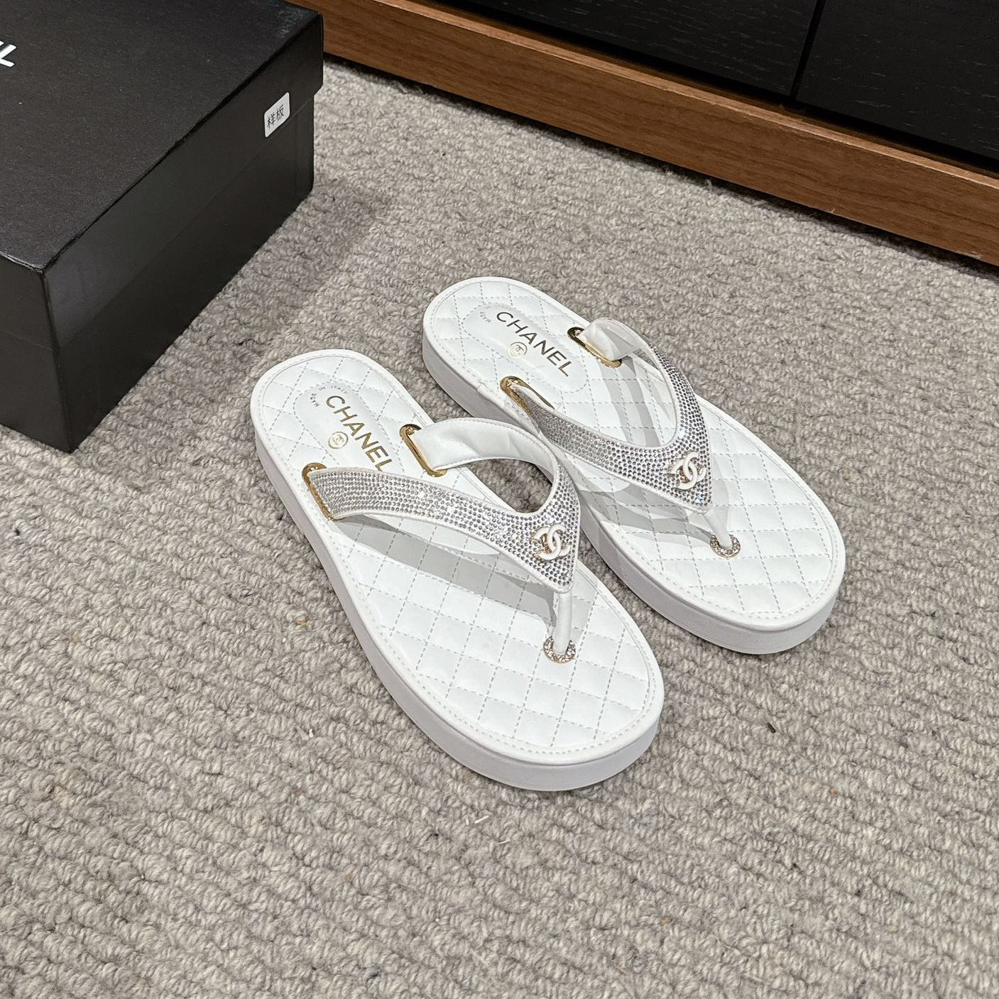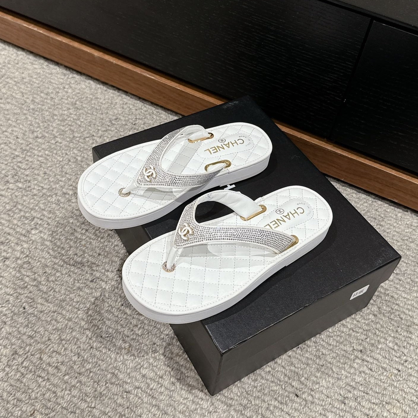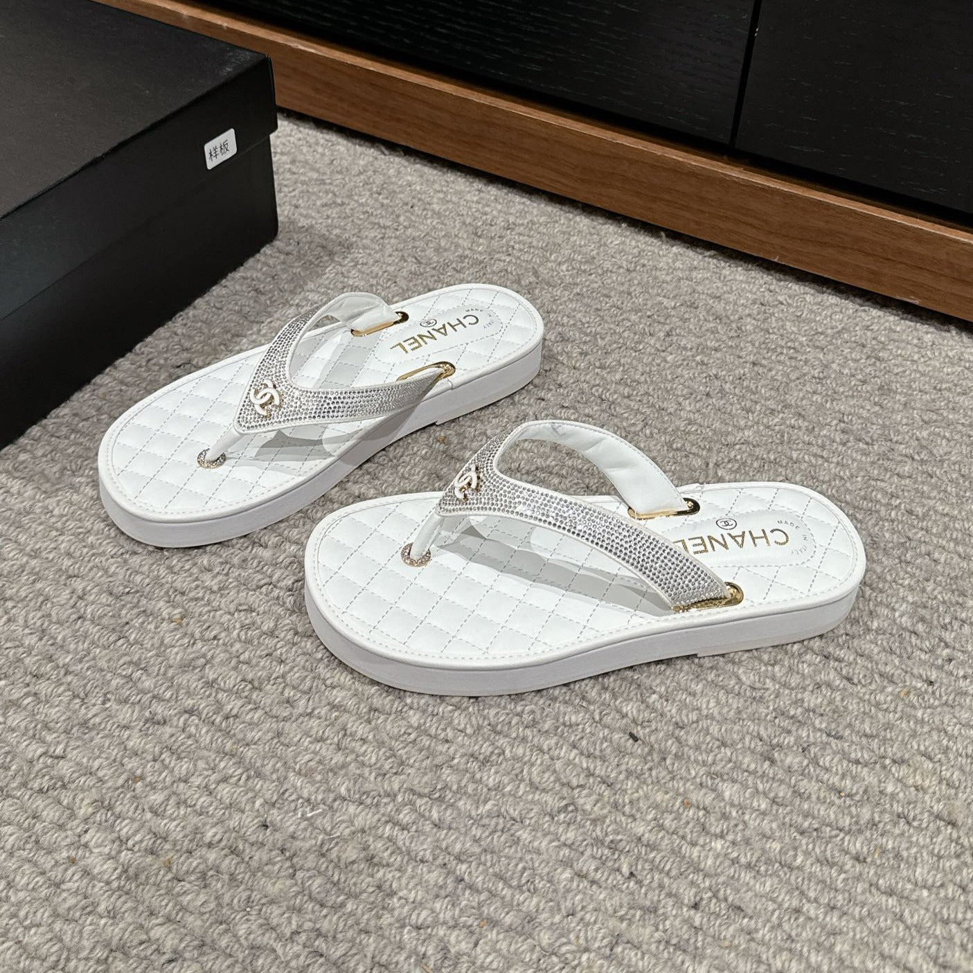 cc thong sandal black quilted lambskin