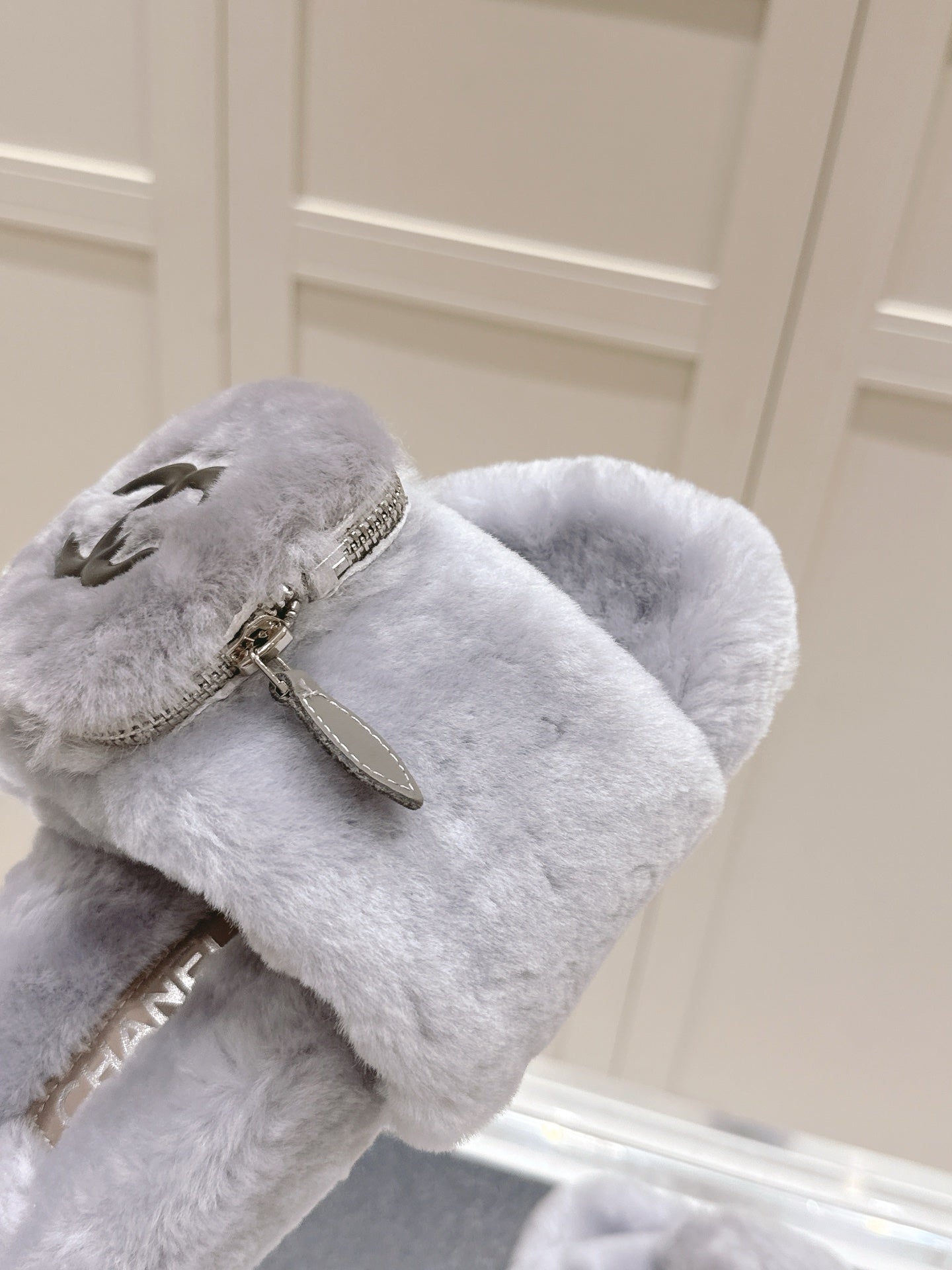 Chanel 25A Early Autumn Slippers Gray Wool 393081