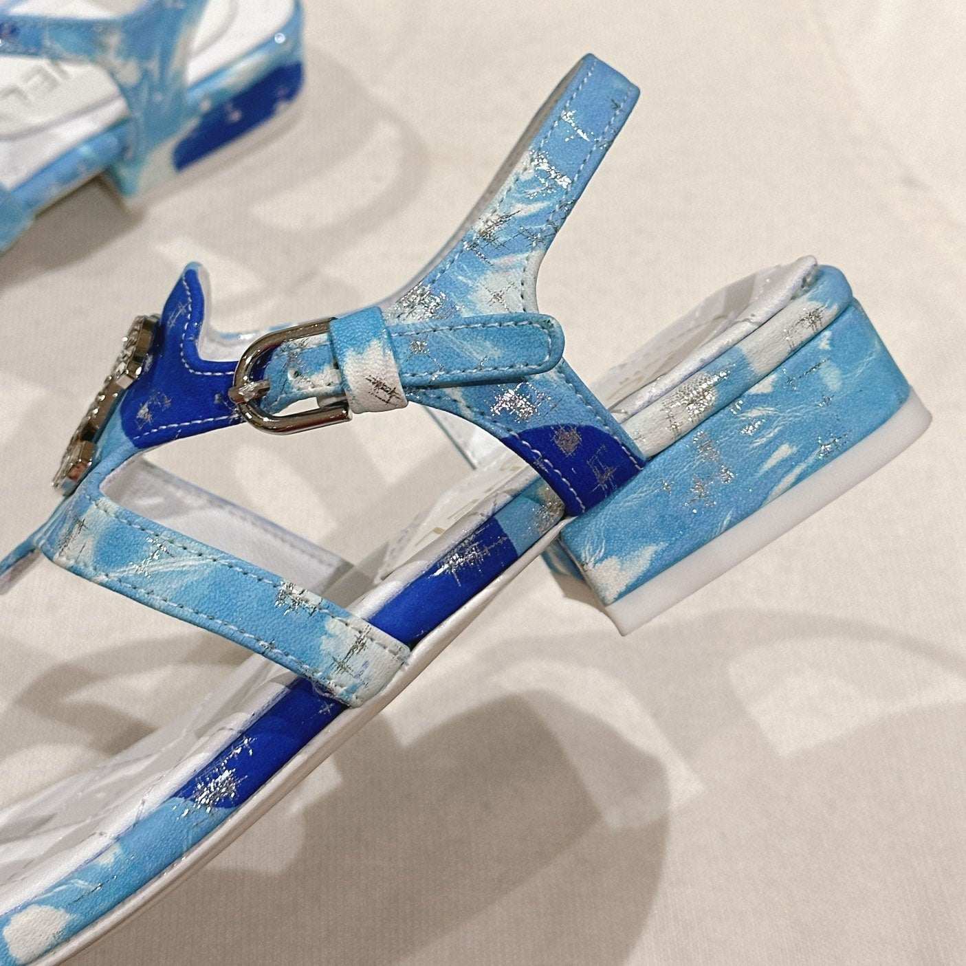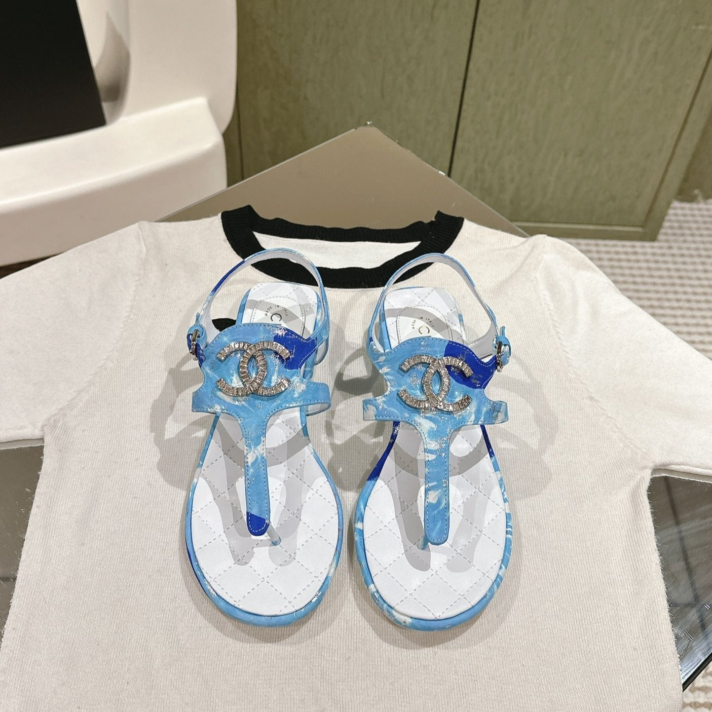 thong sandal cloud blue white quilted clafskin