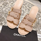 cc mule sandal tripe strap 40 beige canvas calfskin
