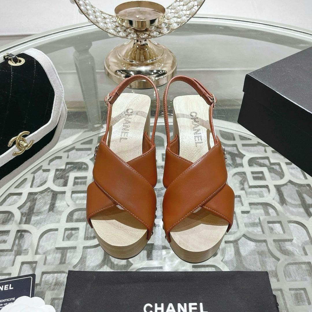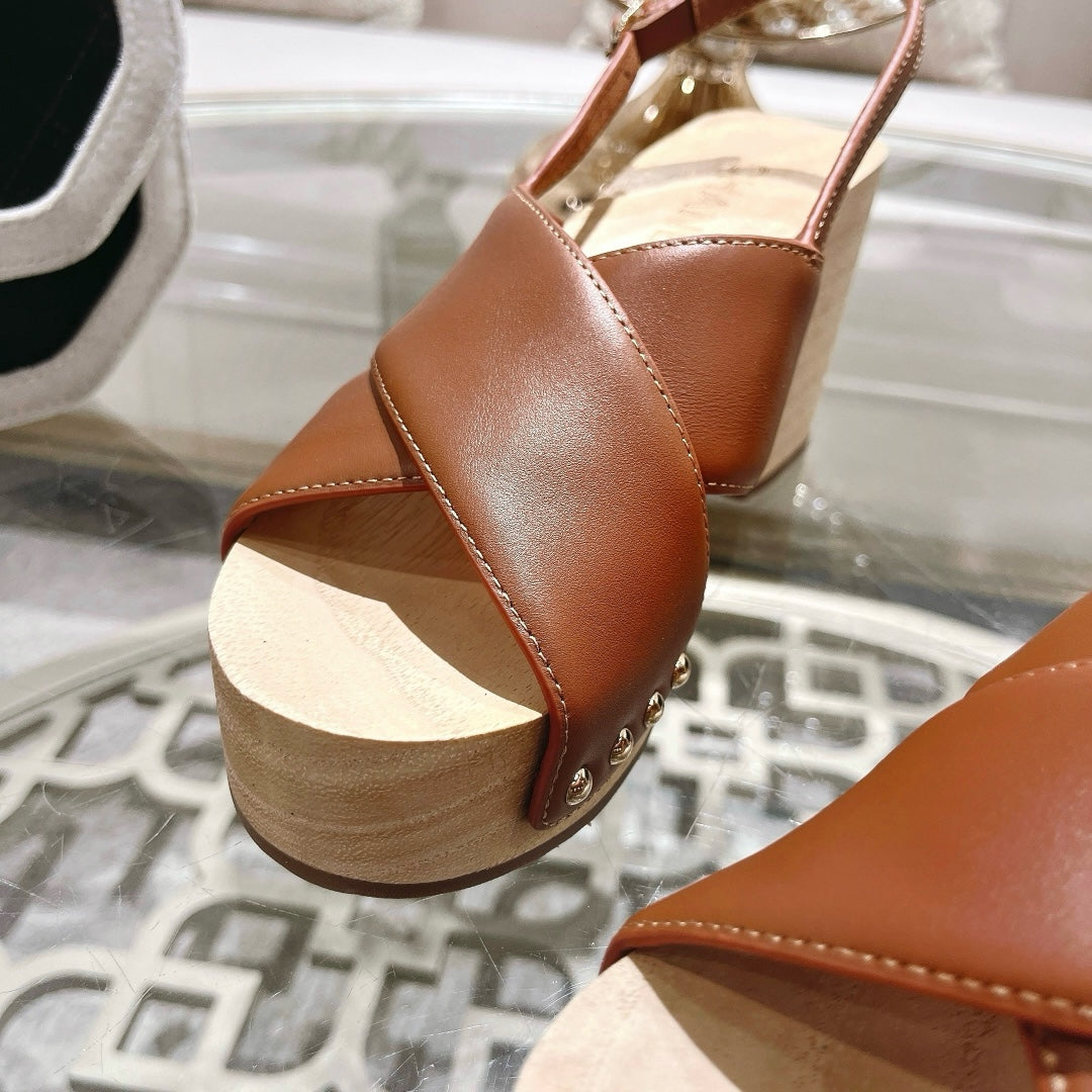 platform sandal 90 cross brown calfskin