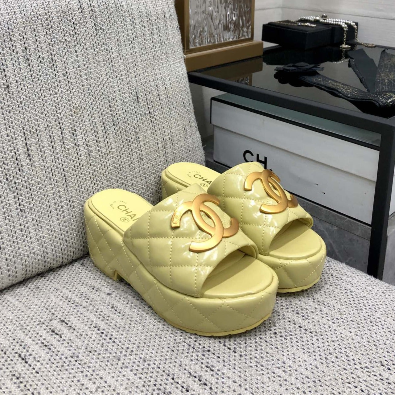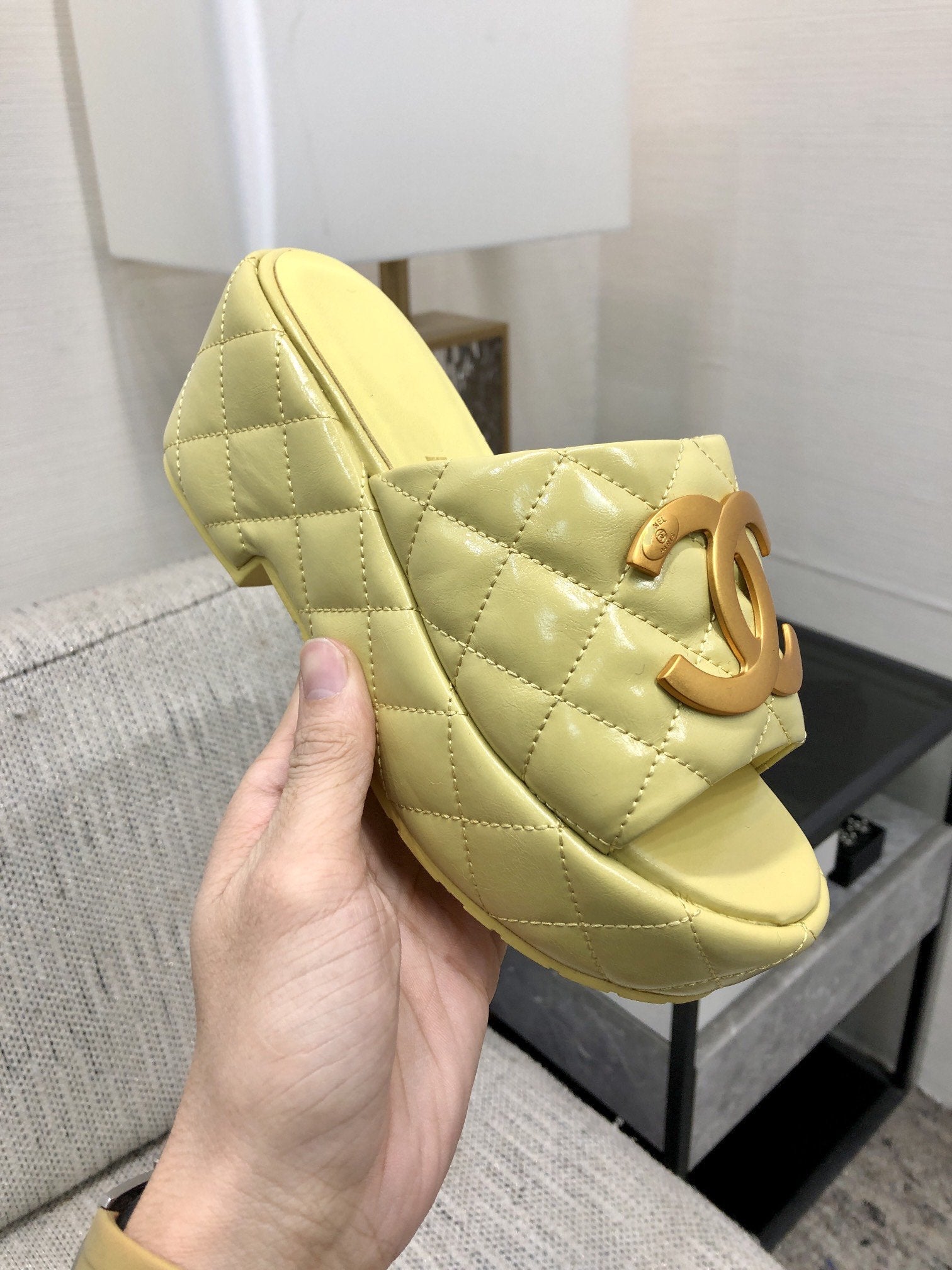 mule sandal 95 lime quilted waxed leather